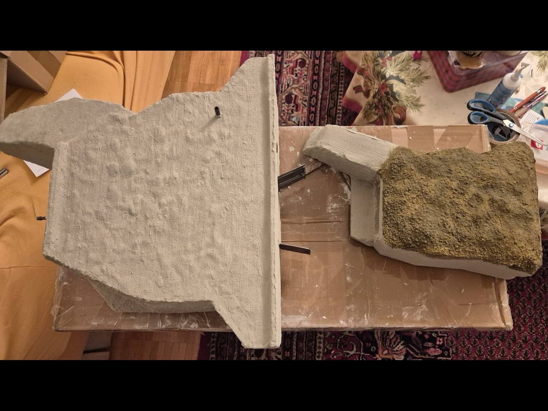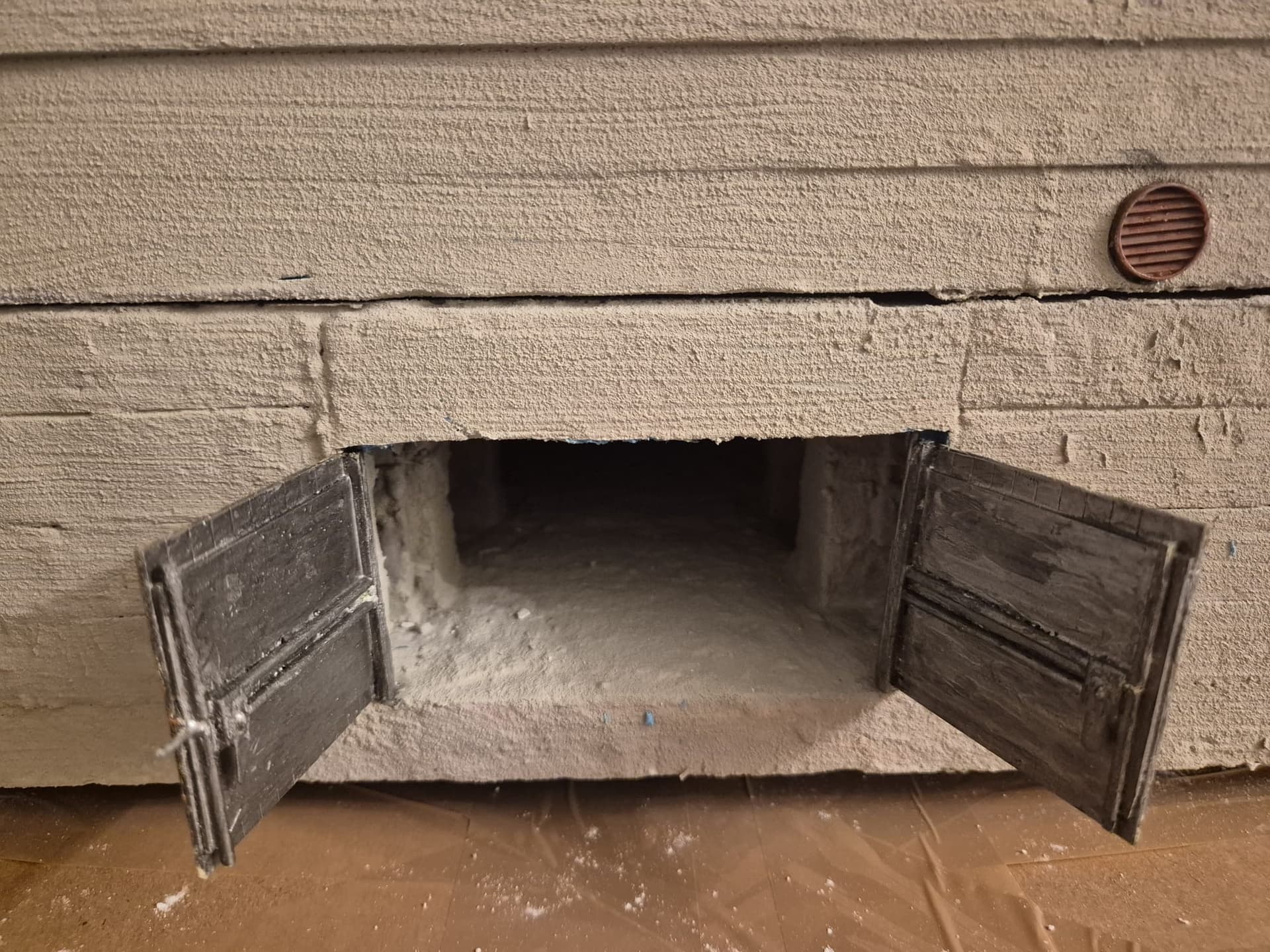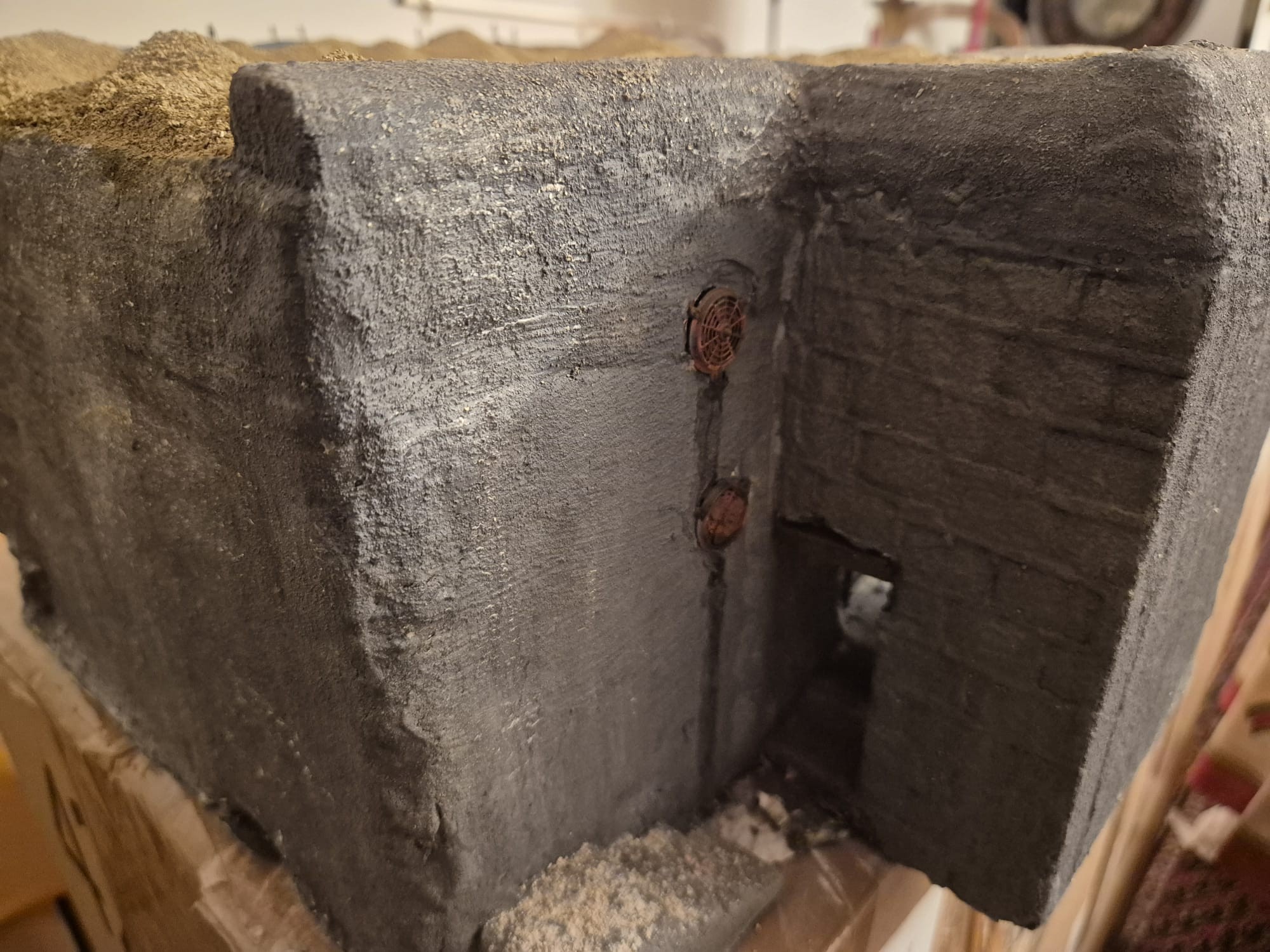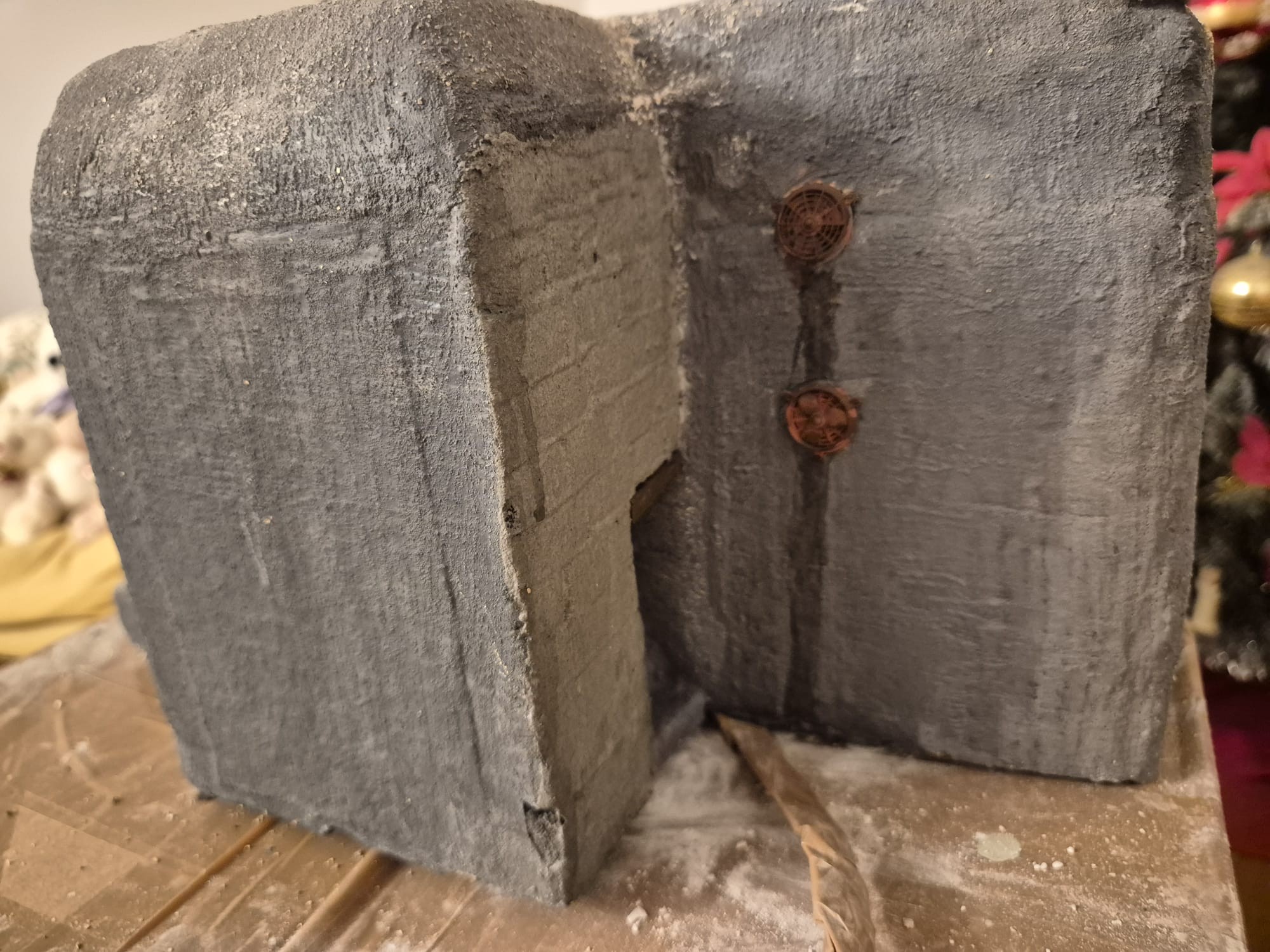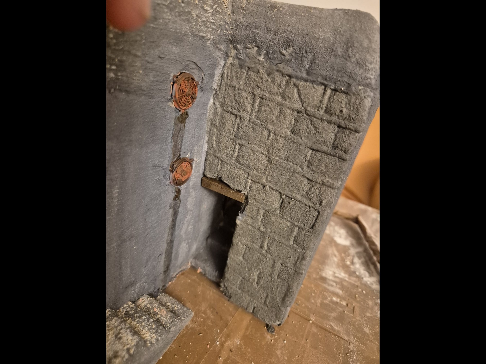 If time allows I will also start to build the iron/led doors for the entrance to the bunker, but first I will have to correct that warped right wall with putty.