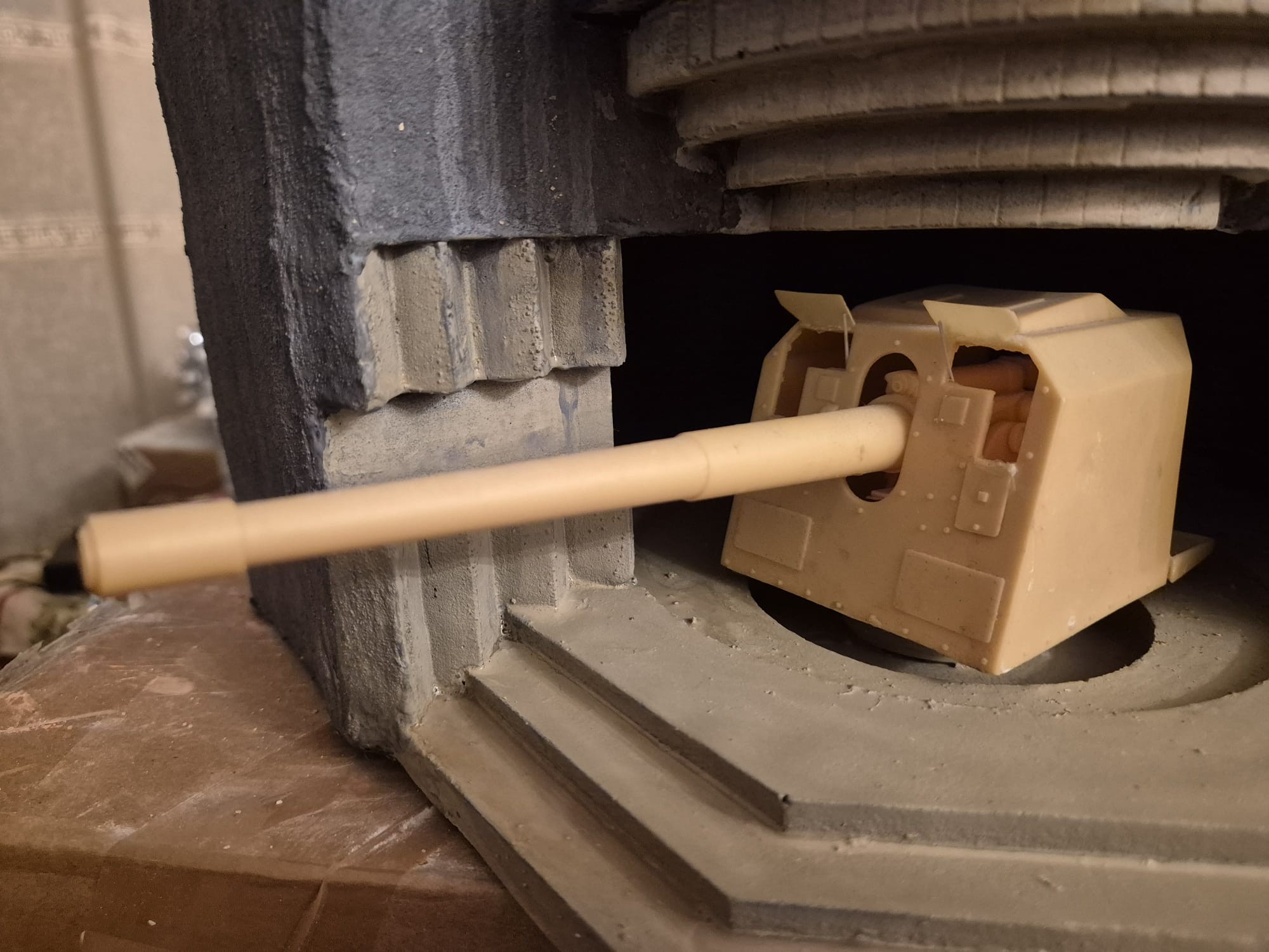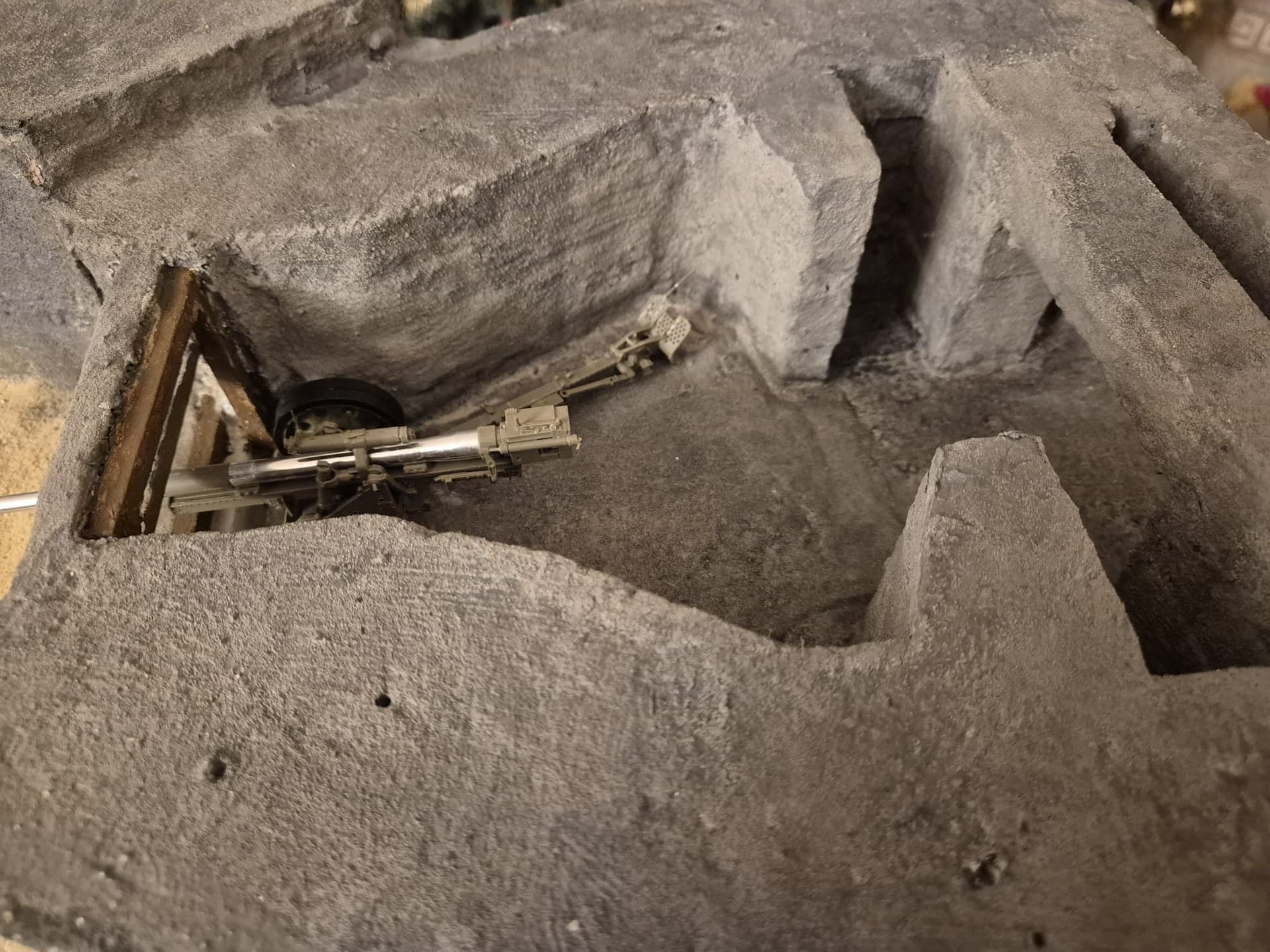 There are still some little things to fix inside of the bunker and when those are dealt with the bunker will be finished. It is then that I will finish to build the PAK43/41 88mm anti-tank gun and paint it in German Yellow (or if you will, Sand color), except for the steel parts to the rear of it. Since the rubber tires can be detachable It won’t pose any problem to paint the supports as well.