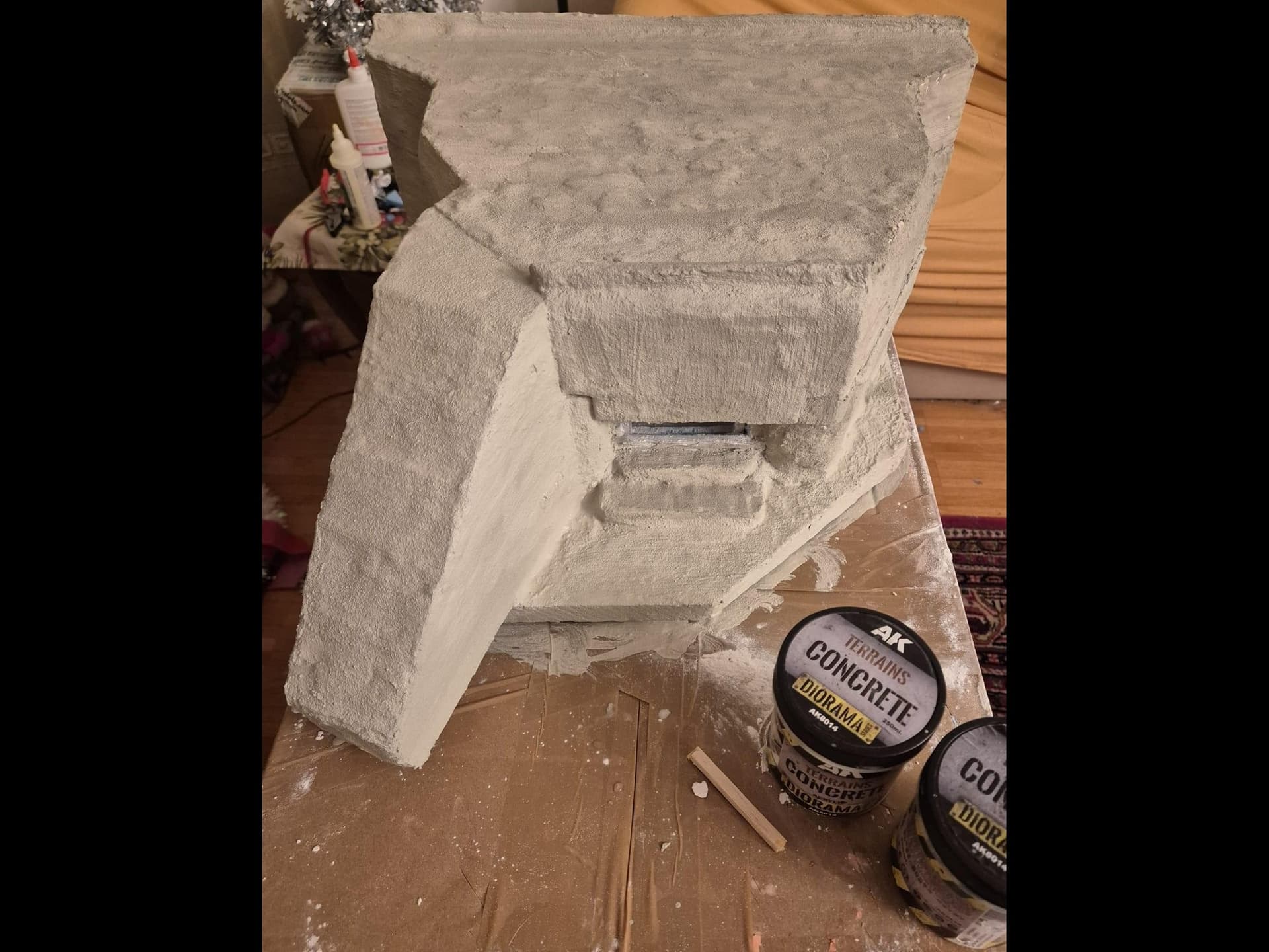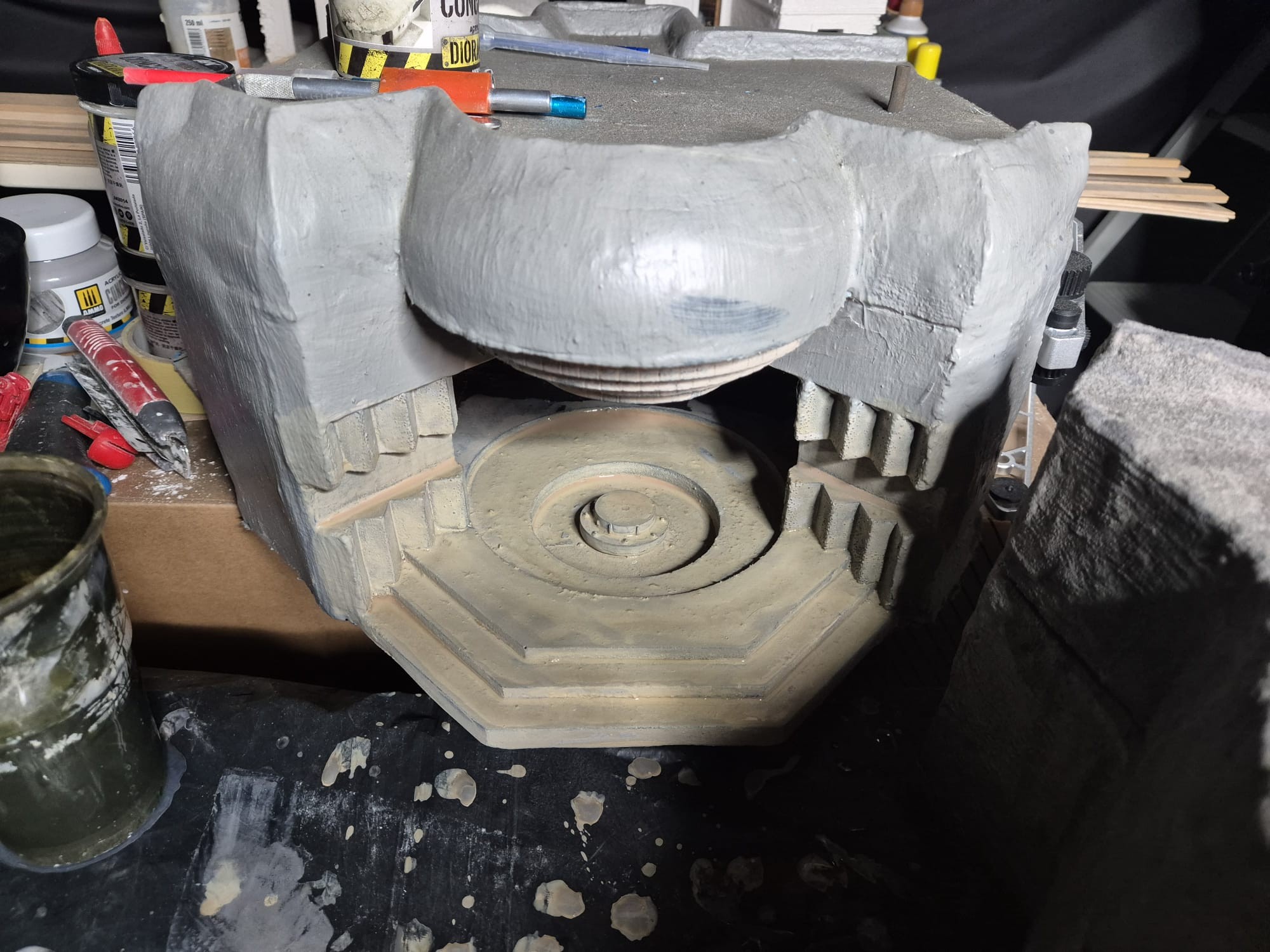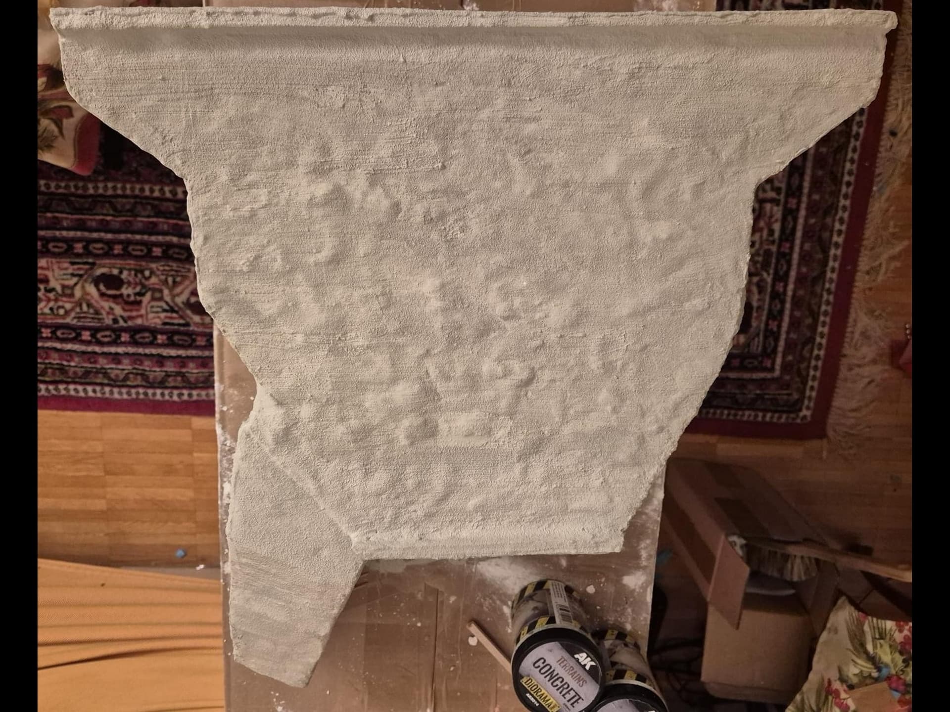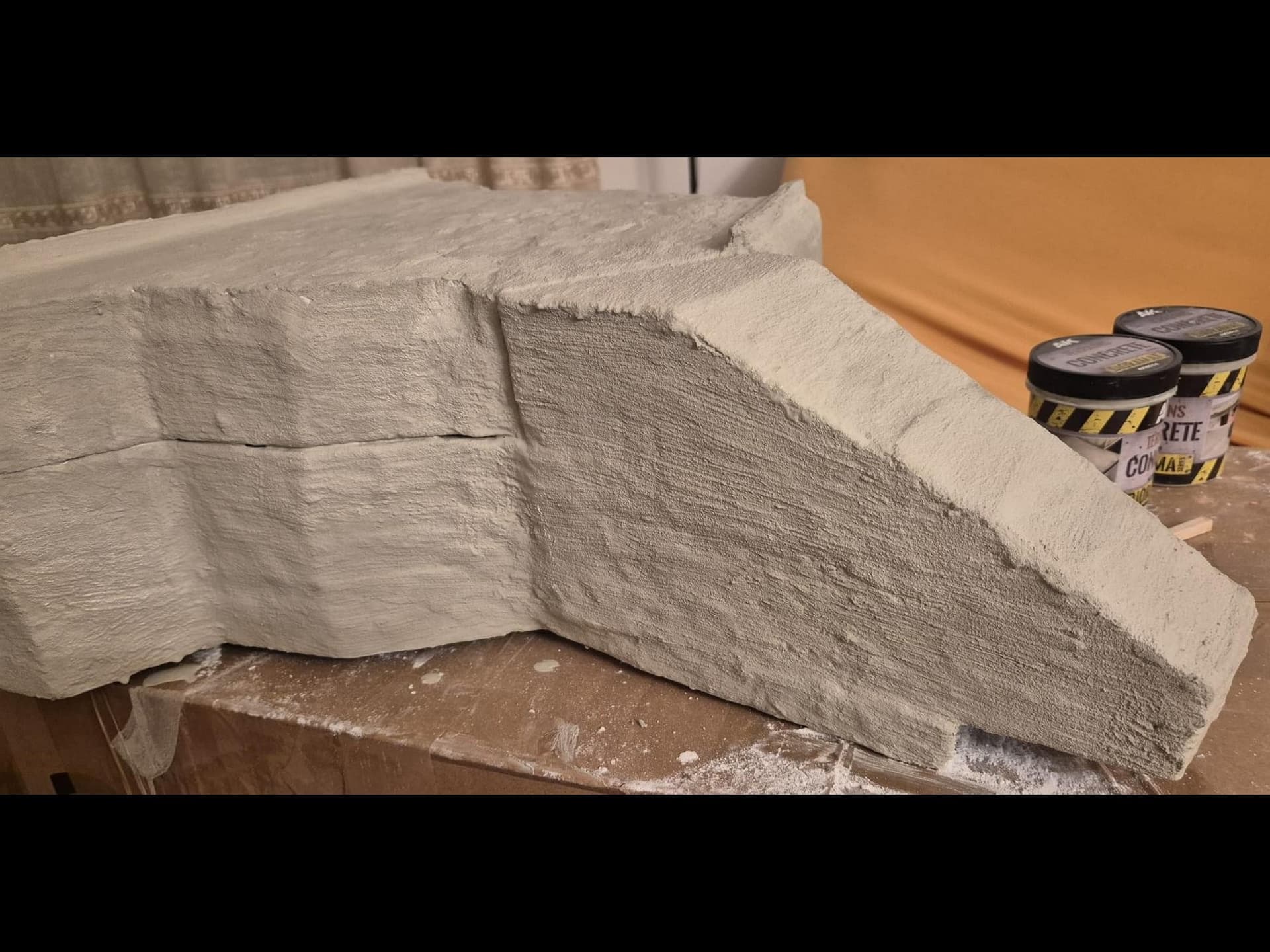 Well, cinematic jokes aside, the first application of the AK Interactive Concrete acrylic compound has been completed, at least on the outer surfaces.