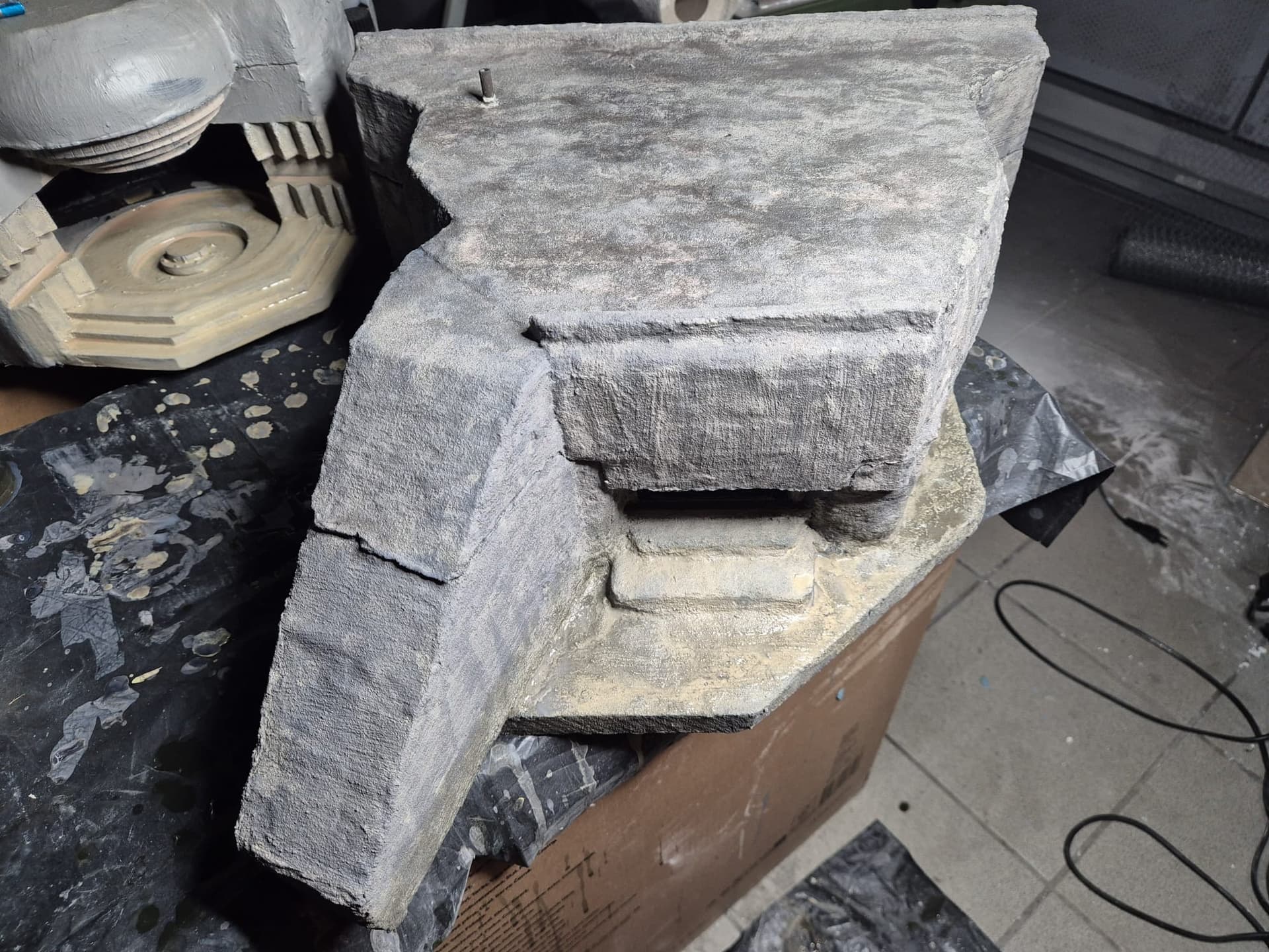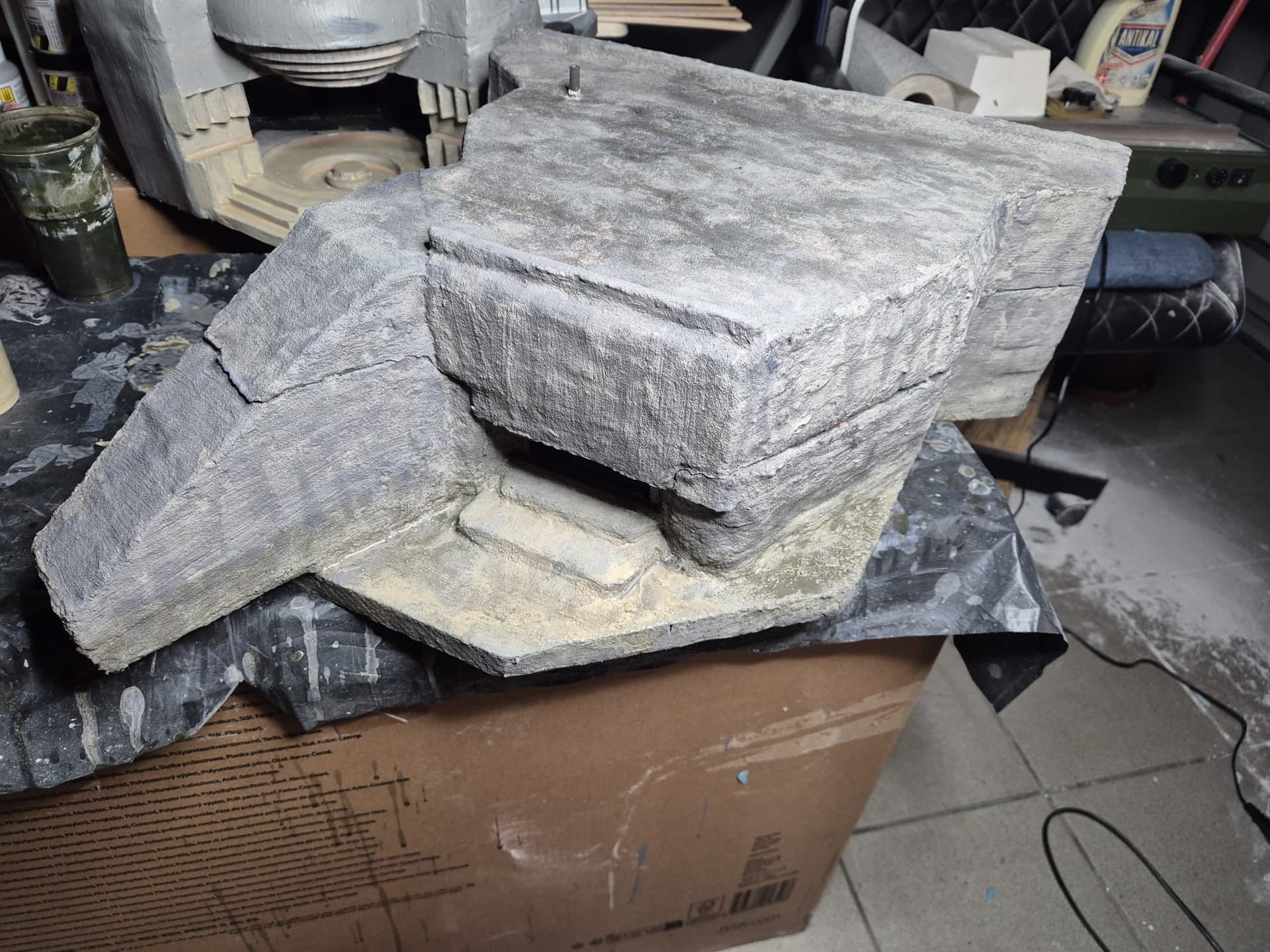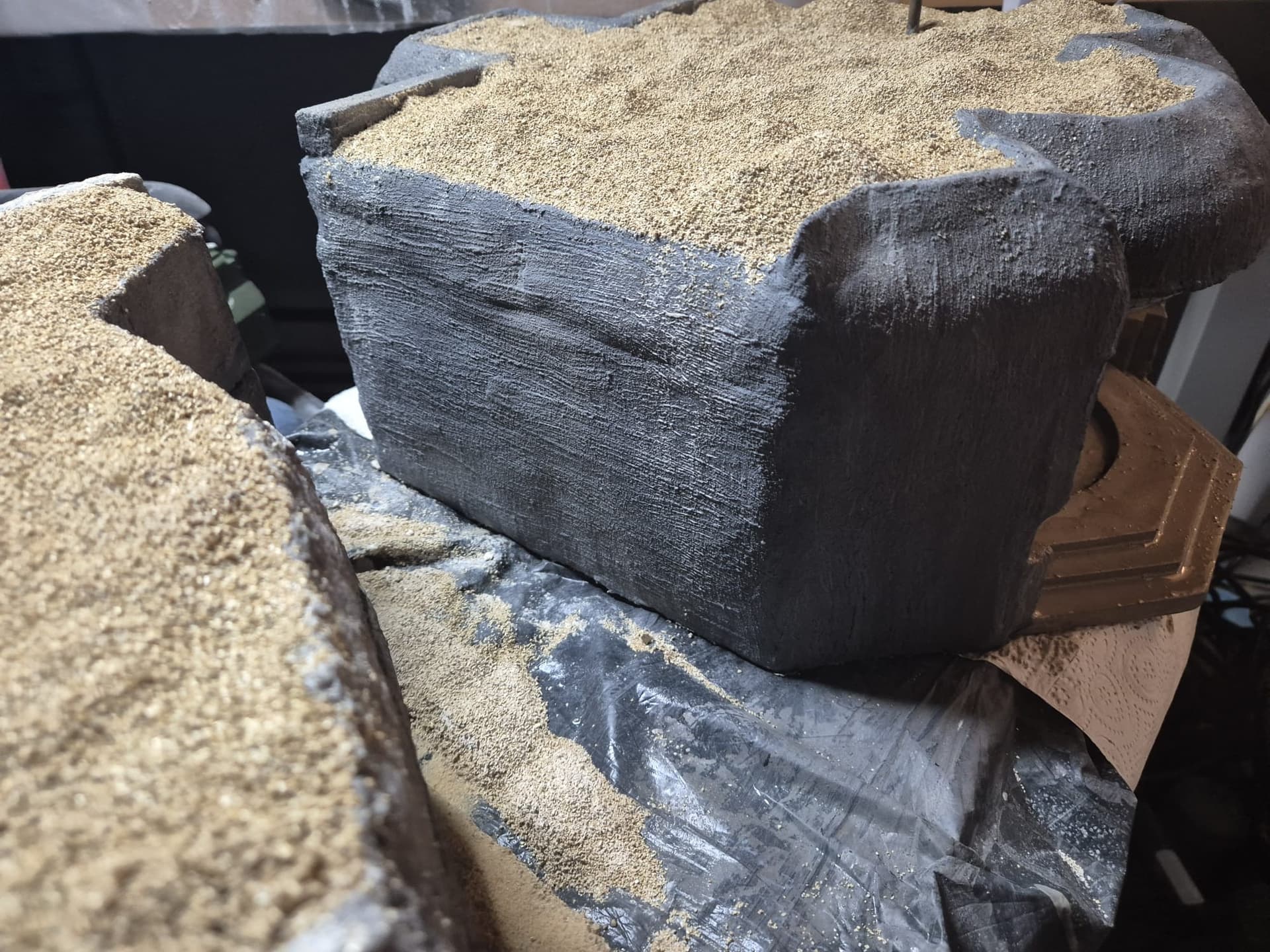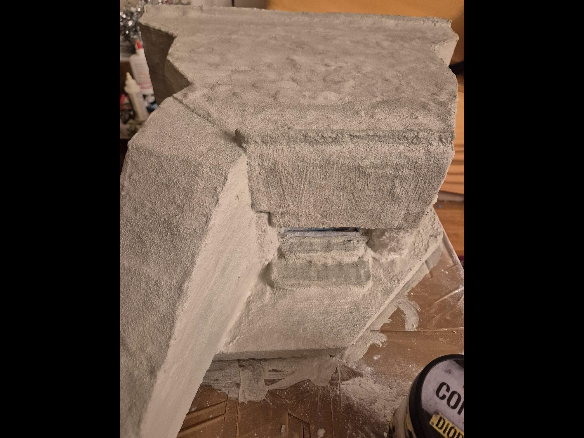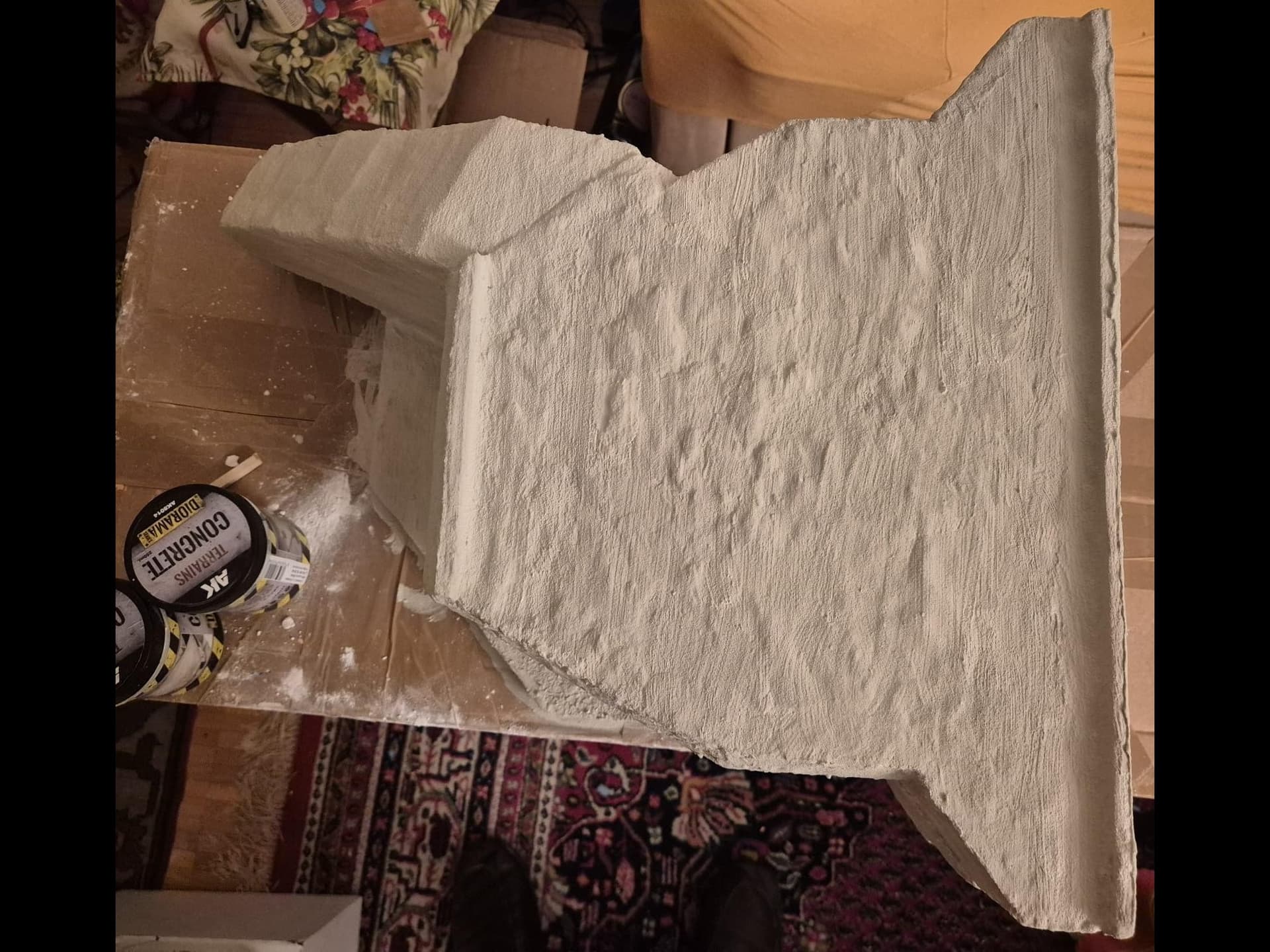 Well, cinematic jokes aside, the first application of the AK Interactive Concrete acrylic compound has been completed, at least on the outer surfaces.