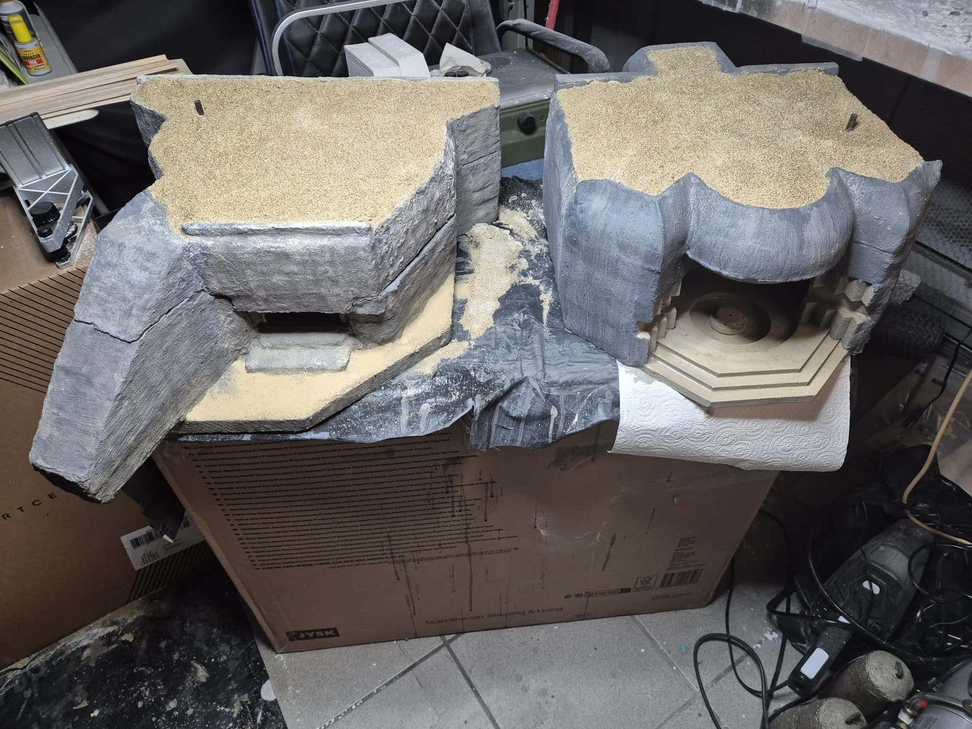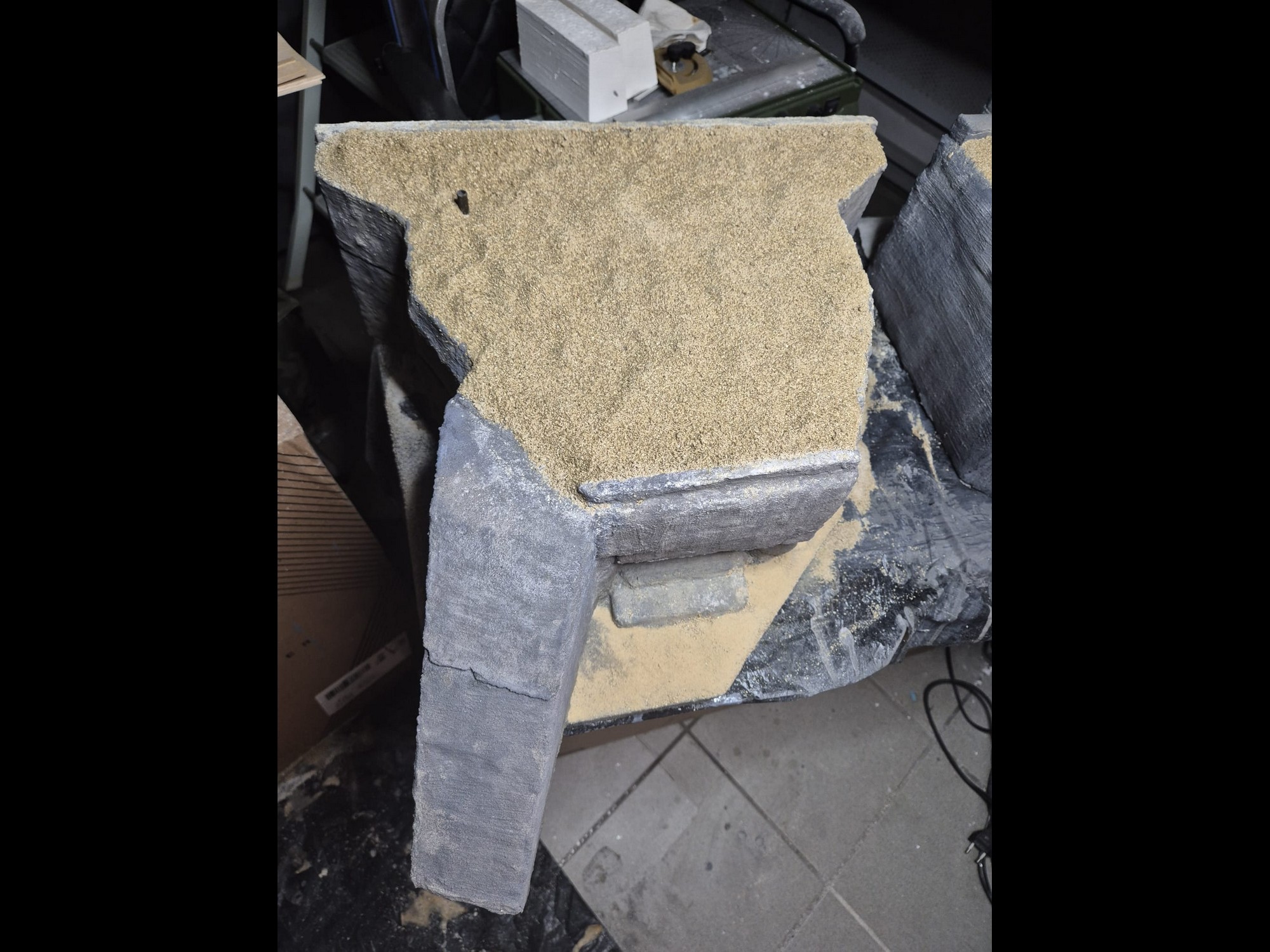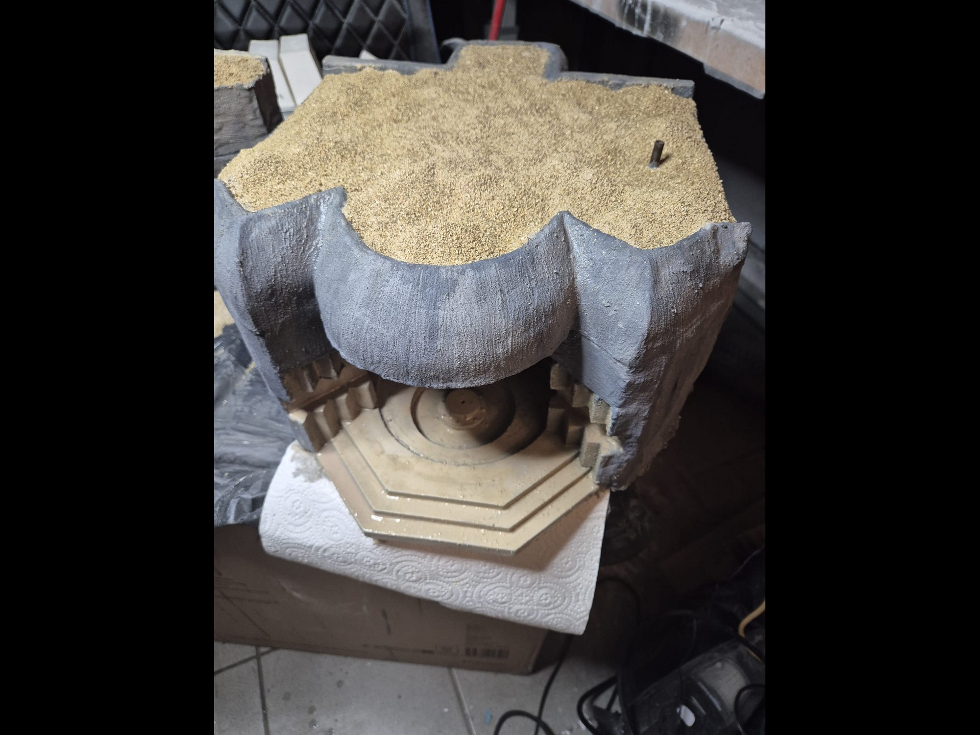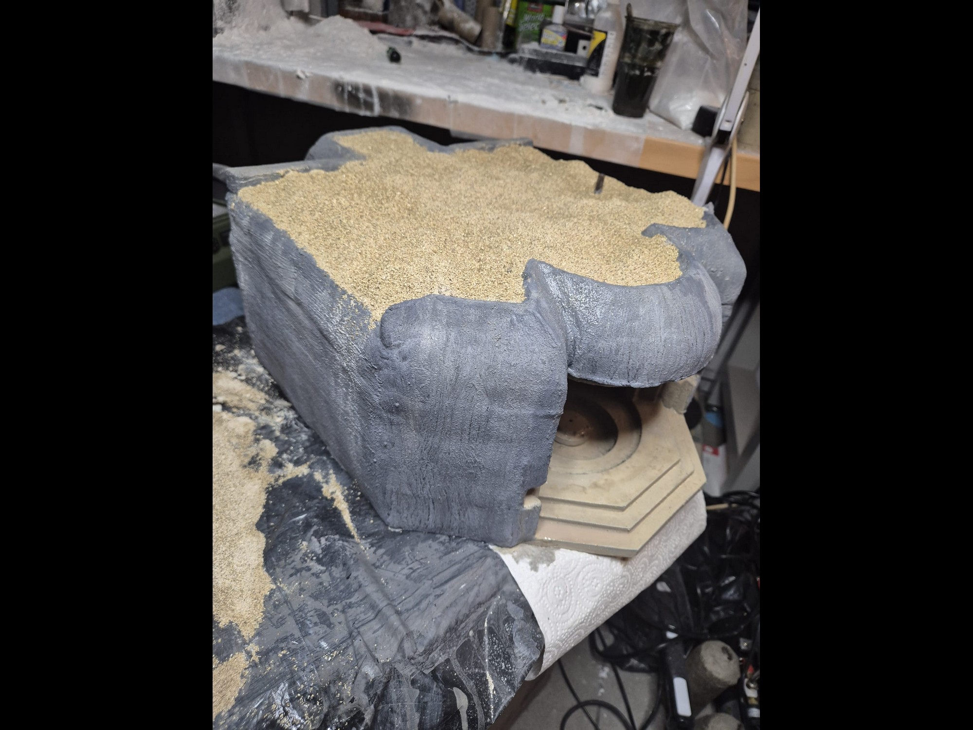 Well, cinematic jokes aside, the first application of the AK Interactive Concrete acrylic compound has been completed, at least on the outer surfaces.