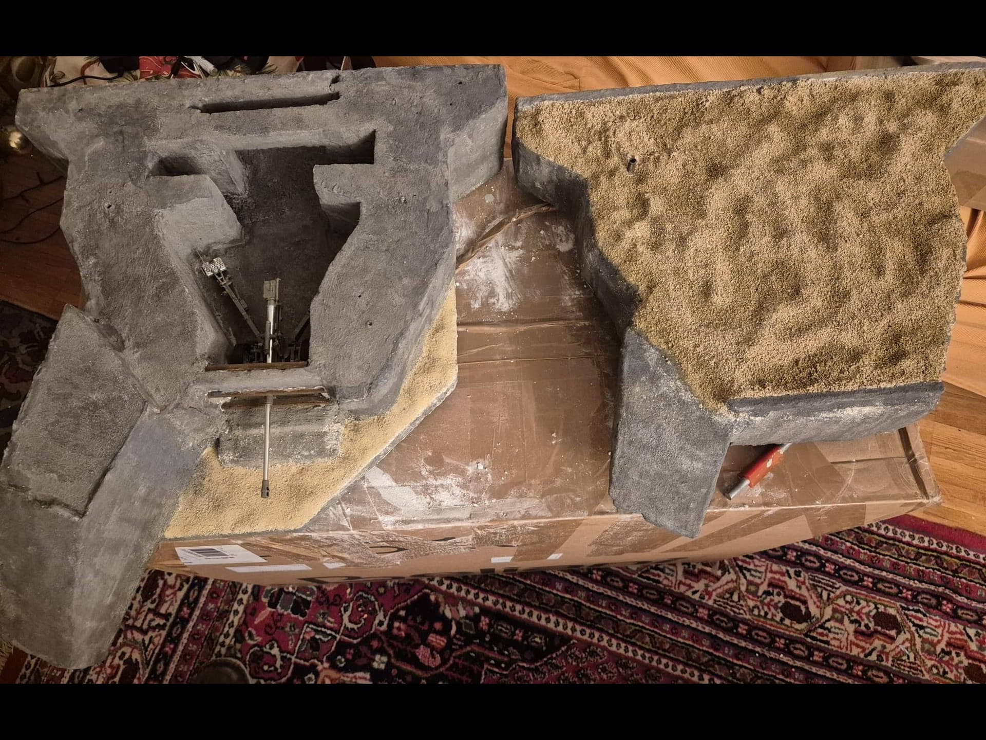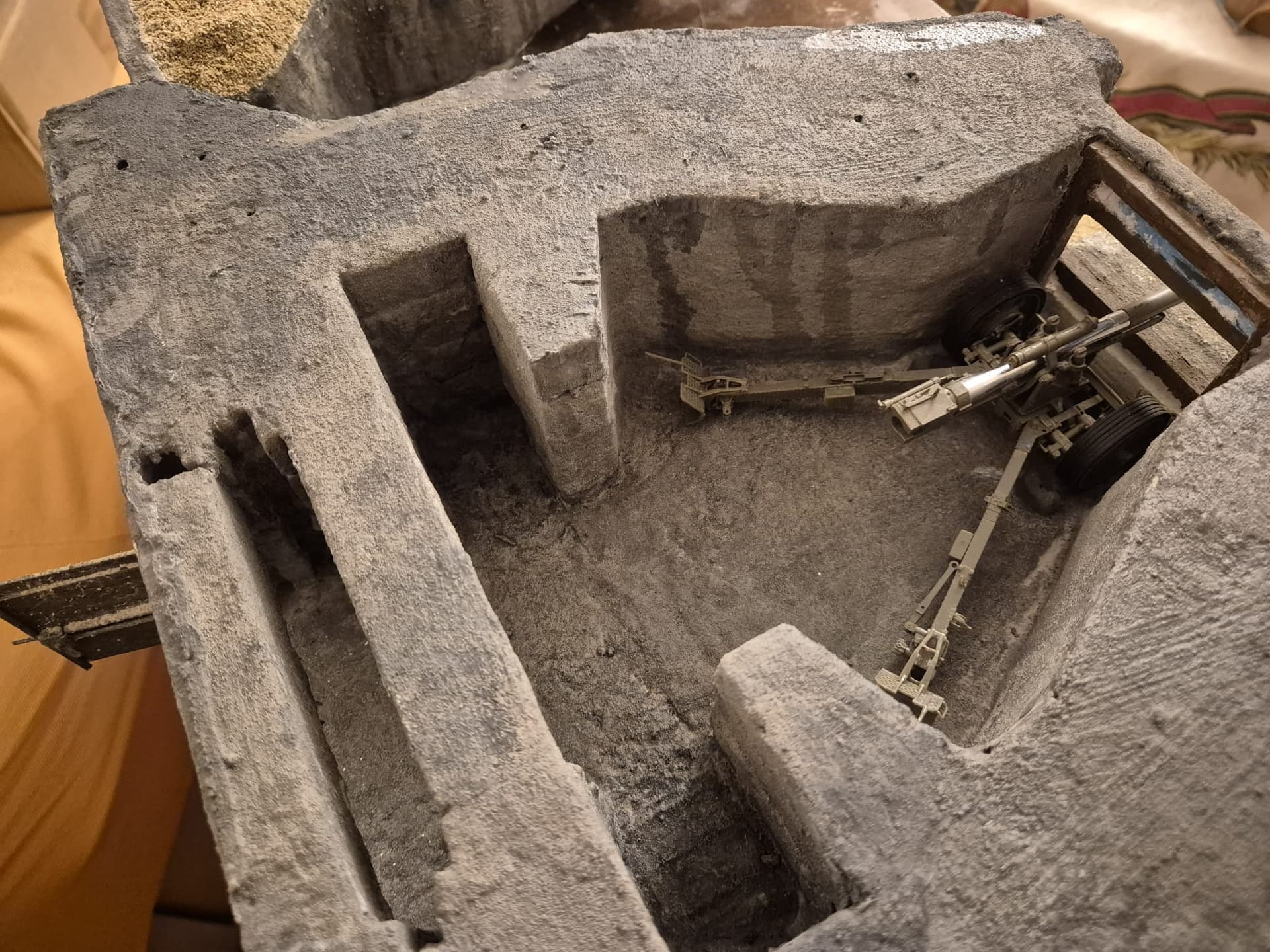 Please note that I have already proceeded with the interior cover of acrylic concrete and I will show you the open bunker so modified in a later post, since I am still working on it for some minor details to be applied.