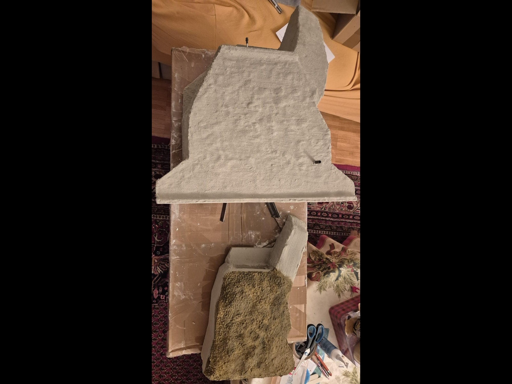 Hi! I did the same on my previous bunkers, cutting an ice cream popsicle at its ends with a Dremel forming it as a plank. I also made stone “stamps” with a rubber eraser cutting it in various shapes for my Naval Bunker at Longues-sur-Mer and pressing it into the foam.