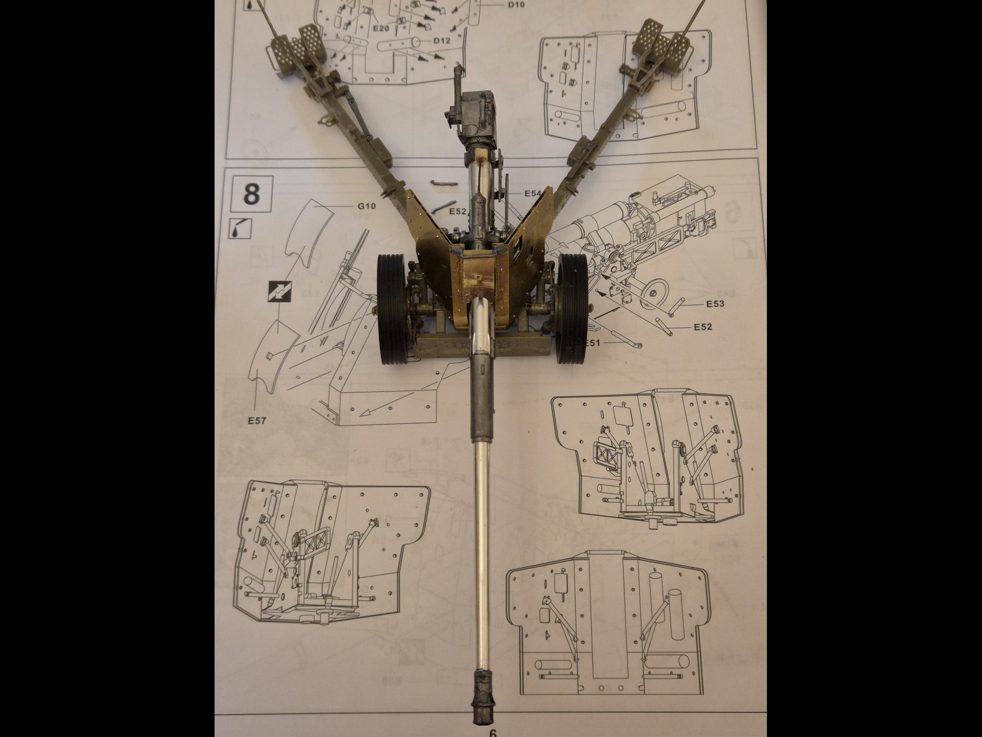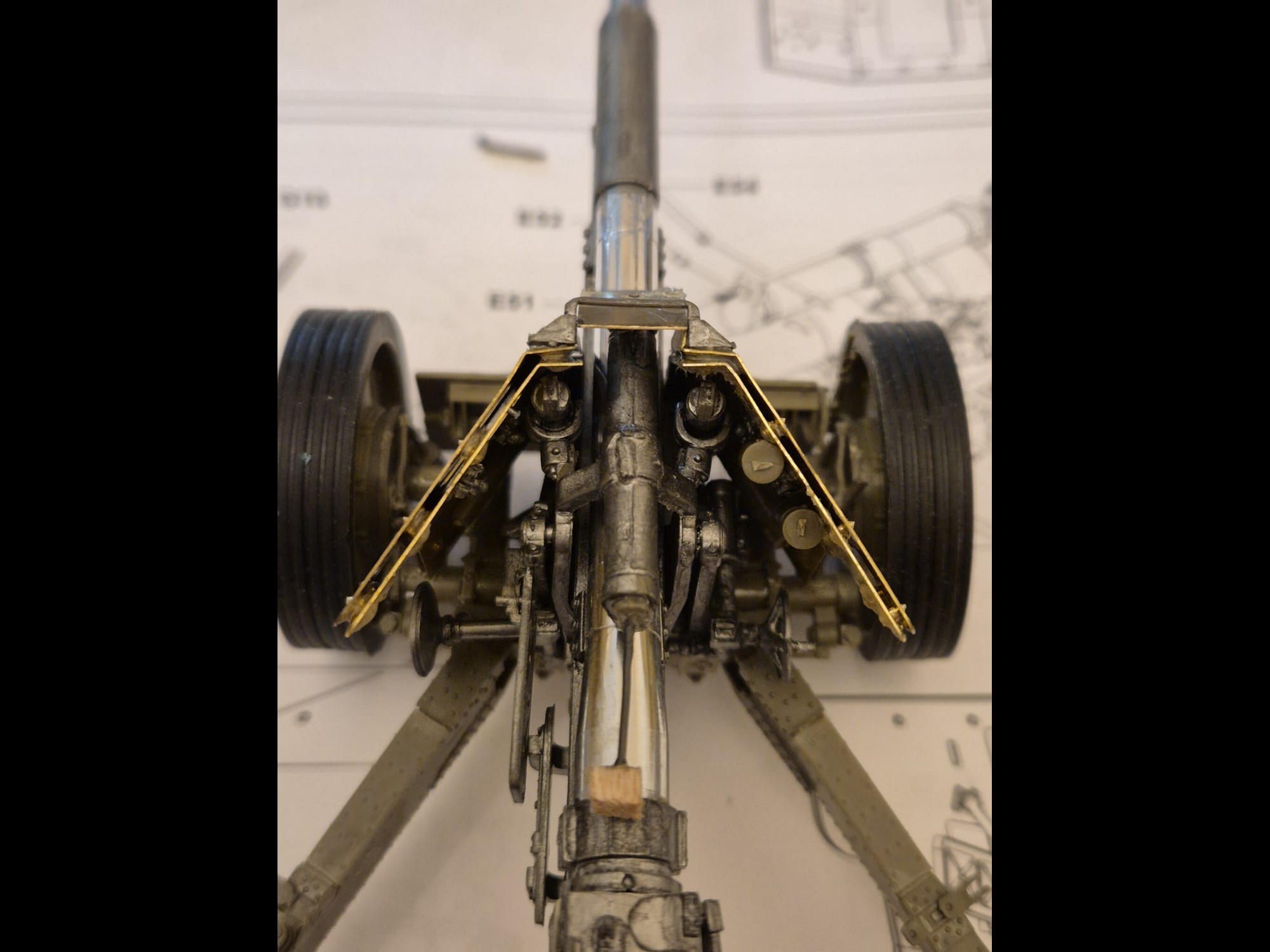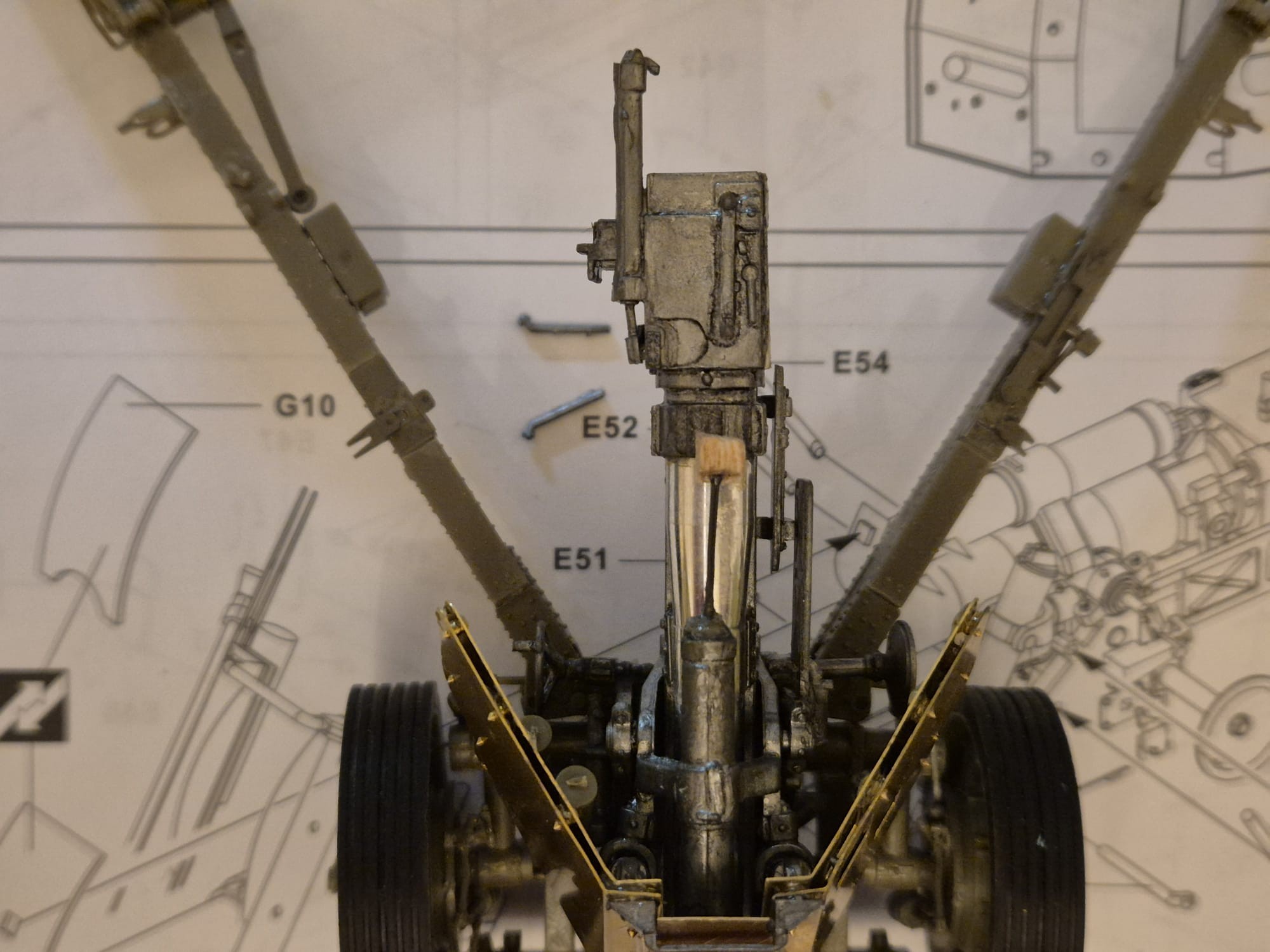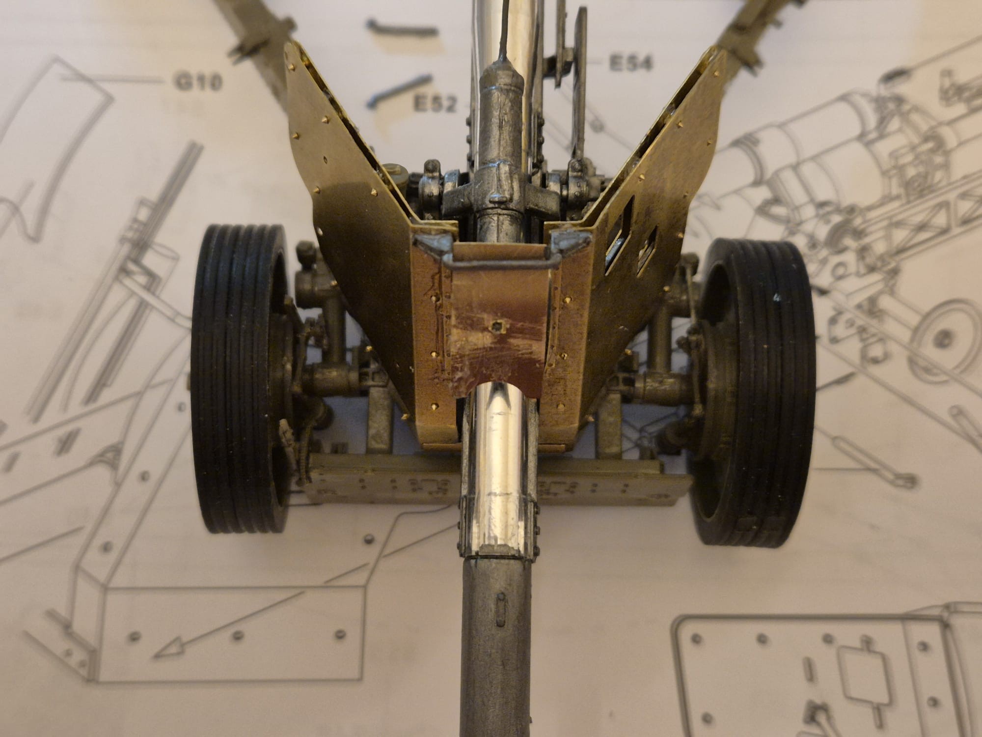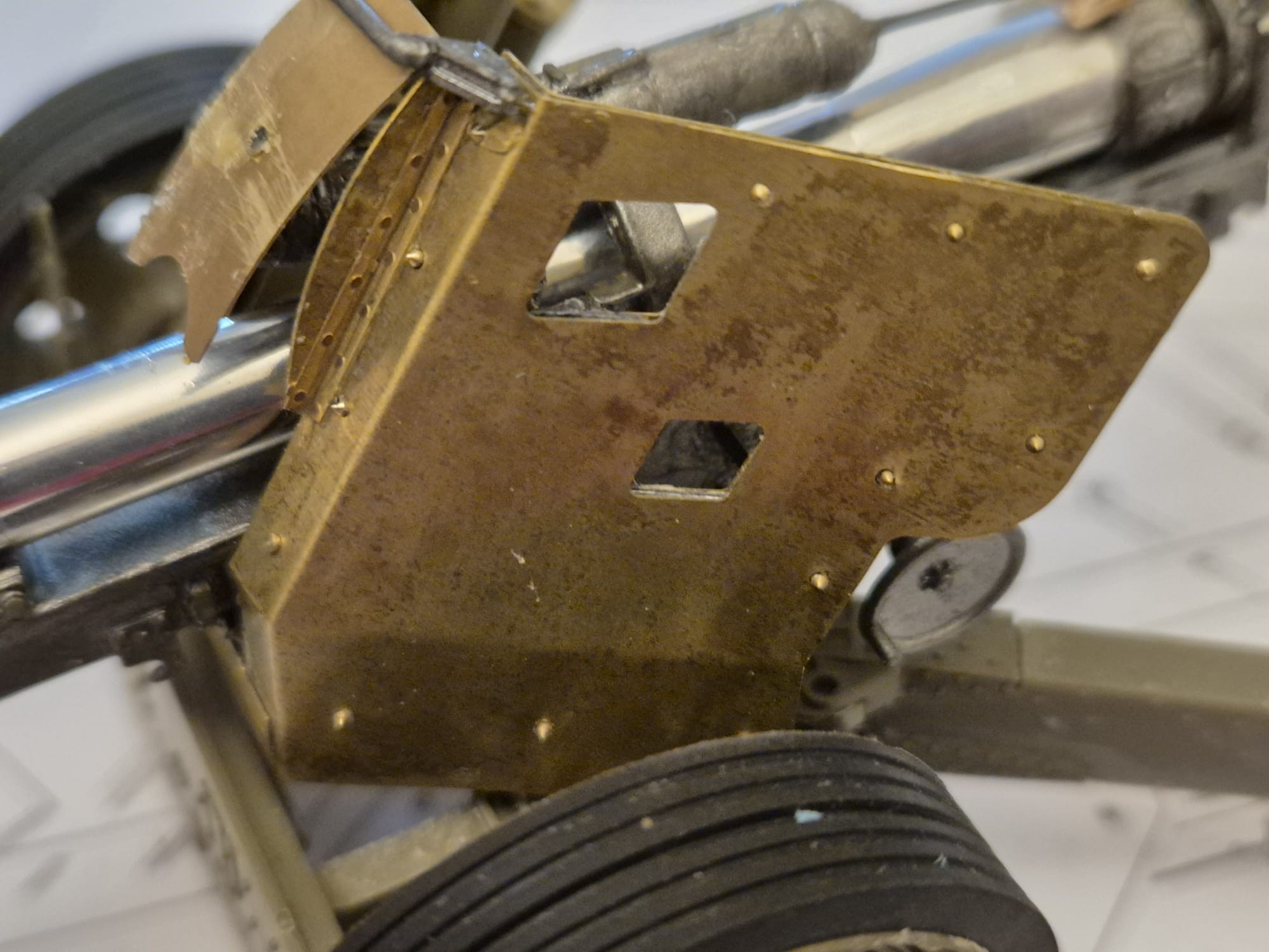 Another reason is, that following this assembly, I will further have to fix all the complicated holding arms array to the rear of the shield to hold it firmly attached to the main gun structure.