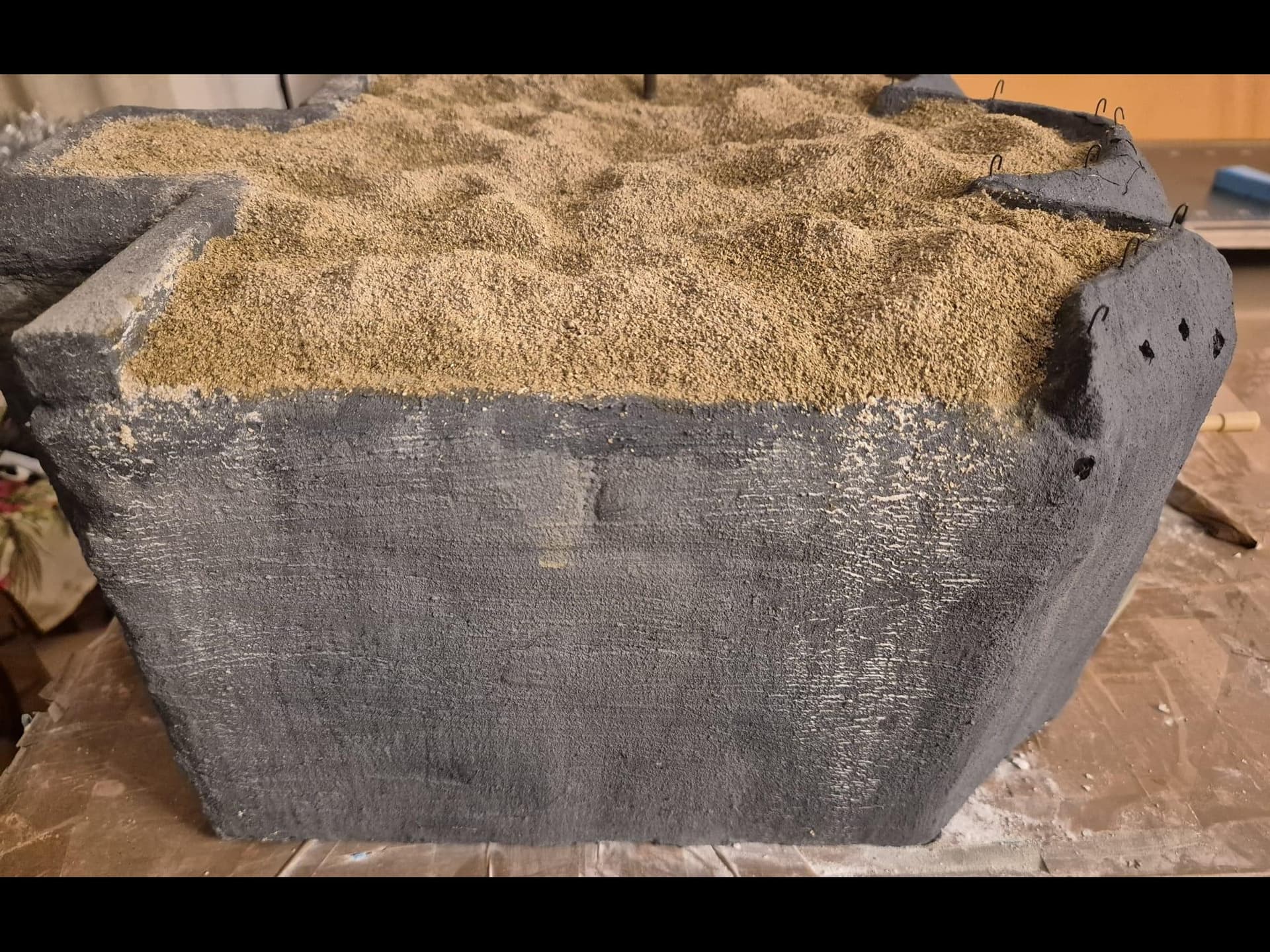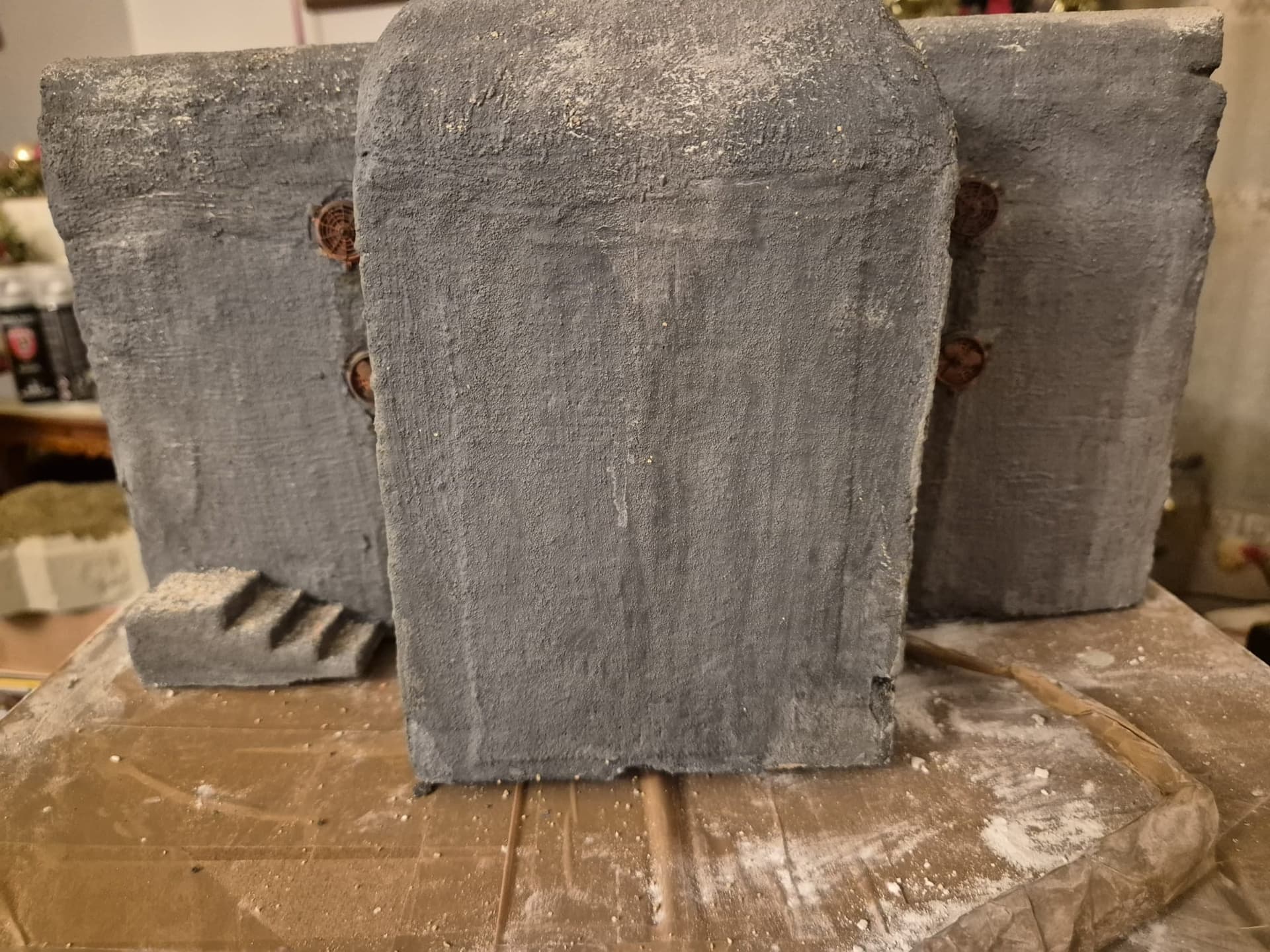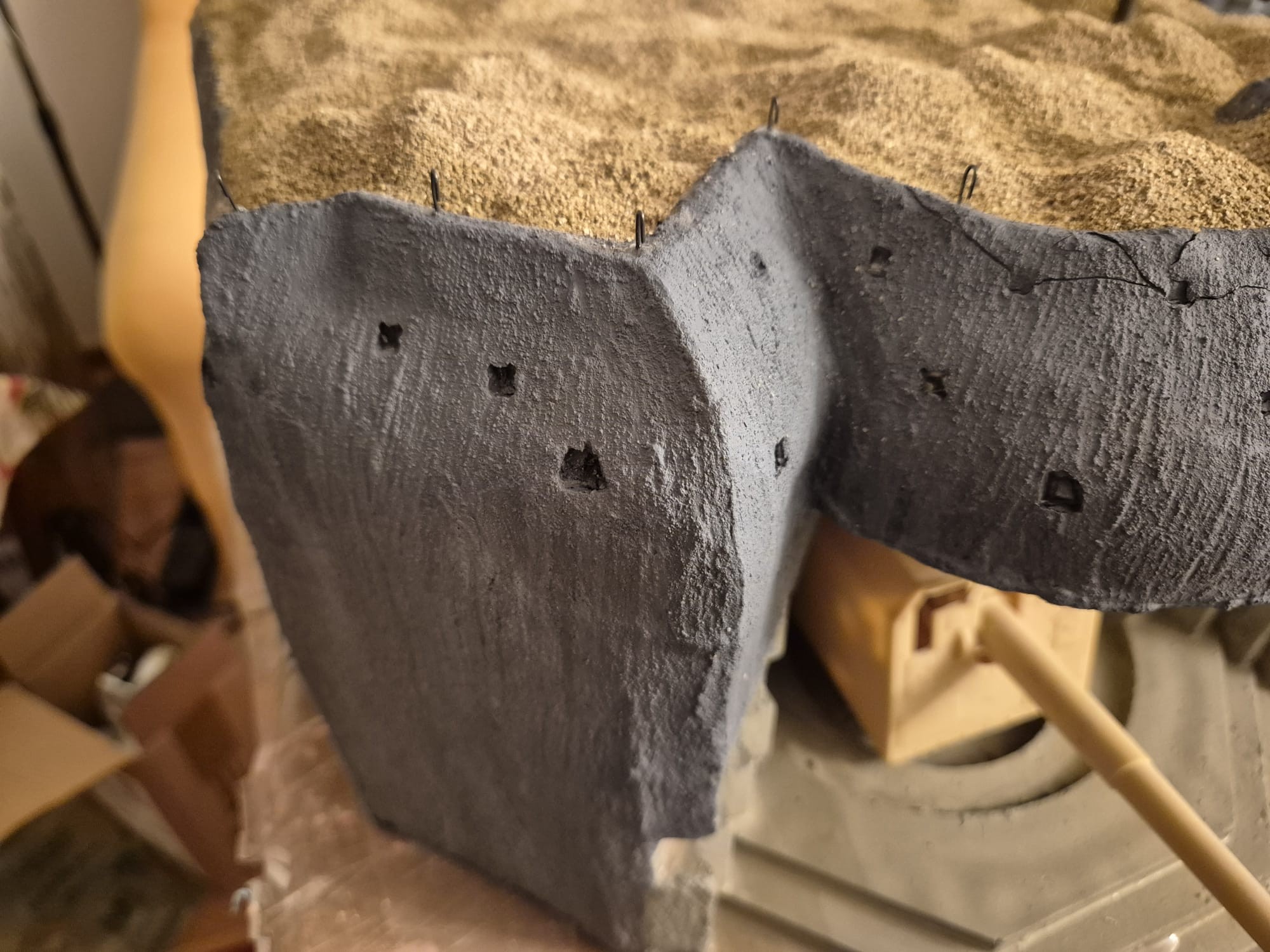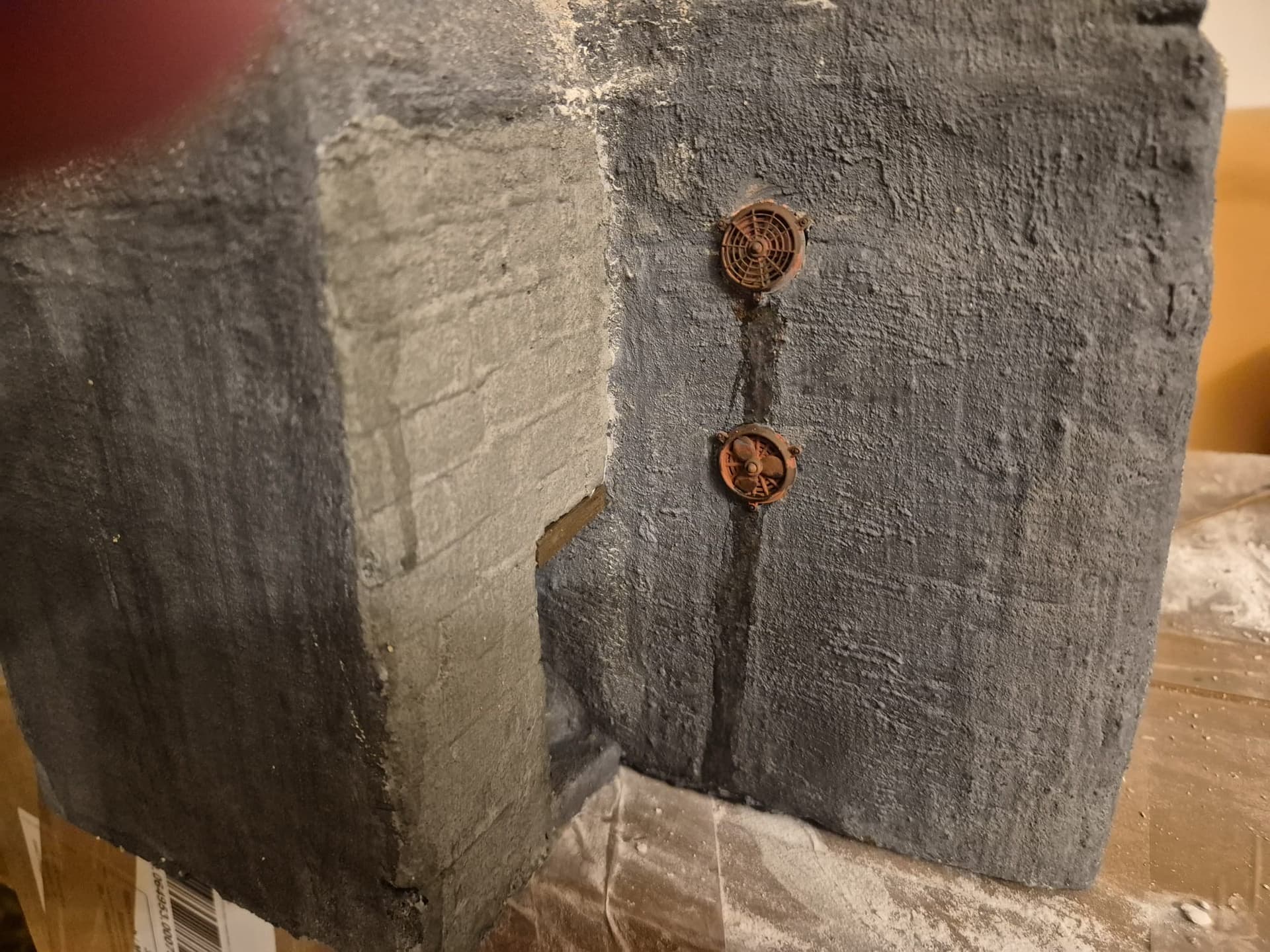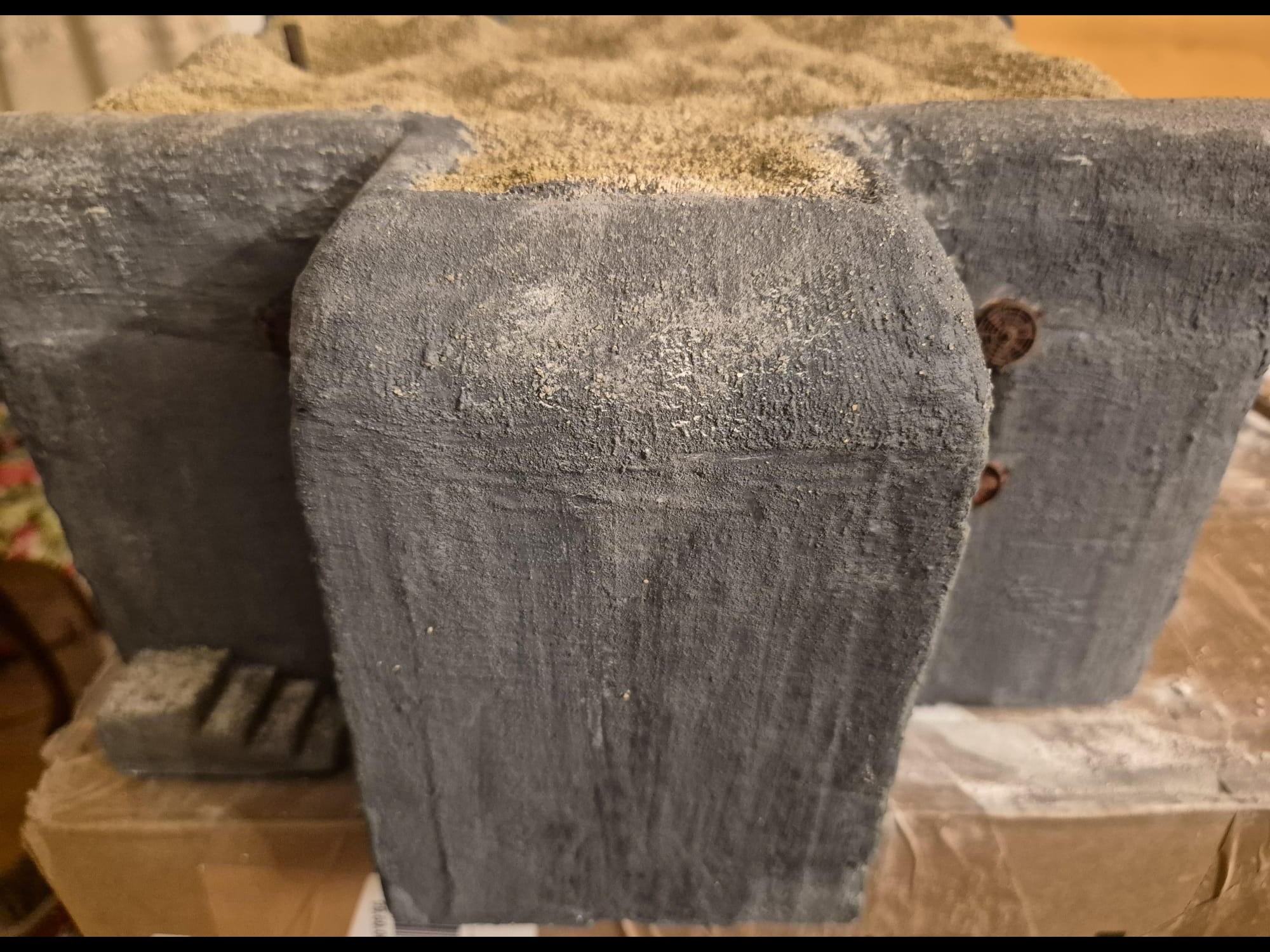 Your concrete is lookin’ good! I think you have, on some surfaces, achieved something like impression of wooden planks used as formwork, that is often seen on concrete surfaces. I made a special “stamp” for myself, out of a cut down popsicle stick in order to get that effect. I’ve also found out that I can use white wall filler and put soem black wash on top of that to get nice “concrete” colour. Like you said - there are many solutions to one problem.