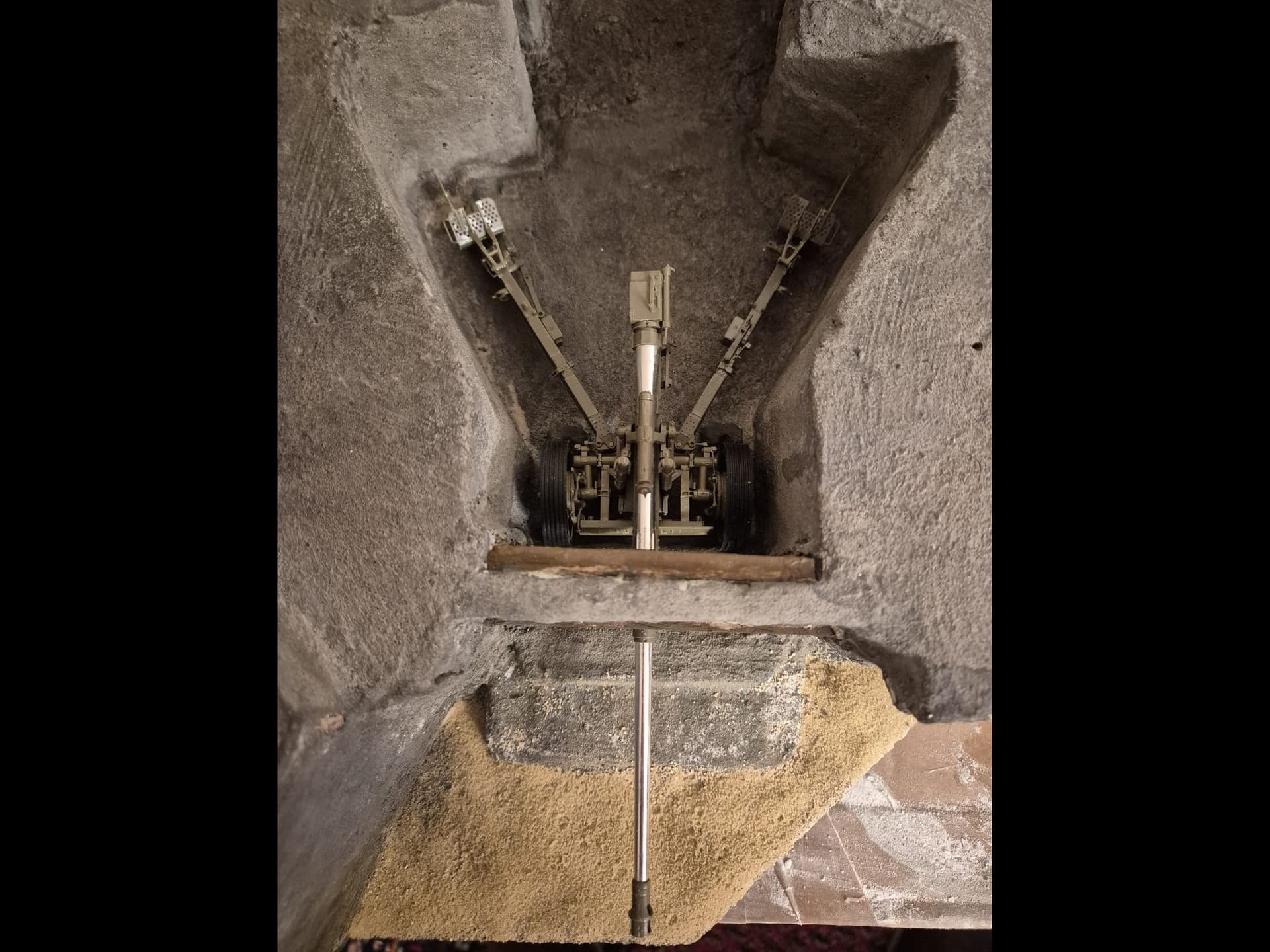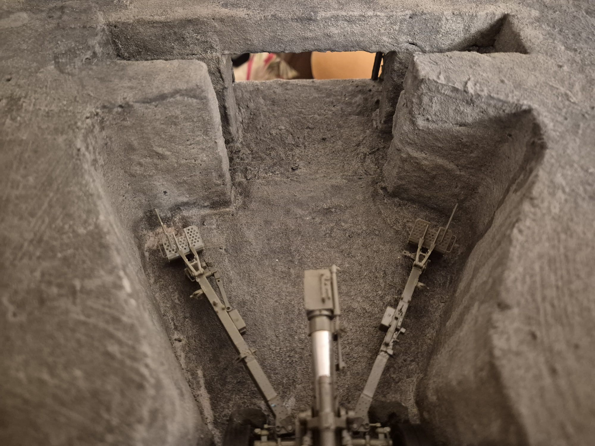The doors were then also glued in the open position with the same glue, because I plan to show the bunker while the gun is being fired. In such cases German crews always left the Iron Doors fully open to allow the gases emanated by the 88mm gun to exit the room more swiftly.