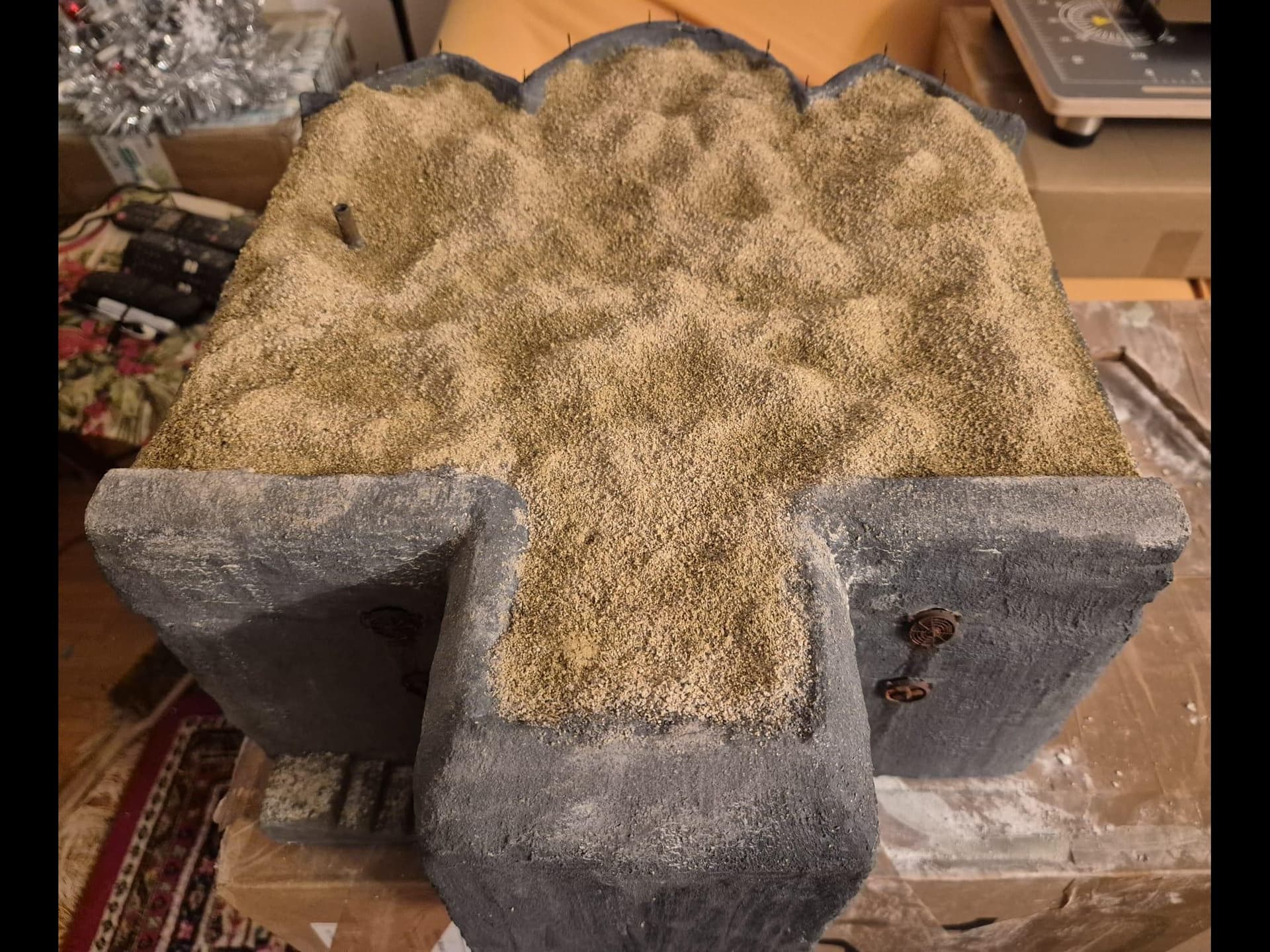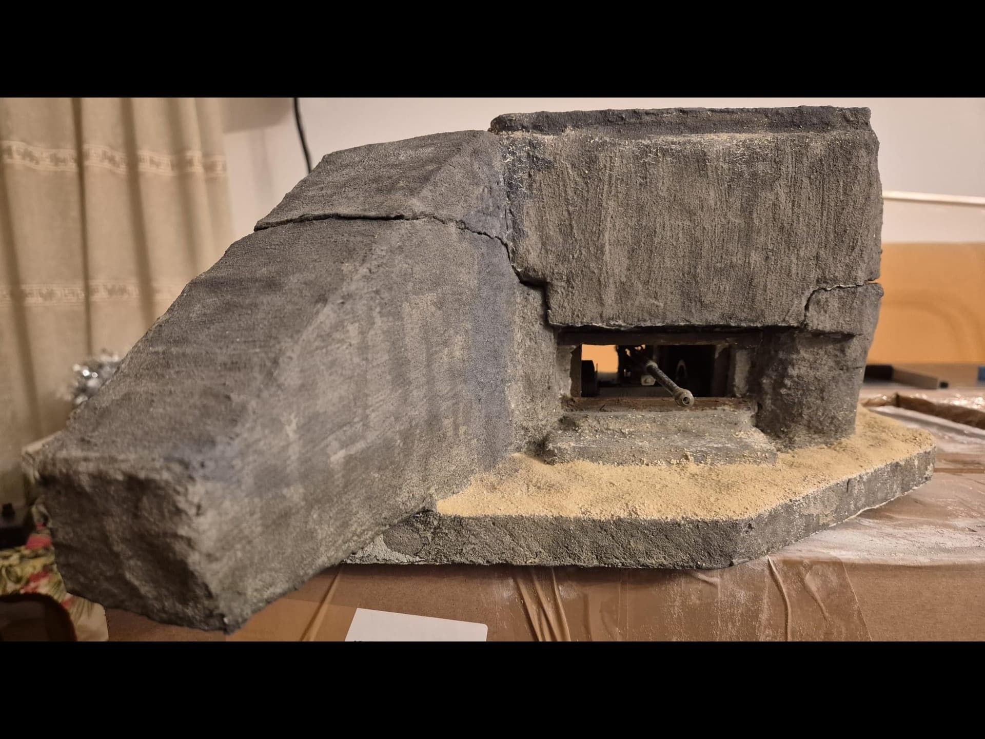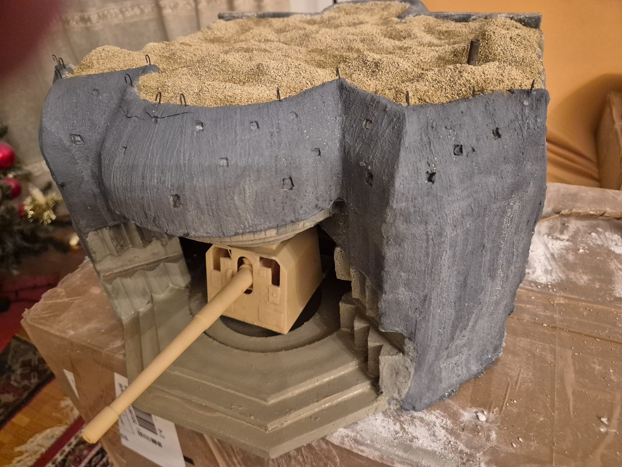 Unfortunately at this time I cannot show it because then I did apply the same procedure as the one above on the top of the roof of this bunker and it needs to dry thoroughly before I can again lift up the roof revealing the interior which will most probably happen tomorrow.
