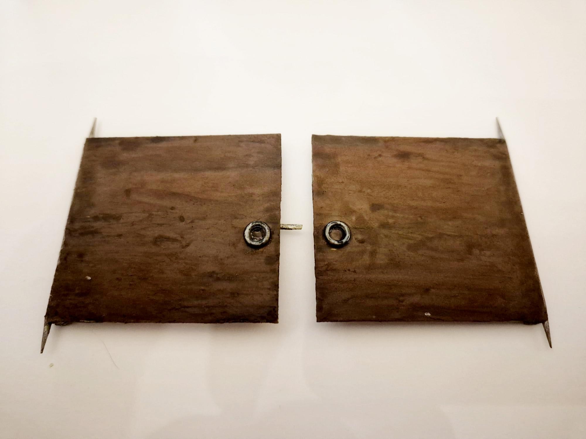 It is one with a dual operation depending on four steel rods interlocking with each other once the doors are shut and only the crew manning it can either open or close them from the inside. On the outside they had two huge rings to help the crew to open them completely, which I replicated with two common washers just painted in gun metal.