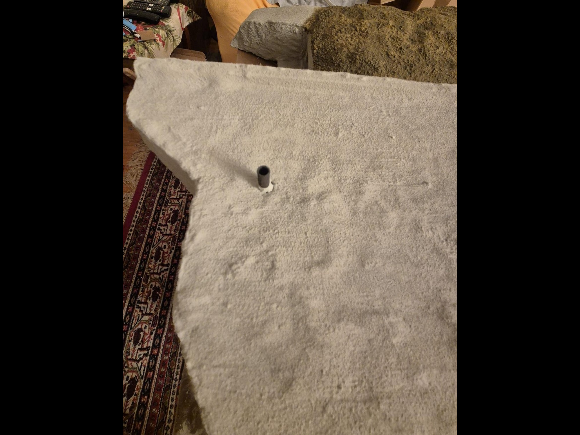 Once you have managed to grab one of them with the pointed side facing downwards, use a piece of polystyrene foam and fix the bolt into it.