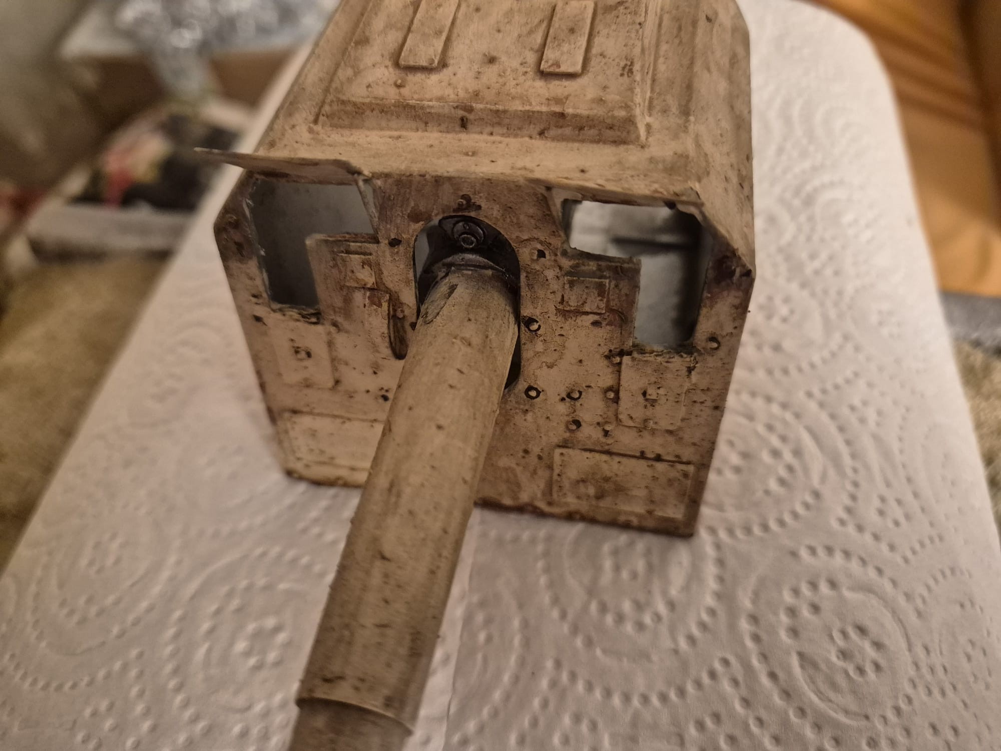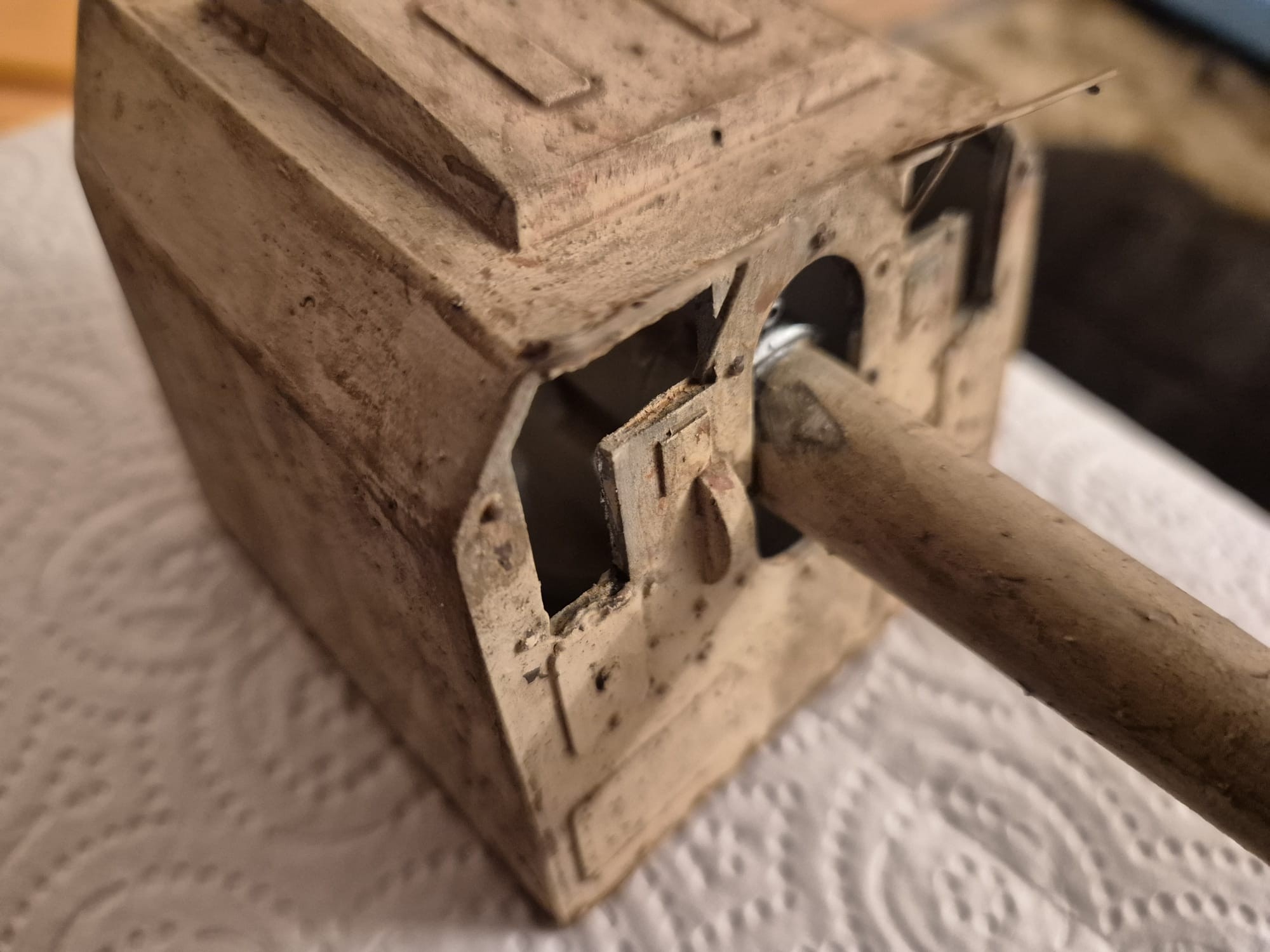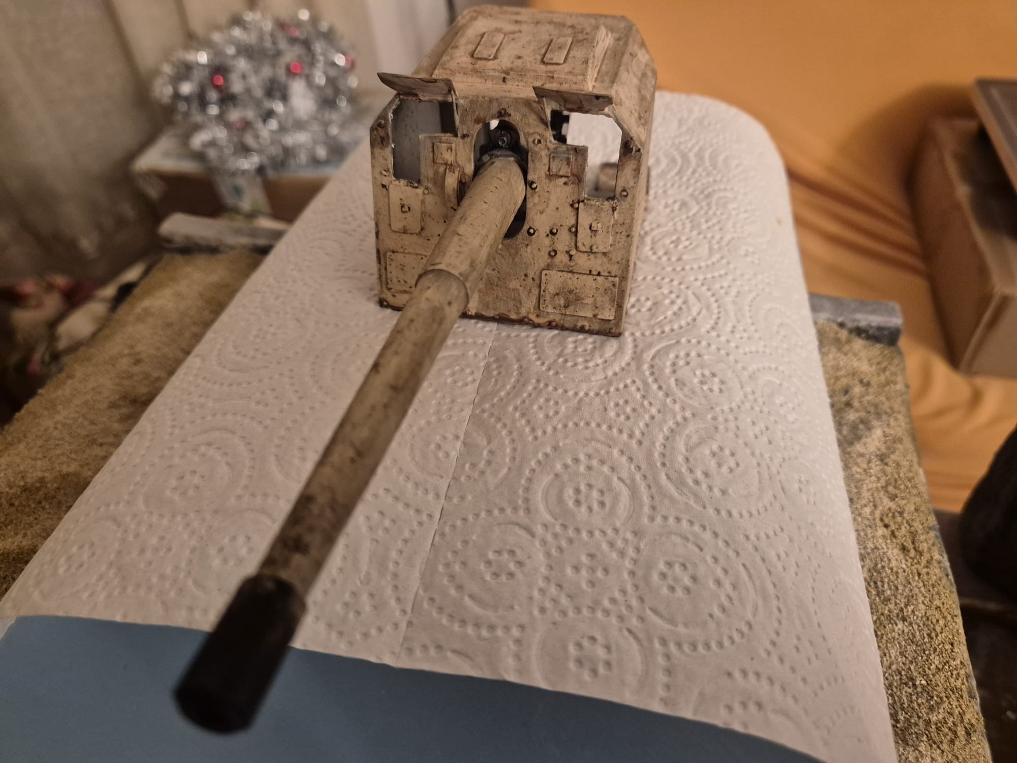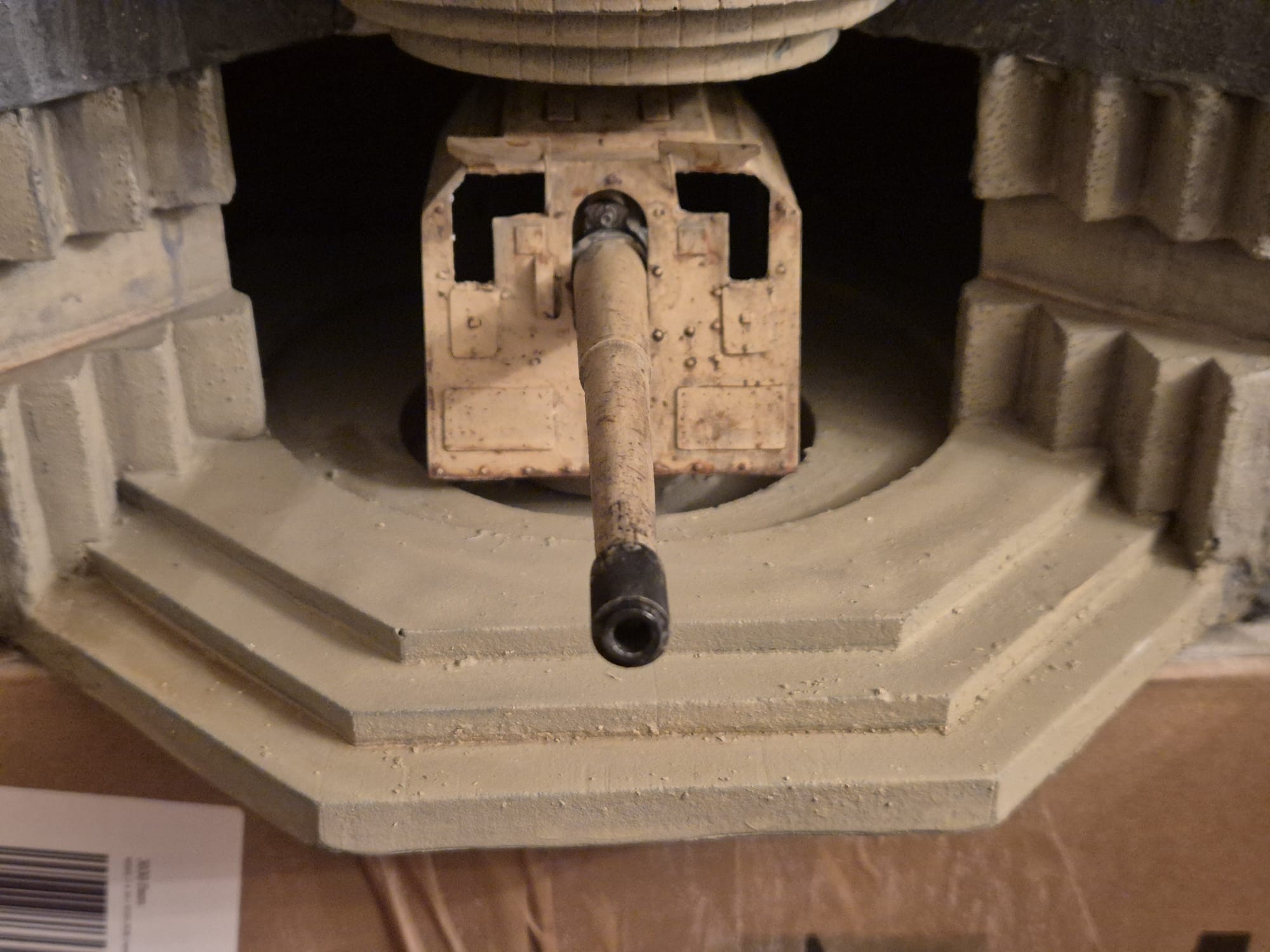 Second, the paint jobs were often applied by hand and not with airbrushes, like some tank units used to. The way bunker guns were painted was by using either huge brushes to summarily paint them in the main color, or just washed with diluted paint.