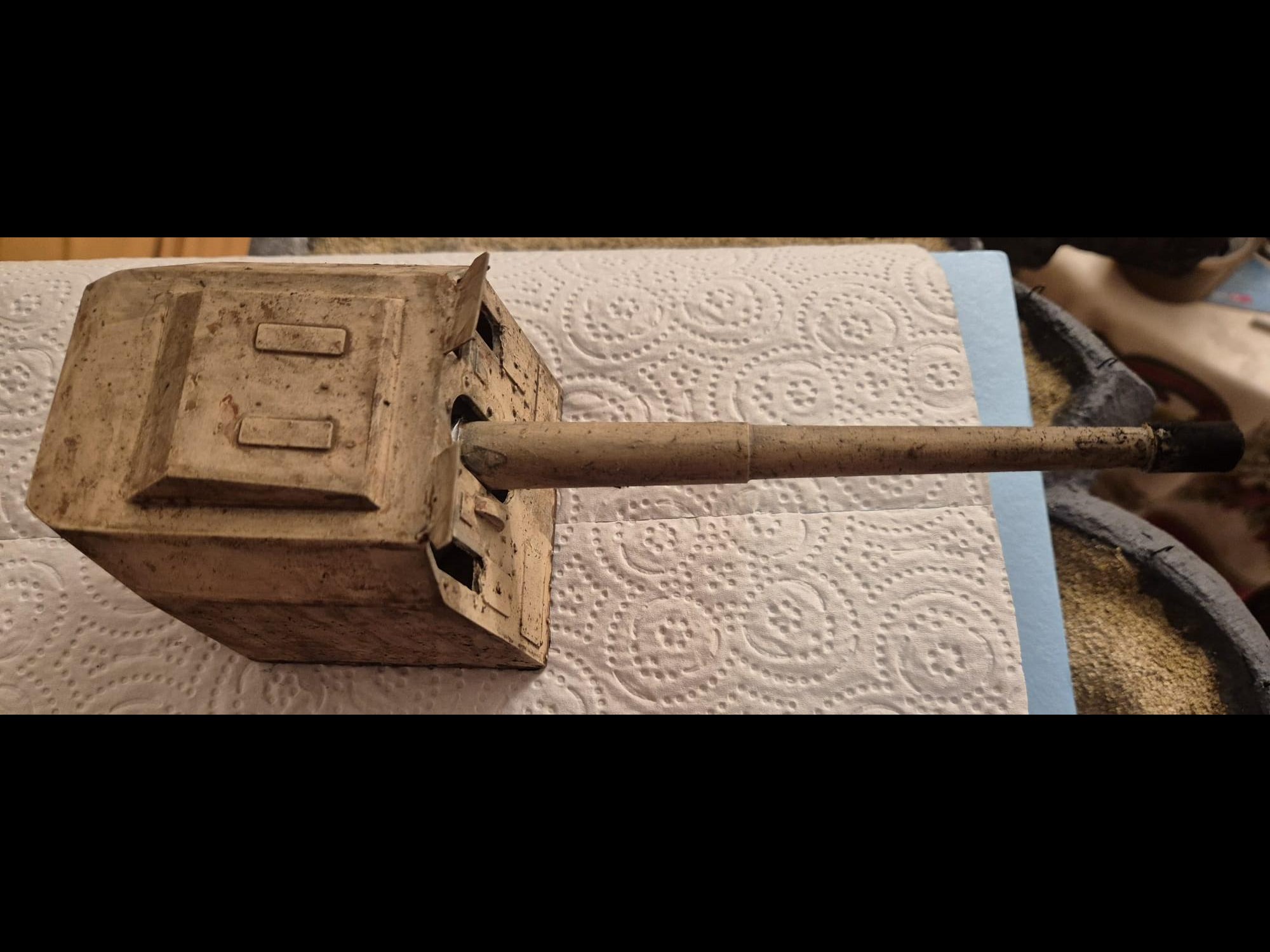 Due to the many shortages and difficulties to have punctual and constant material supplies, because of the bombings of various German factories and disabled railroads and roads, the Germans used whatever they could find to apply camouflage on their weapons.