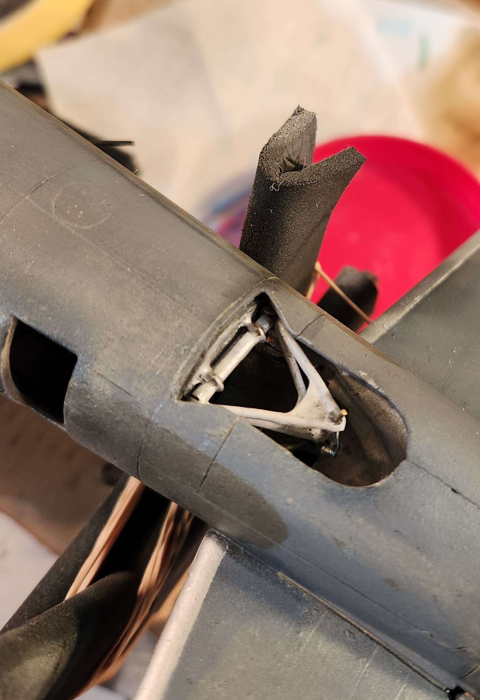 I was at Hobby Lobby and found in the jewelry craft area packages of 100 “eyepins” for about five bucks. These pins are made of some bendable metal material. In the modeling section of the same store I found some K&S 1/16 brass tubes. The eyepins fit into the brass tubes as though they were designed to do just that. Also, the eyepins are exactly the width of a #69 drill bit in a pin vise. On my current 1/48 B-17F I used the eyepins to attach all the open doors, I used them to make pitot tubes, I used them to attach a scratch built rear wheel system (using the ring end of the eyepin as attachments for an axle as well as to hold the rear wheel) and to attach numerous pieces in the interior of the aircraft. I used them for hydraulic door openers on the bombay doors of the scratch built bombay of my B-17F.