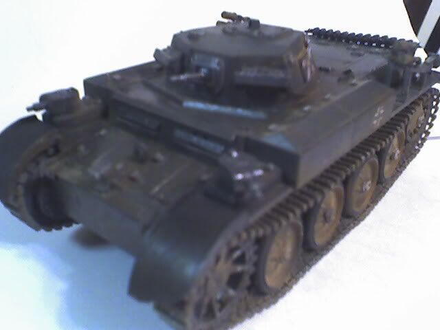 alex, thanks for the comments… the weathering shade was done with a mix of red-brown and german grey and then weathering powders. the raised tubes. well, i read that they mounted these grenade launchers on the back to compansate for the range support lost by removing the 20mm KwK gun in favor of the lone MG. The flamethrowers on the front did not make up for it. But someone earlier told me they were simply smoke dischargers so I will double check my references.