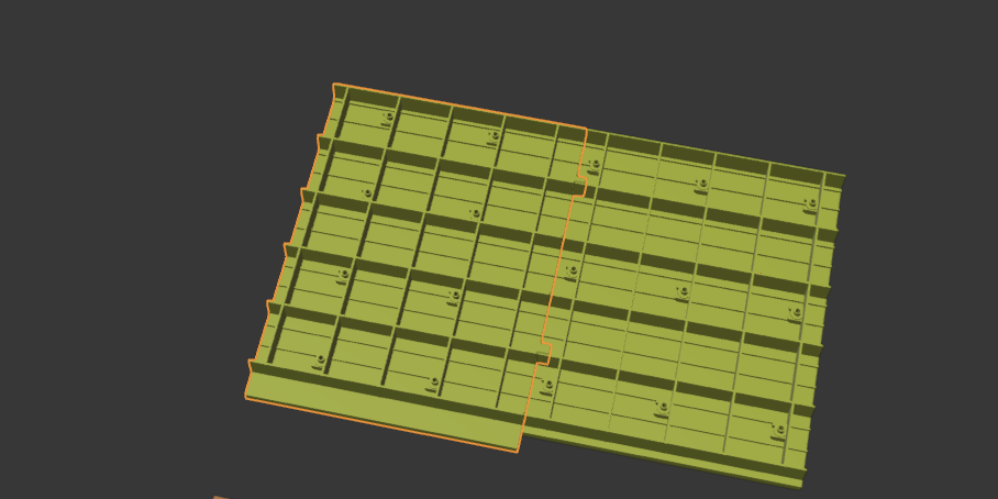 I also decided to use locator tabs to keep all the overhead parts aligned. I can only print about 60x80mm in my printer, so I will have to do a number of increments. I’m thinking that, to keep the project manageable, I’ll just do Hangar Bay 3 and will close the fire doors between Bays 2 and 3 so that I don’t have to do the rest of the hangar bay, which will not really be otherwise visible, since the #1 and #2 elevators will be in the up position.