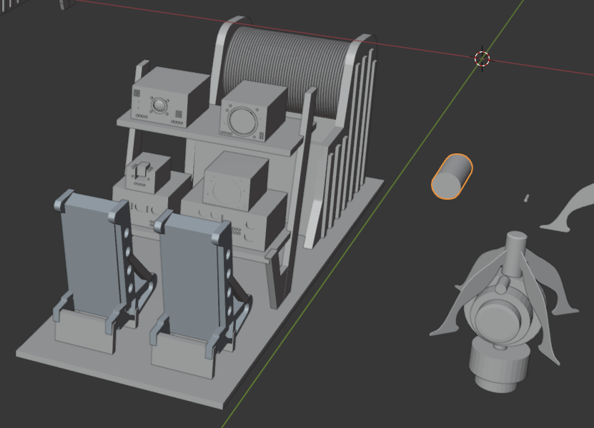 I am waiting for a router to arrive so that I can work on the base for the Hornet. I have a solid oak plank that I need to put a round over on, and then I will lay keel blocks. I will drill through two of those to mount the hull securely to the blocks. In the meantime, I have been building representative aircraft from the Hornet’s airwing. I have already built the S2F (what my Dad flew in) and the F2H-4 Banshee, both in 1/72 scale. I’m now working on the HSS-1 Seabat, but it needed an interior for the ASW operators, so I put one together in Blender: