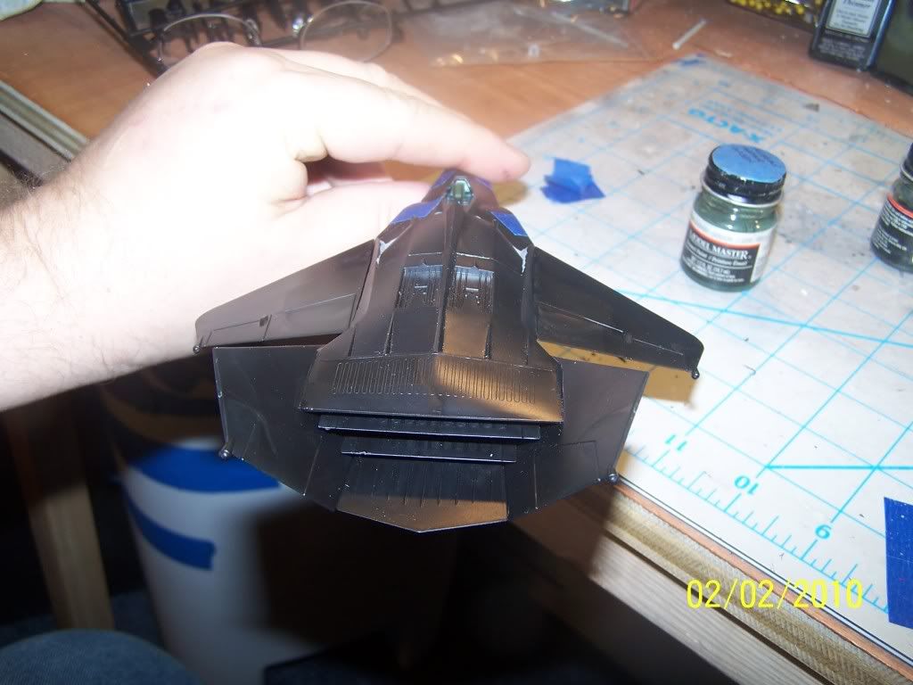 Using the small brush, brush the black pastels on the model following the panel lines…(try to center the brush over the panel lines)