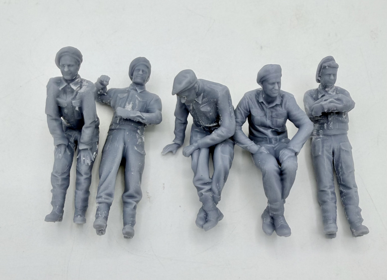 Once those were done I decided to do another batch of the Commonwealth tank crew…. But this time I cut them off of the bases after they came out of the printer before the wash and cure before the resin became more brittle. It was time consuming, but turned out ok. Since they take so long to print, I had them printing overnight.