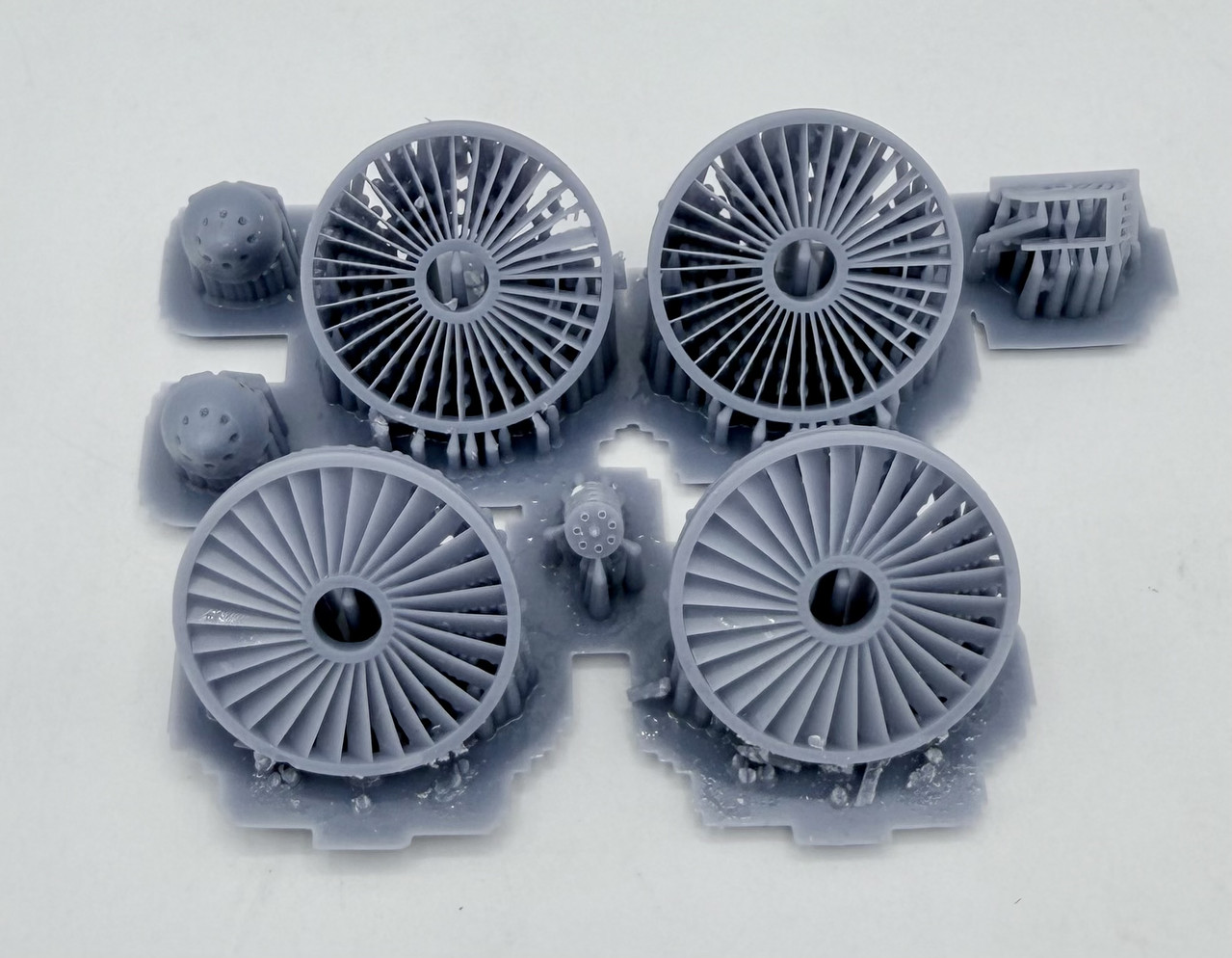 Then in the morning I printed up these GE-F110 afterburner flame holders. Damn they look so much better than what comes in kits. The original file was 1/32, but I downsized these to 1/48