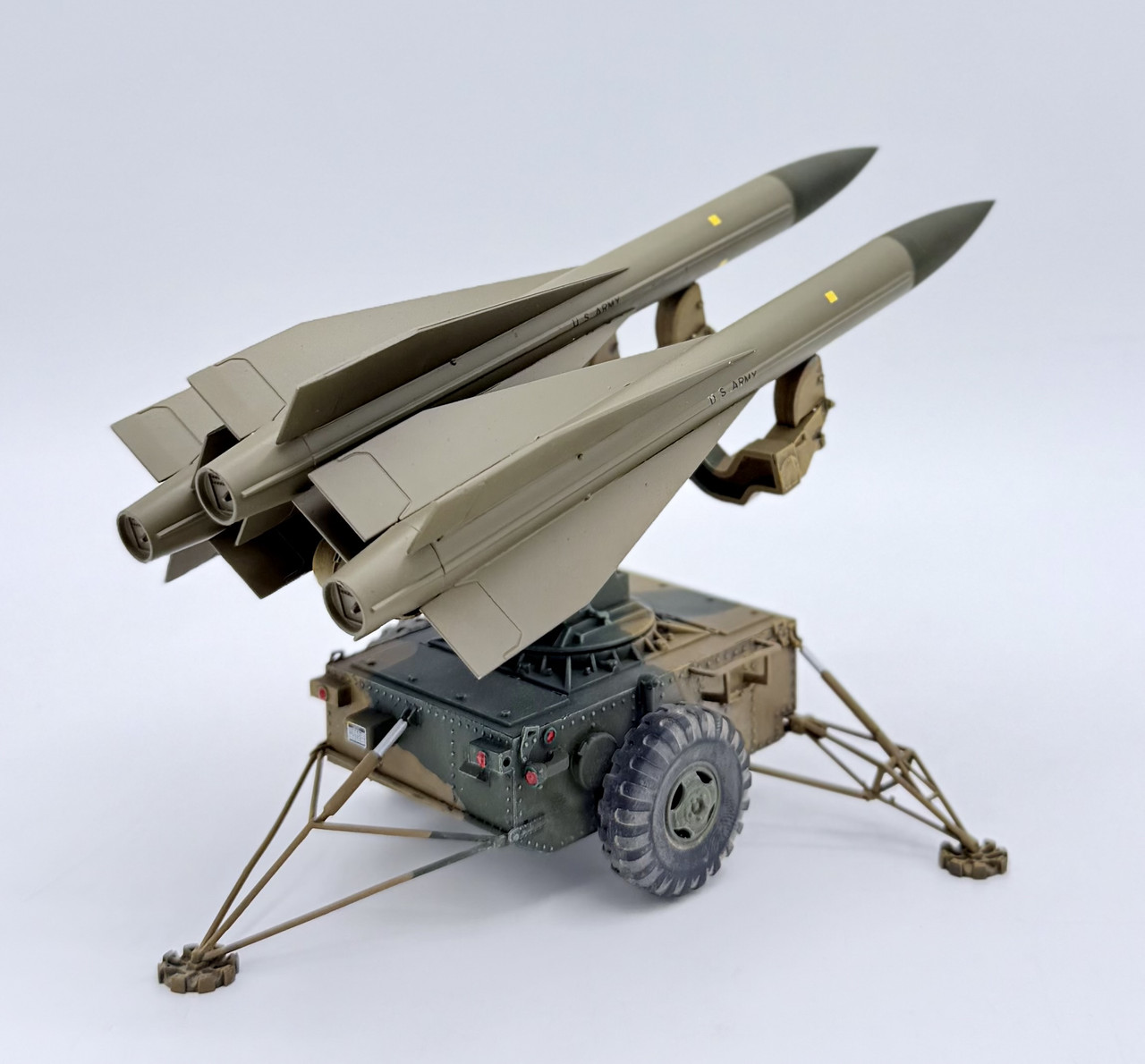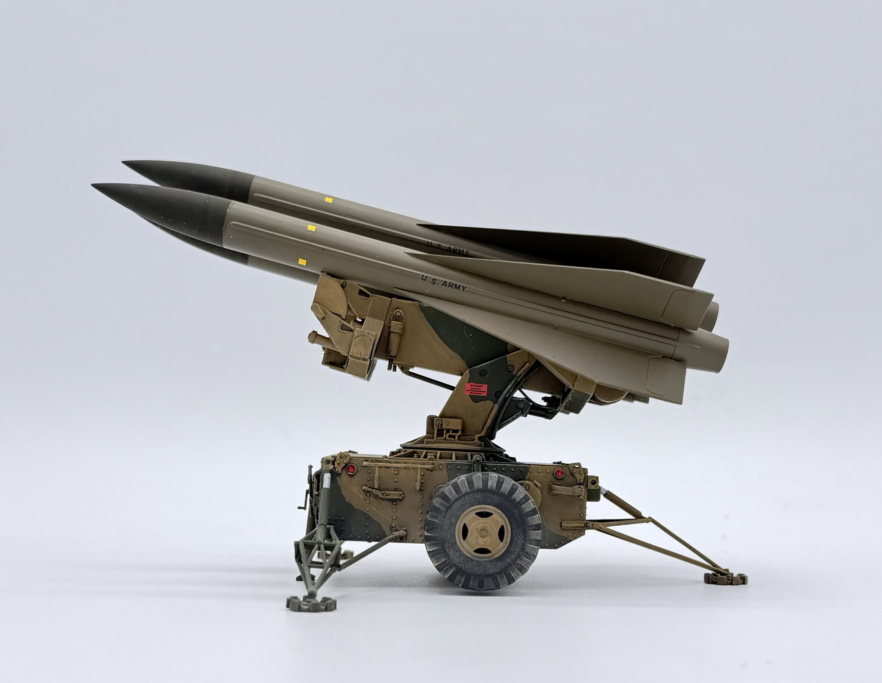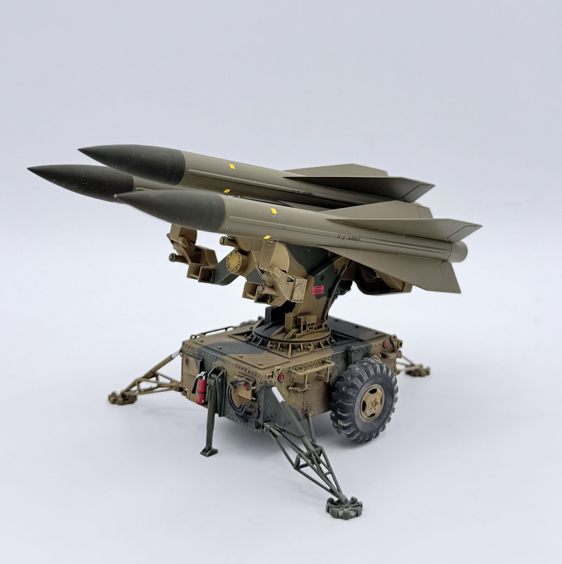 My latest completion, Dragon’s 1/35 HAWK missiles on M192 launcher. I built this kit OOB and painted it in MERDC colors based off the few reasonable reference photos of US Army launchers that I could find online. The Launcher is painted in AK 3rd Gen and Real Colors paints, while the missiles are in Gunze Aqueous and Tamiya acrylics.