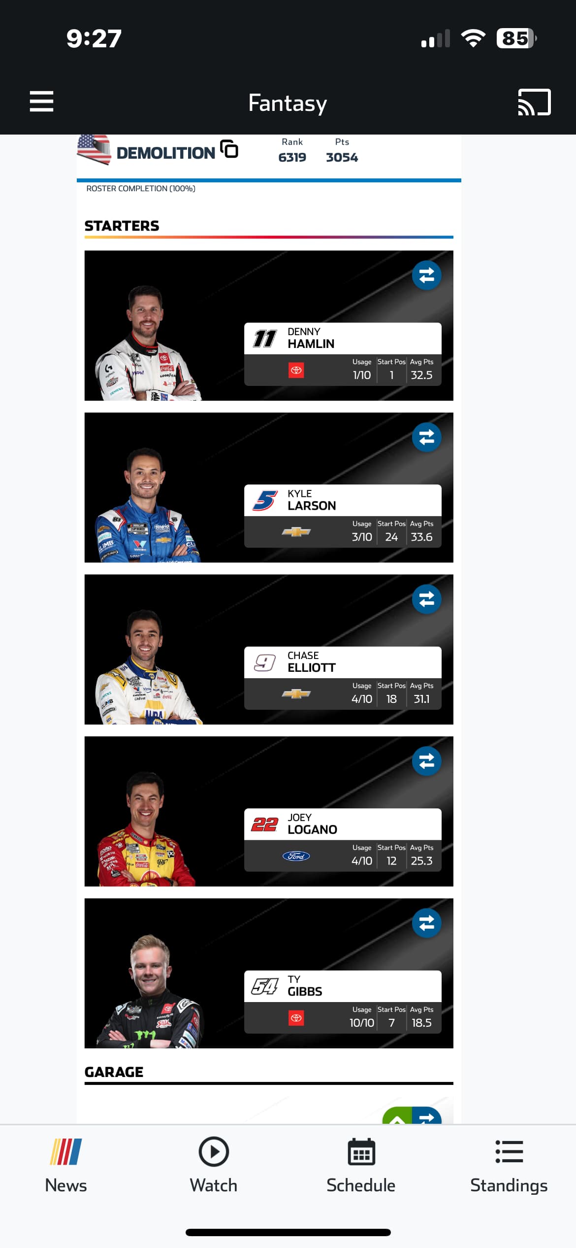 What’s the fantasy line up for today? I’ve got a few top tier drivers that I only can use one or two more times…..