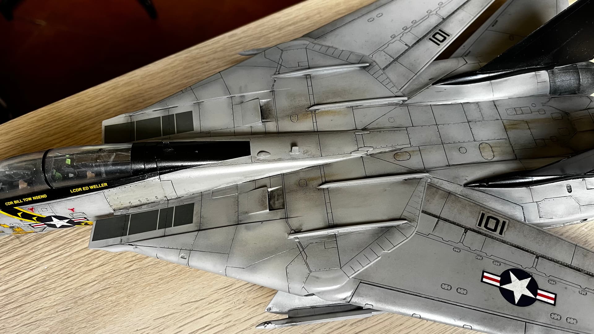 I have recently returned to this wonderful hobby after about 30 yrs of absence. I have now almost completed an old 1/48 Hasegawa F14A kit that I owned since then but had never started. This is my first experience with weathering, using oils… I have really enjoyed going through painting and weathering but I would like to have some feedback about the result… and how to improve it…. be blunt.. criticism are more than welcome…!
