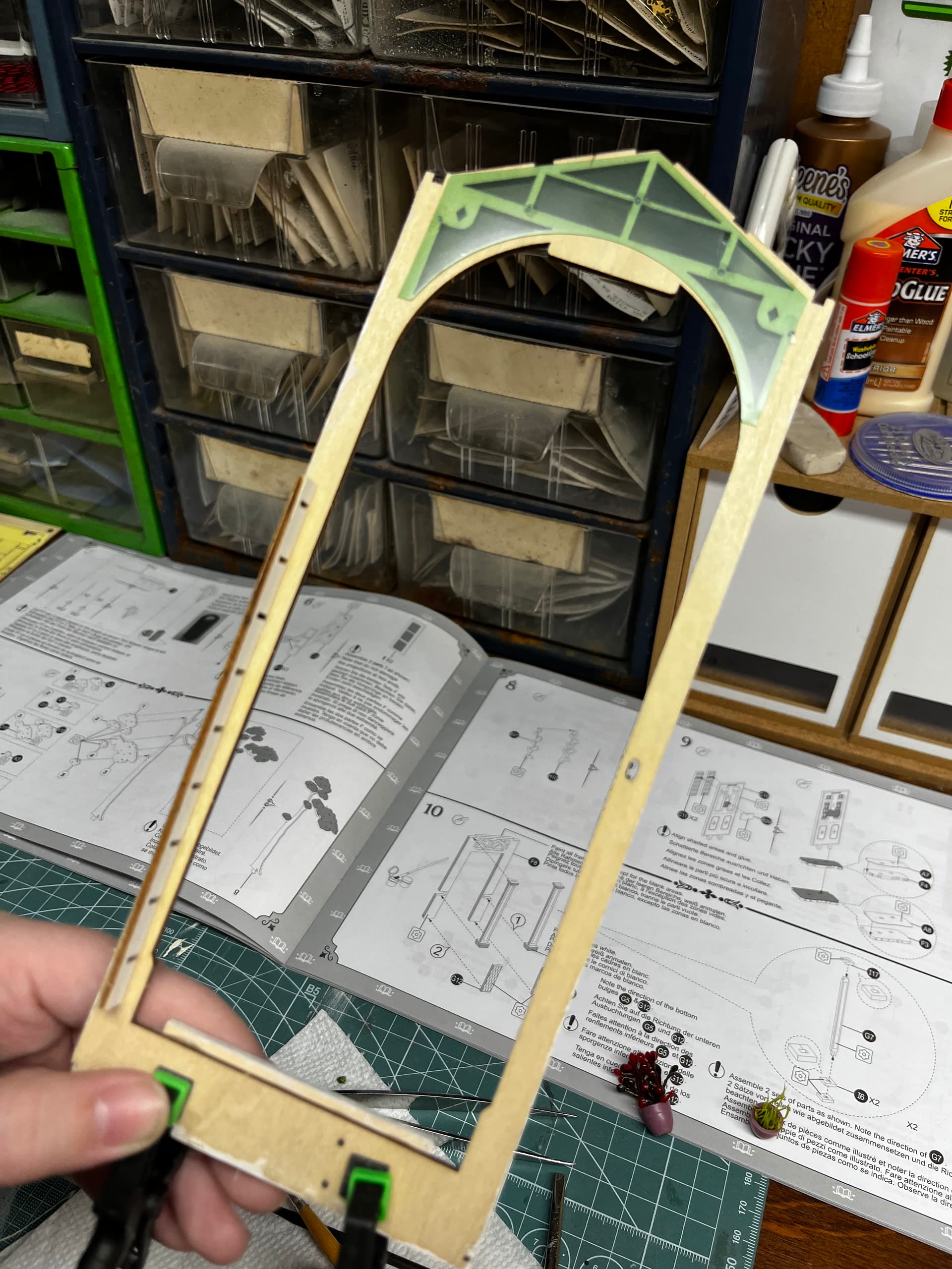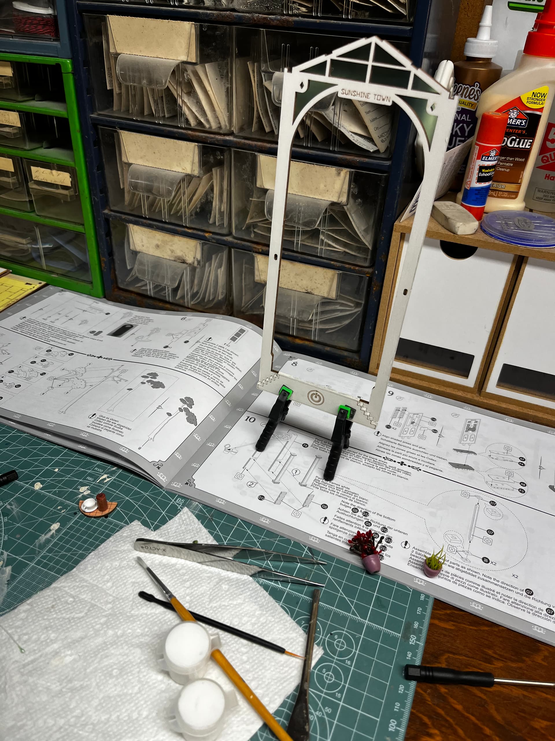 It is! It’s called Sunshine Town. She’s just starting to hit her stride with it now. Schoolwork was keeping her busy. She was really happy to get to use the acetate to begin the glass roof. “Nothing a No. 11 blade can’t fix.”