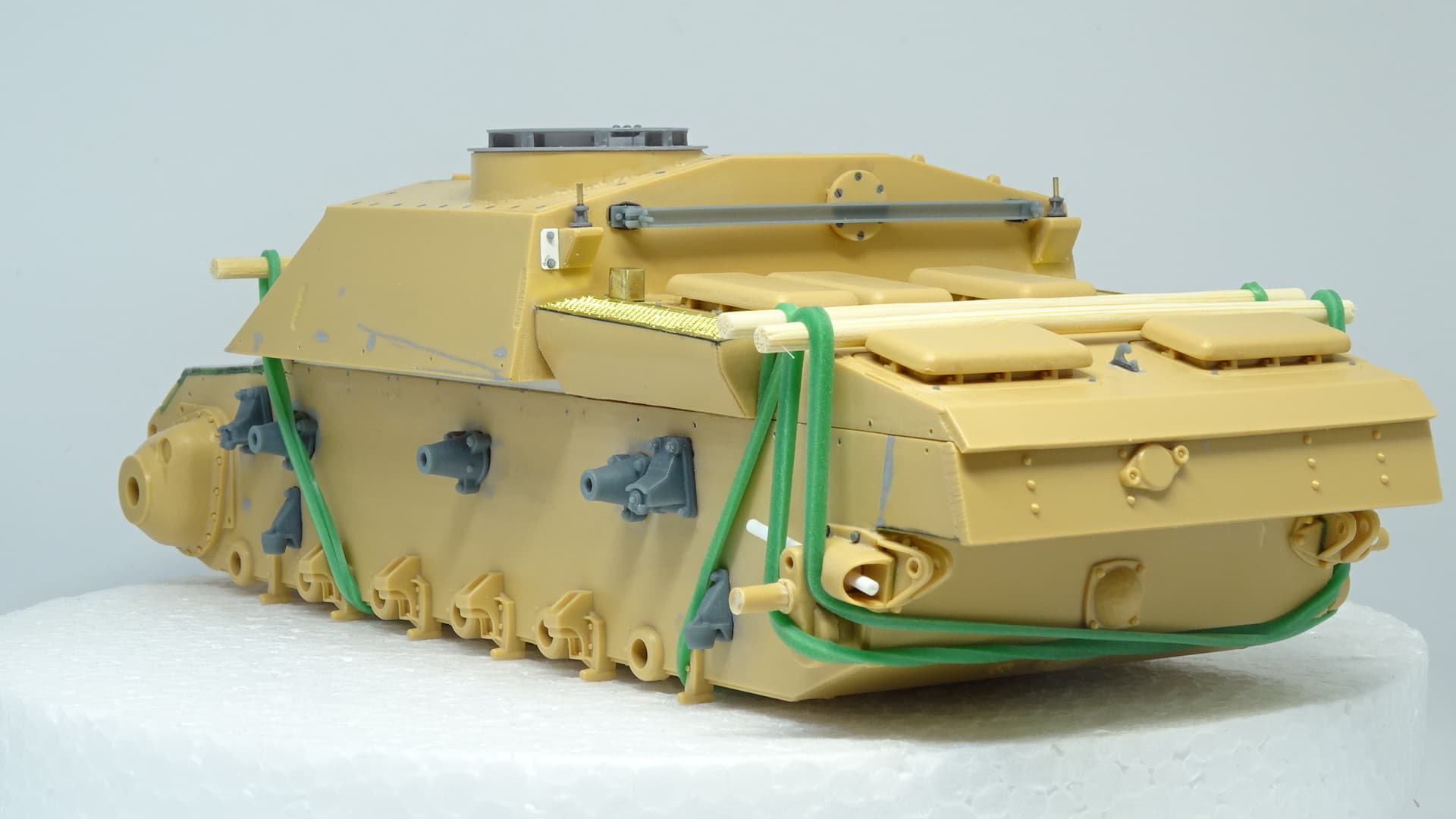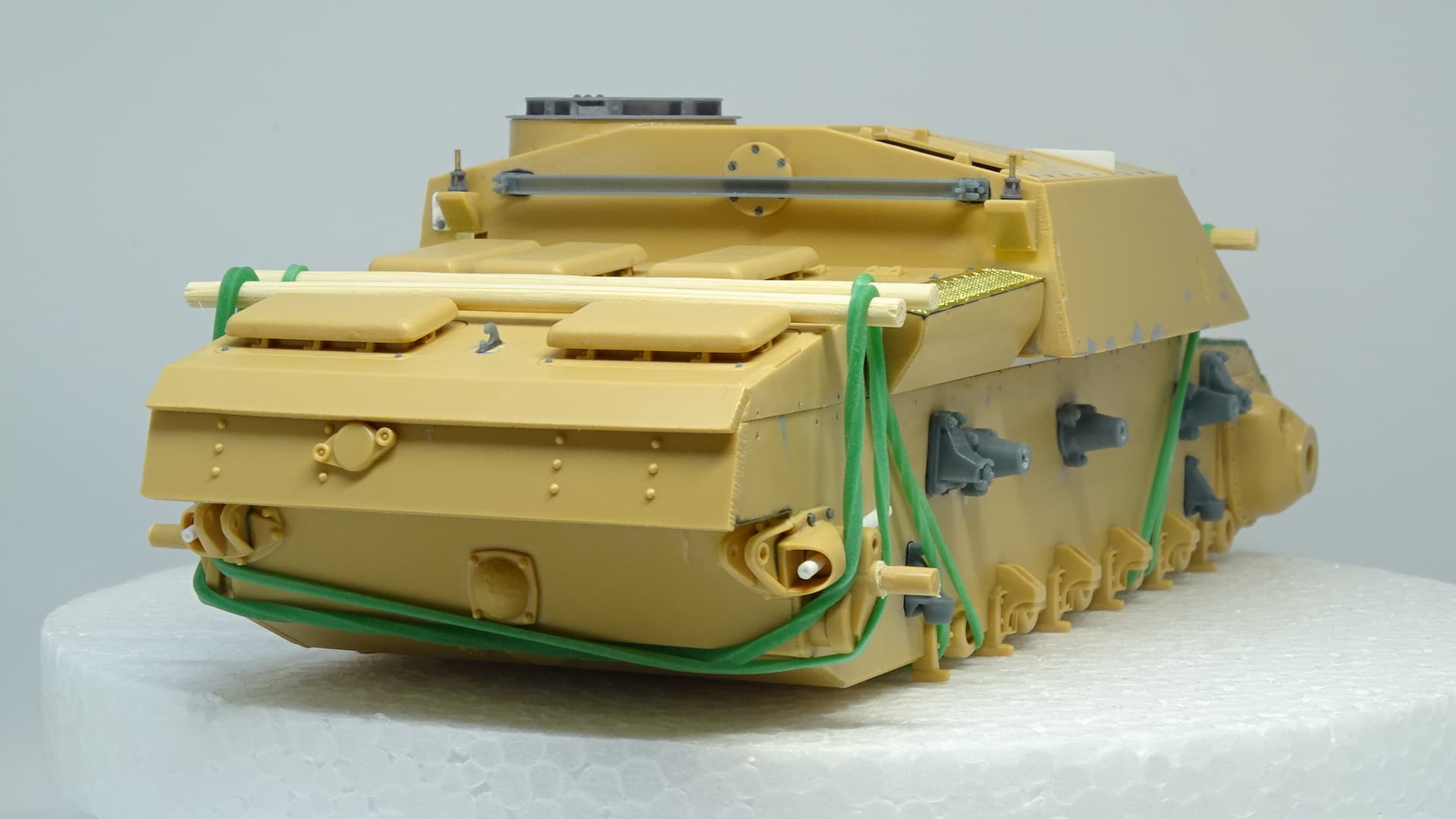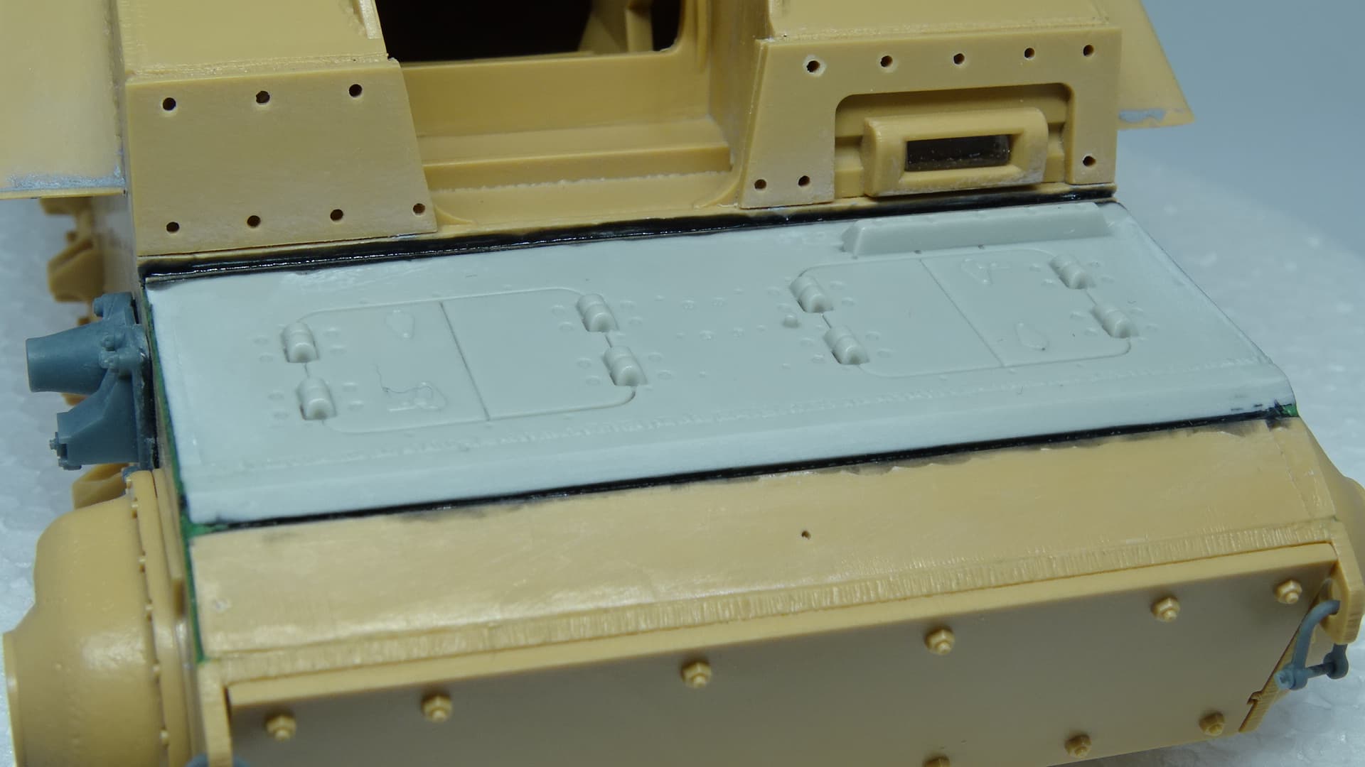 I love this “up-detail” you’re doing of the Tamiya kit. I’m curious: is that grey armor plate from a different kit, or a 3D printed part?