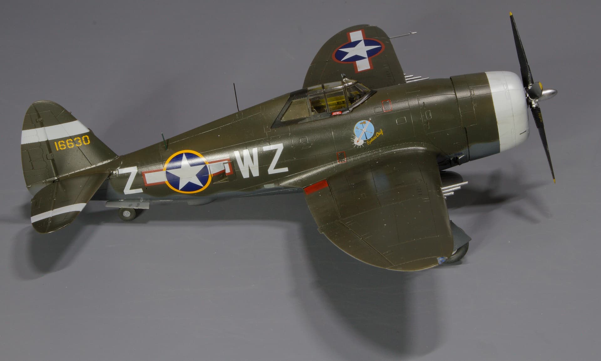 Final finish was Liquitex Stain Varnish to simulate hand-waxed finish field applied to these early P-47s.