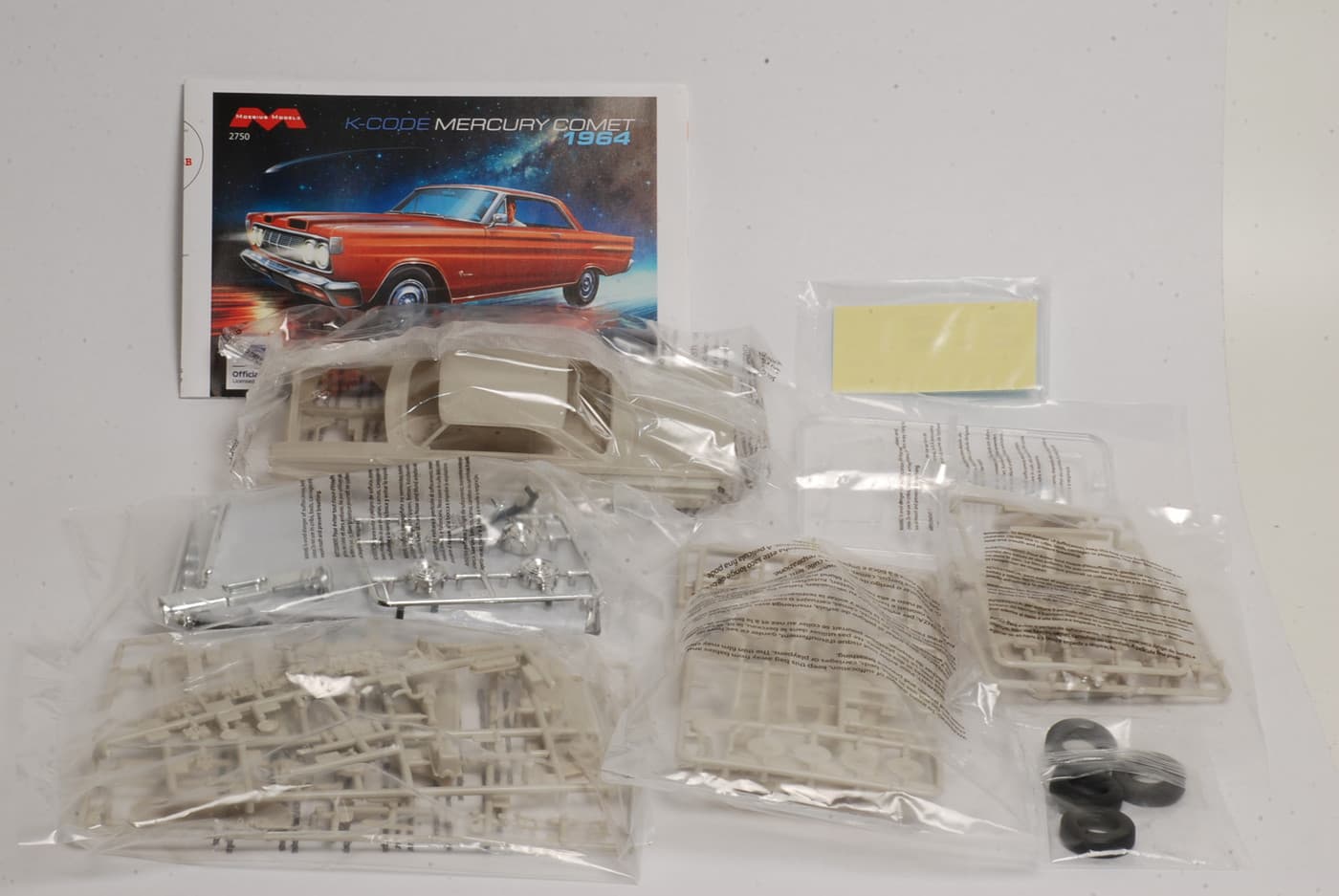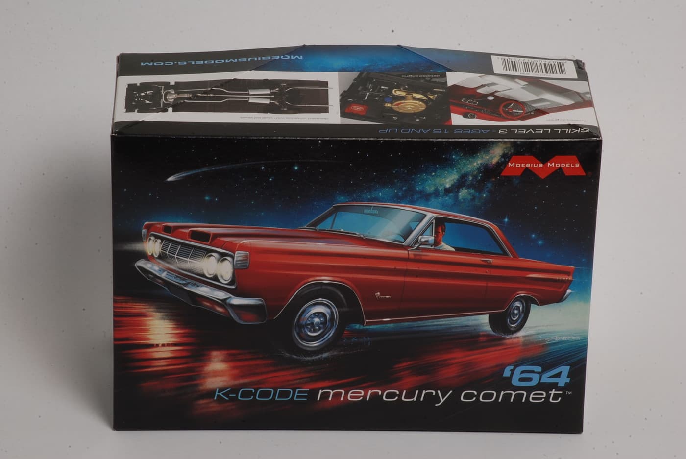 Seven members of the Minneapolis/St. Paul based “RPM” (Racing Plastic Models) model club are among the first ever “Civilians” (people other than Moebius/Pegasus and their contractors/vendors) to take a look inside the new Moebius 1964 Mercury Comet “K-Code” full detail model kit, on Saturday, October 18, 2025. Let’s take a closer look at what they saw when the X-Acto knife broke the seal on the kit…
