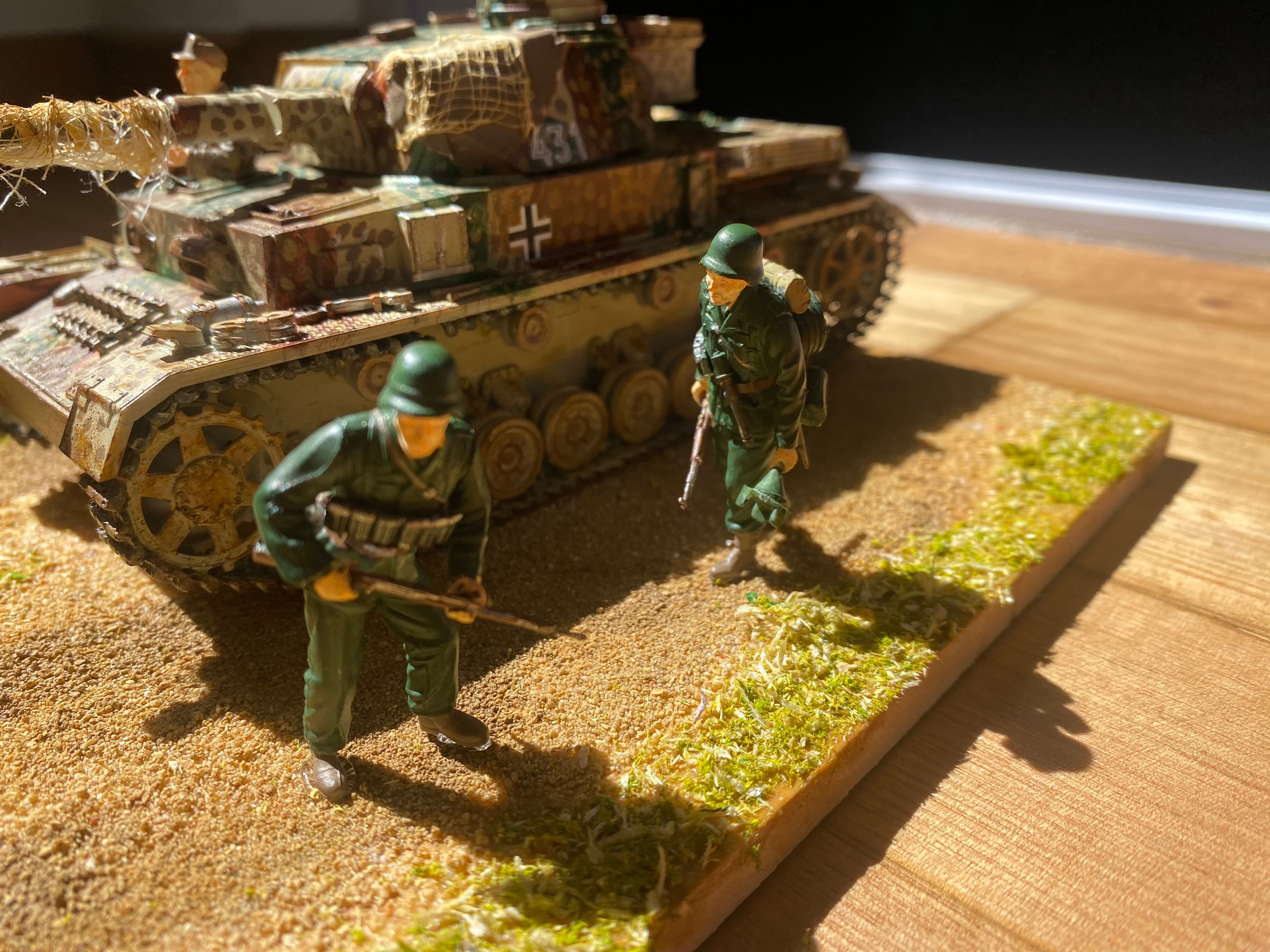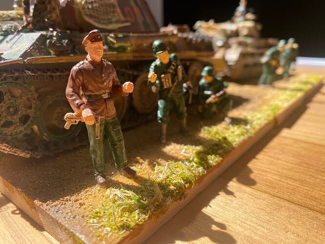 If you would like to make another dio, I’d suggest you work from a photo - you take a real life photo and try to show what’s in that photo. This can make the job challenging (like when you need to find a certain object/vehicle in scale, or re-pose the figures), but it also makes your life as modeller so much easier, because it frees you from inventing stuff and if somebody says “no, it’s all wrong!” then you just say “I got a reference to prove it!” - bada bim, bada boo!