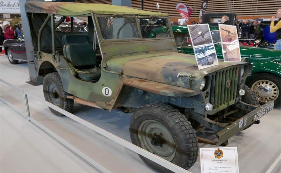 The French military used the M201 until the final one was retired in 2000. Hotchkiss made some French-specific mods to the M201 over the years. The most visible that applies to the model include the following: a new windshield wiper motor with its protective casing; a French-specific blackout drive light, which is flatter than the US version; removing the windshield rest blocks on hood and replacing them with two brackets on the windshield; a French-style jerrycan; a larger rectangular side rearview mirror; turn signal lights on the grille, and two rear brackets to accommodate turn signal lights compliant with French traffic regulations; one or two French antenna bases; a chemical decontamination bottle and support on the right fender support; a side mount weapons pintle; and Kleber tires.