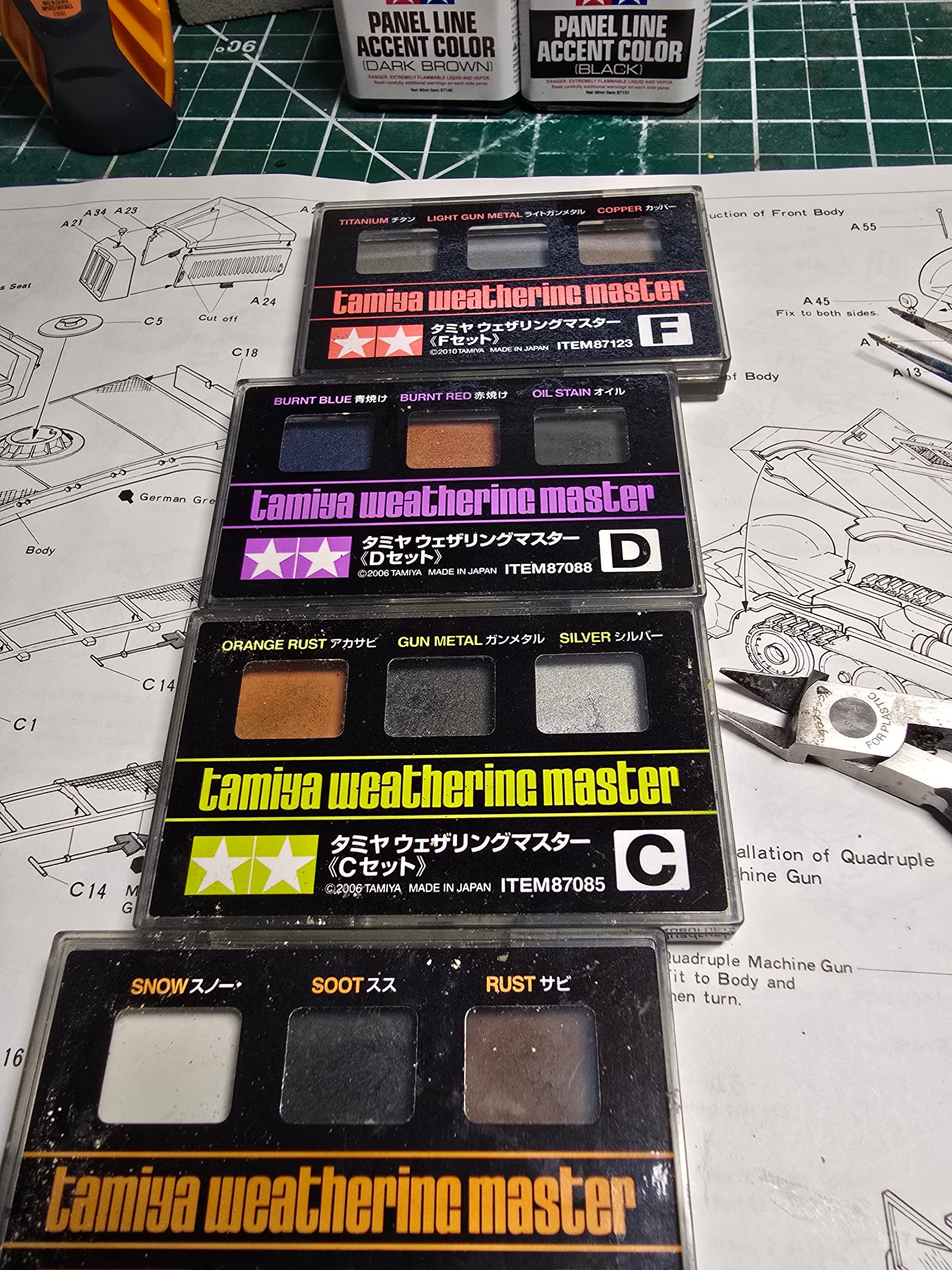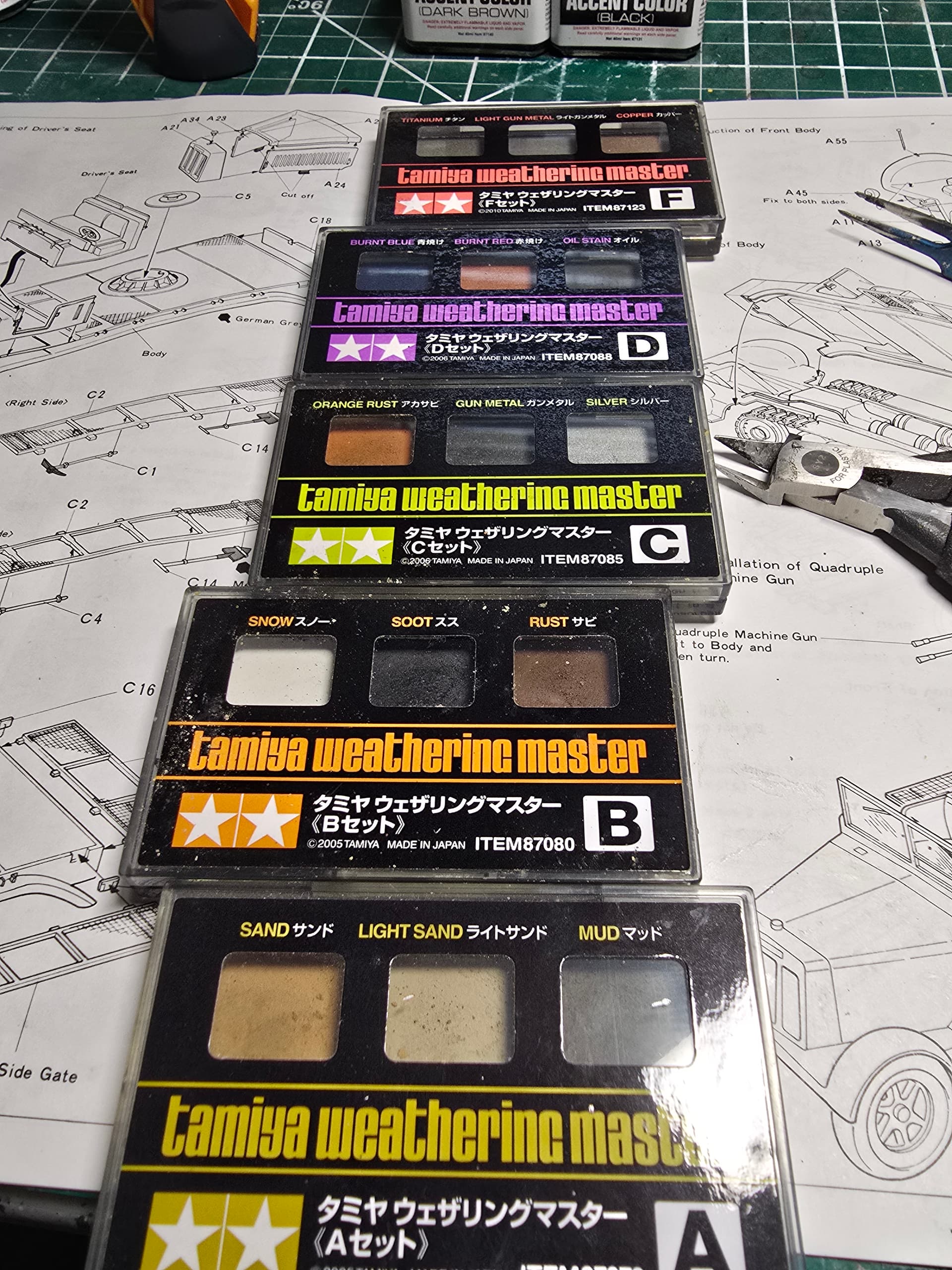 I have everything ready for decals, weathering. I have the white wash on order, the personal need accessories, weathering. Her is the weathering that I use