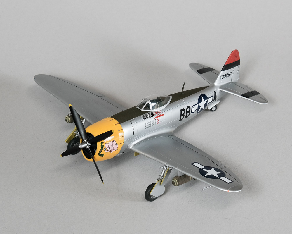 This kit looks nice when done and I am happy with the result; but I don’t think I’ll ever build another one when I have the option to build a Tamiya P-47 for about the same price. The fit was ok, but the spartan cockpit and wheel well detail, combined with numerous sink marks that I had to deal with on external surfaces, has soured me on this particula kit. Oh, and did I mention it comes with no centerline drop tank?[*-)]