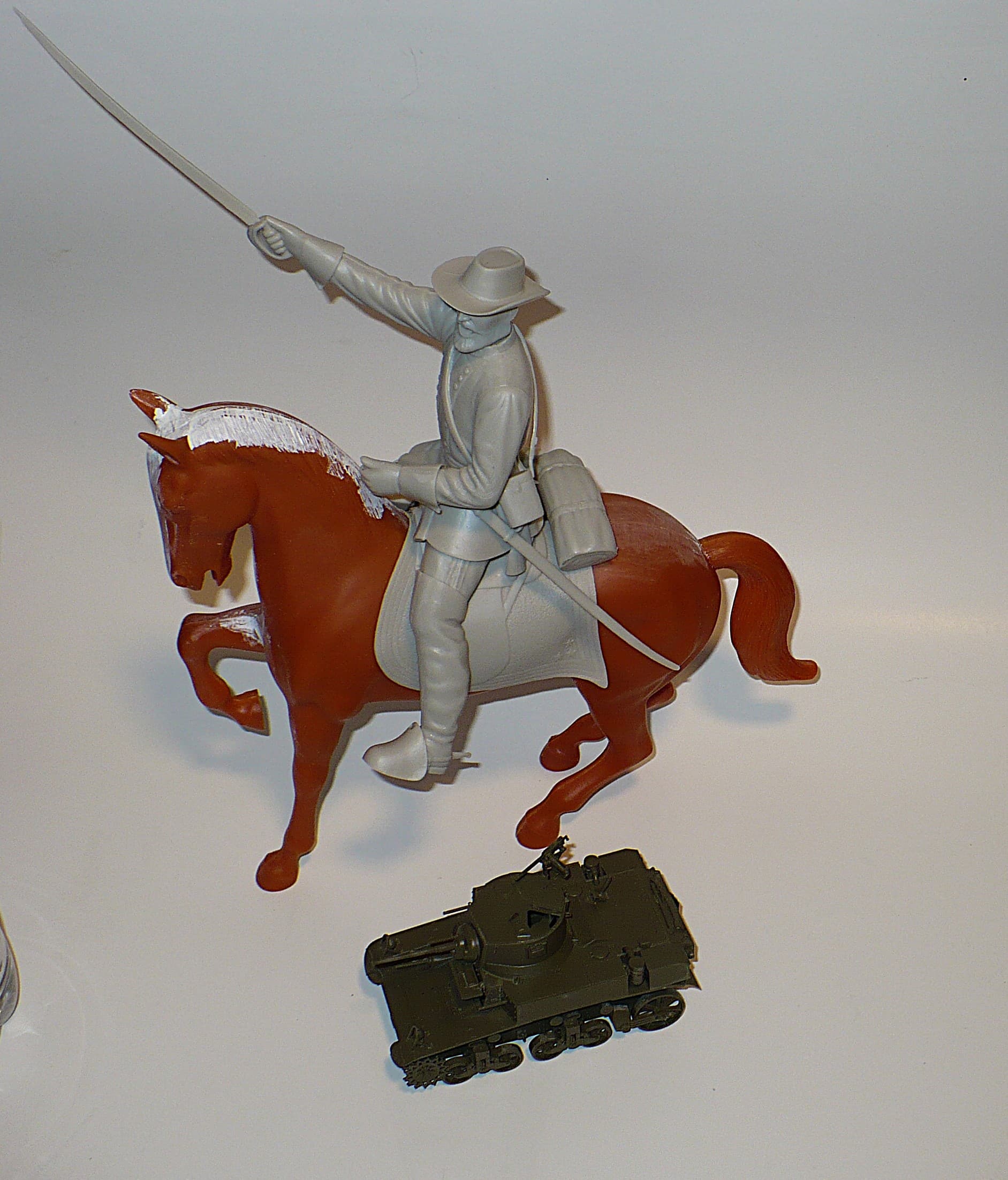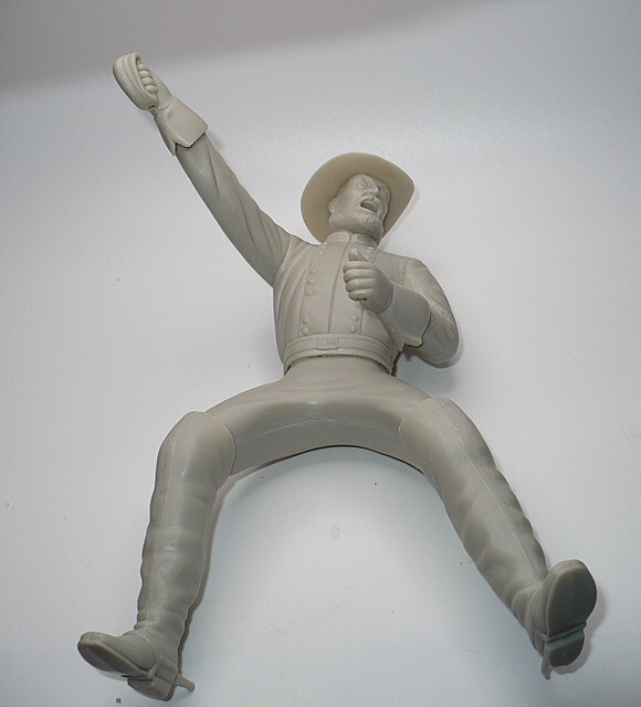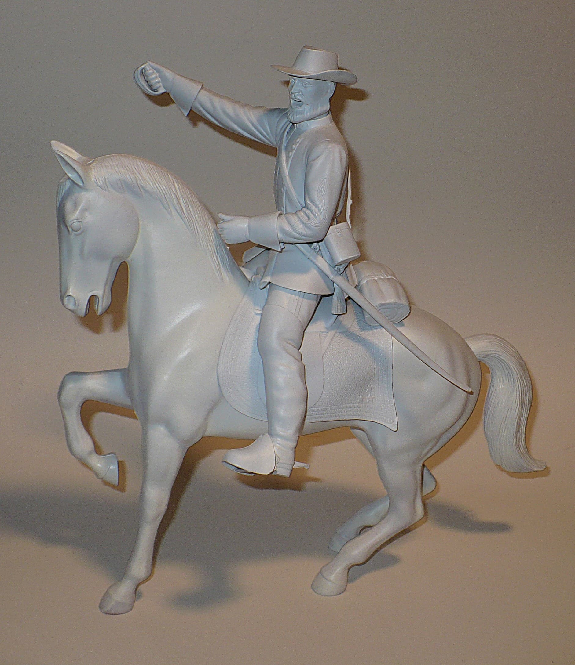 I have seen the concept modeled a few times and have wanted to do one myself for many years but a key ingredient was the availability of the right size general on horseback. Aurora made the Confederate Raider kit just once in the '50s and although Moebius did a limited rerelease a few years ago they were always to expensive to warrant the project.