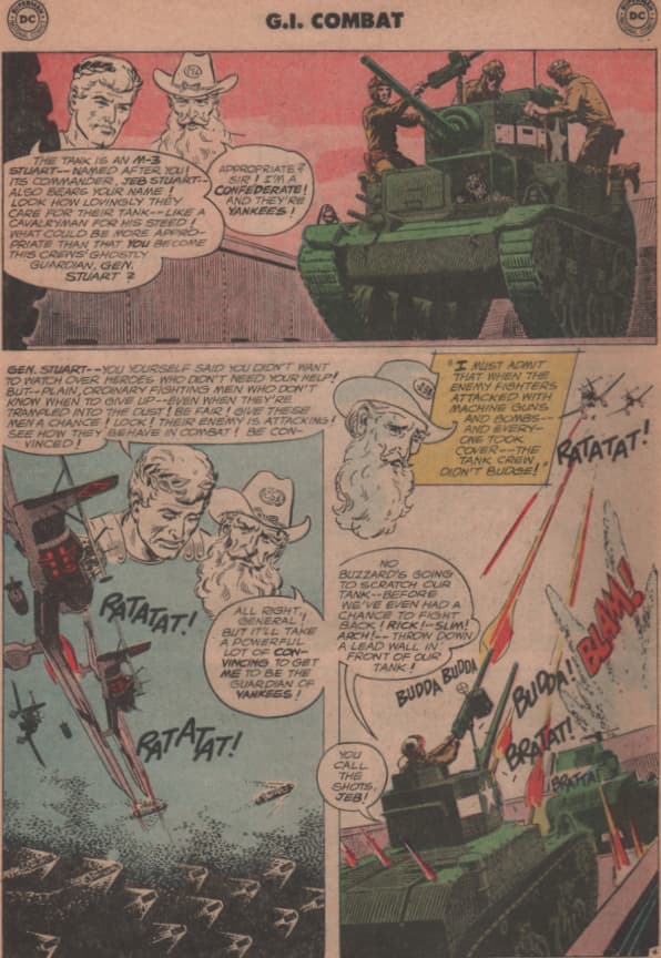 Those of us that are “older” may recall a DC comic book from the early '60s to the mid '70s called G.I. Combat. This comic often featured The Haunted Tank. These were set during WW2 with the premise that the ghost of General Stuart was sent to watch over his descendent Lt. Jeb Stuart and is (not coincidentally named) Stuart tank. The tank and crew often ended up in some very precarious situations that could only occur in a comic book world.