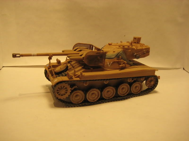 Specter picked up a couple of kits for us to work on from the museum while I was in Washington state last week. I received a complete but unpainted hummer, and the Heller AMX 13. The AMX was about 75% completed when I recieved it. The hull, roadwheels, and turret were pretty much complete. All I had to do was clean it up,add detail parts and paint it. So I did. Here are the pics.