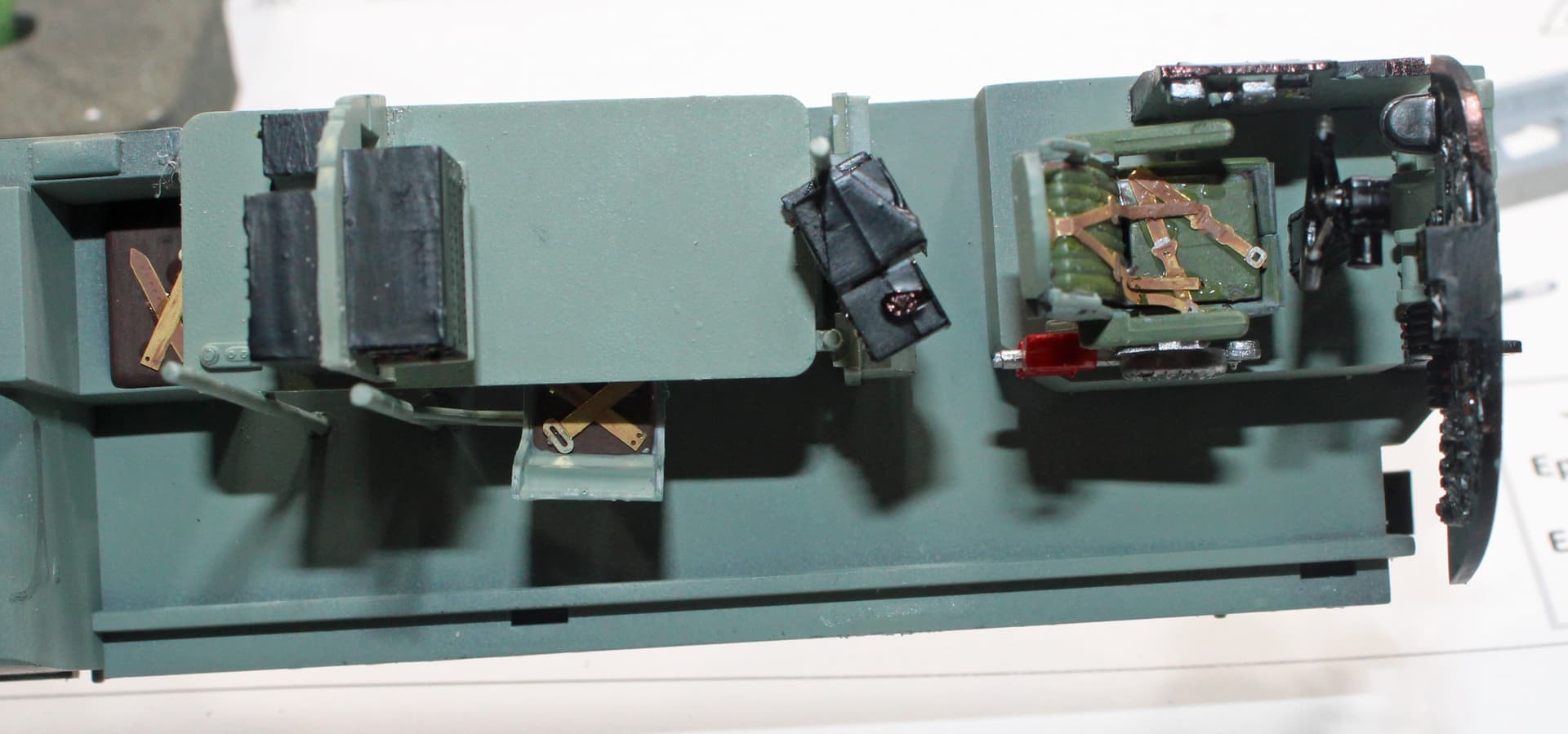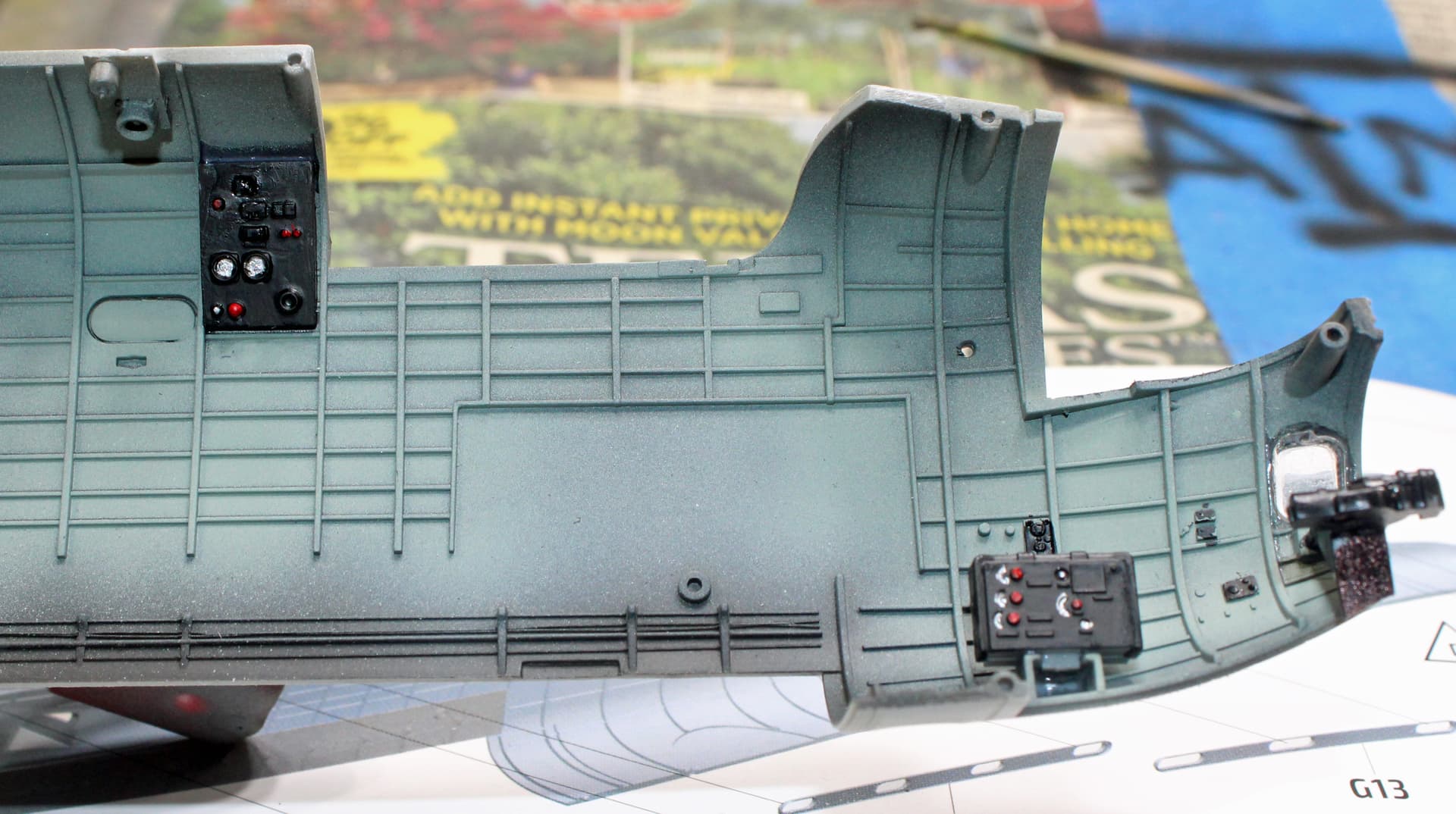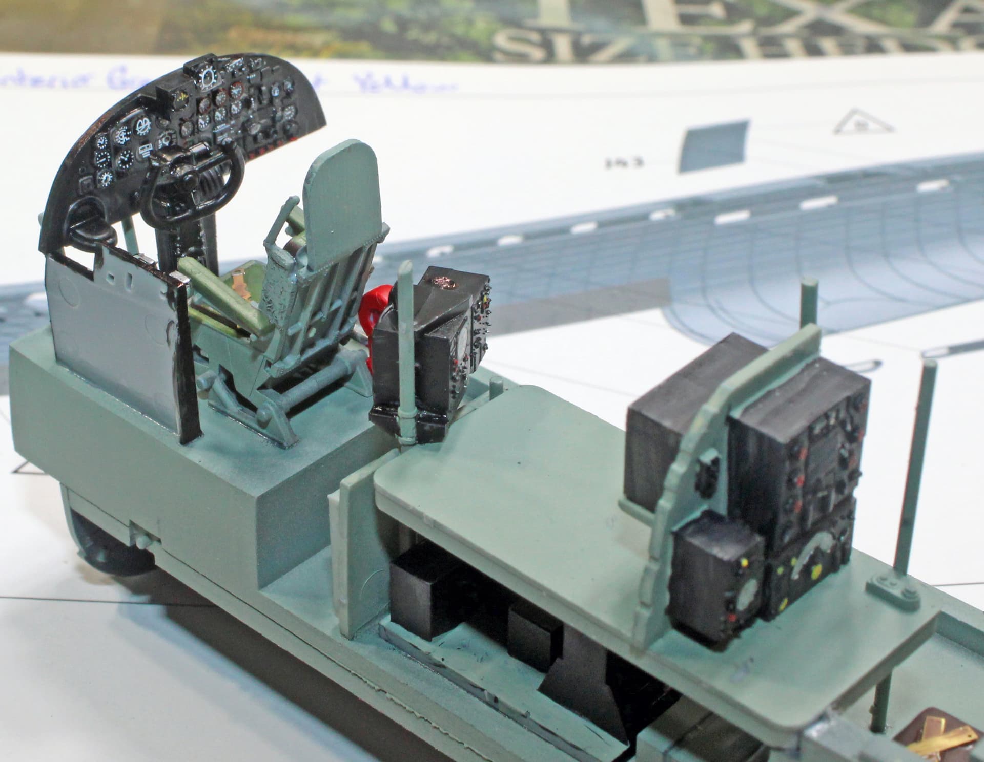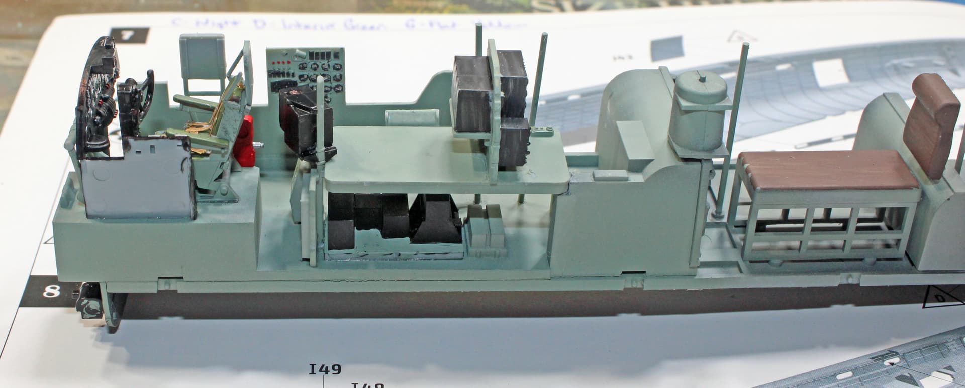 This morning I sprayed a coat of black primer onto all of the internal components. Later I will spray a coat of RAF Interior Green.