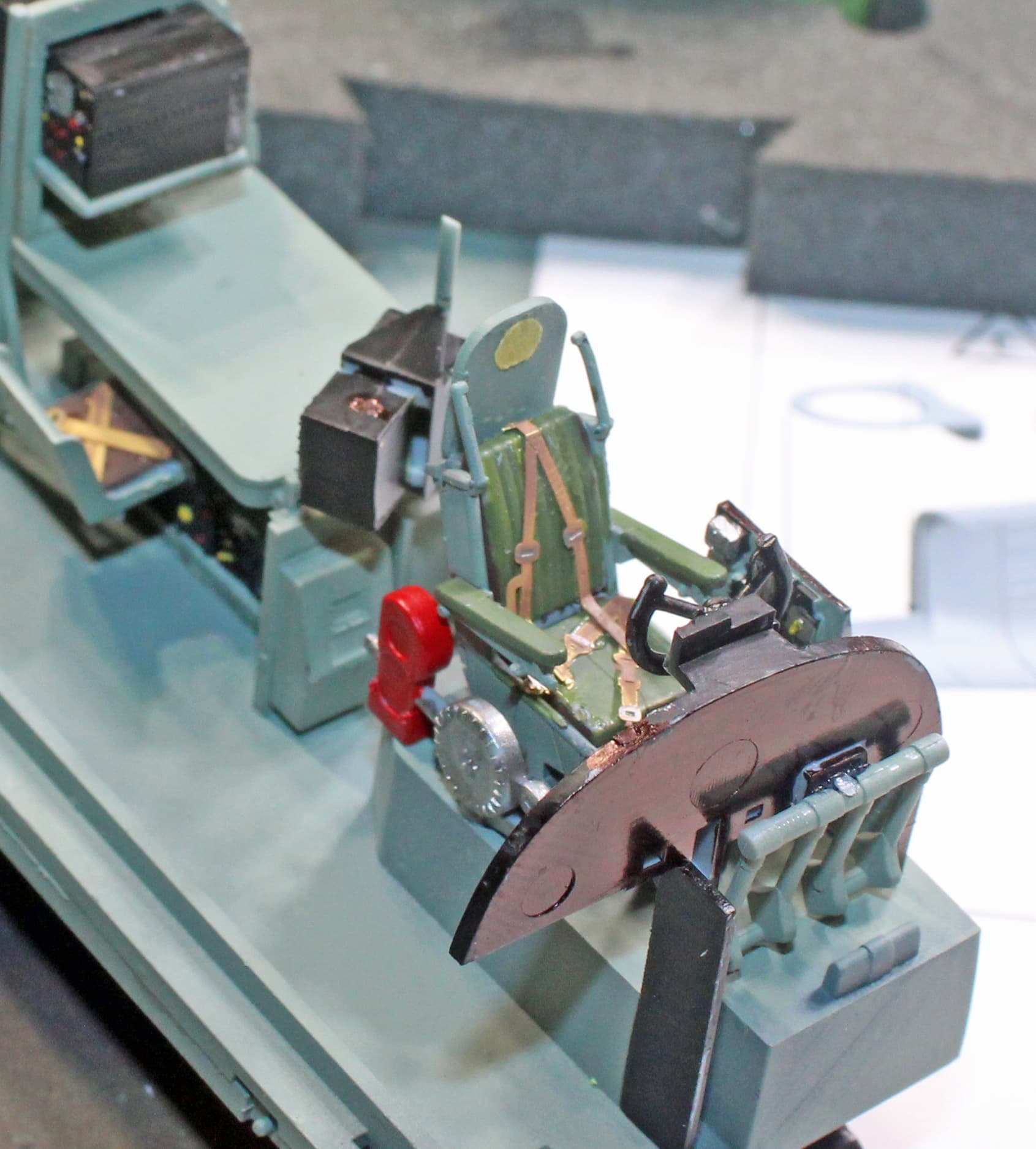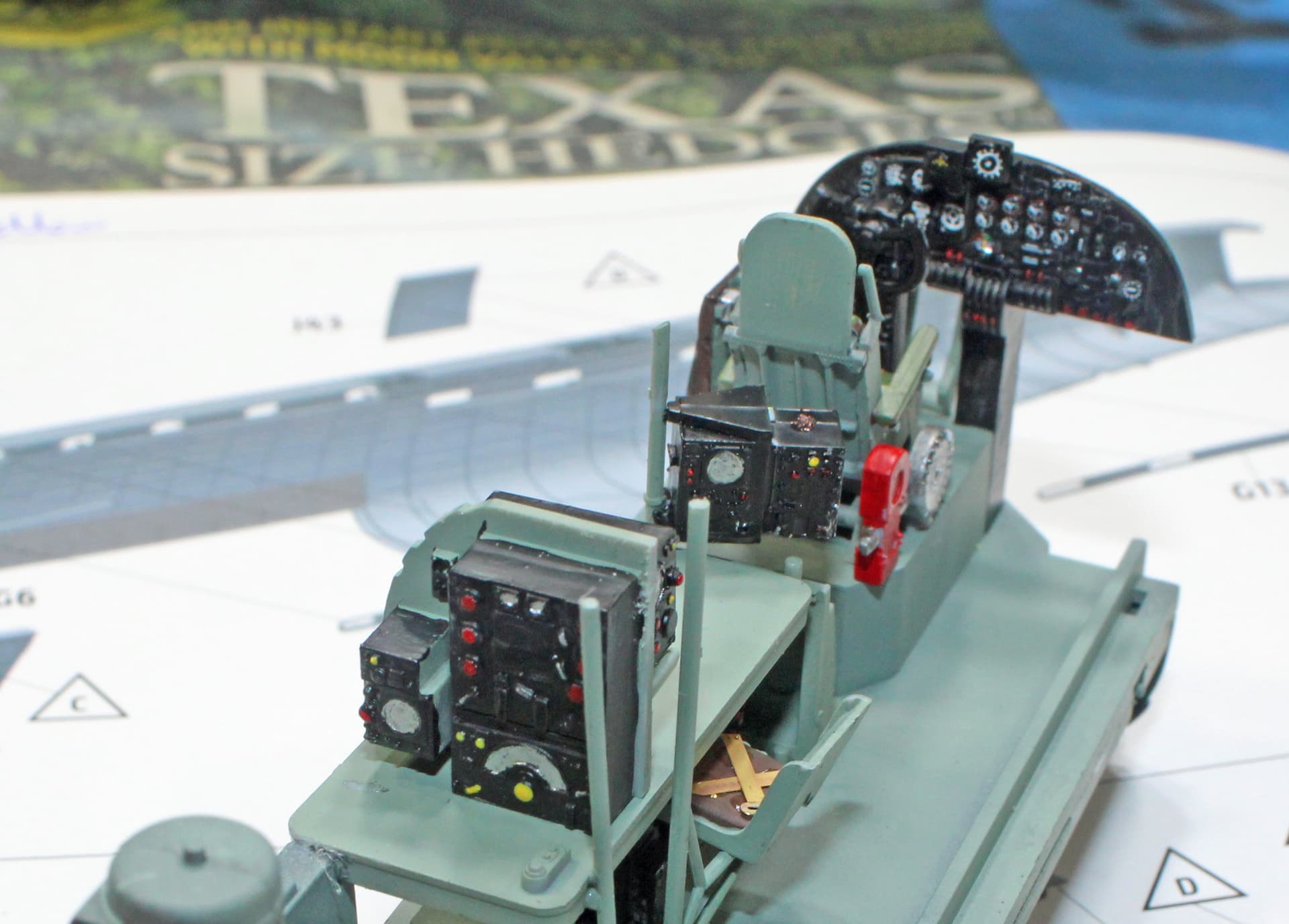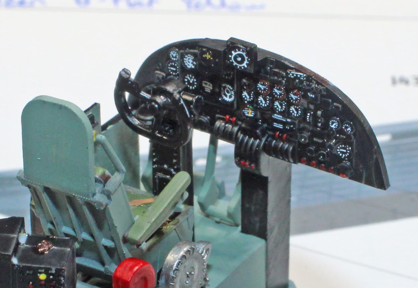 My first attempt at the yellow circle on the pilot’s seat headrest was not good. So I painted over it and cut out a piece of Tamiya tape under an old architect’s stencil. Much better circular appearance. The IP bezels are a single decal, but I opted to cut them out in smaller chunks to better affix them into proper position. I hope that IP is visible through the canopy since I think it looks great.