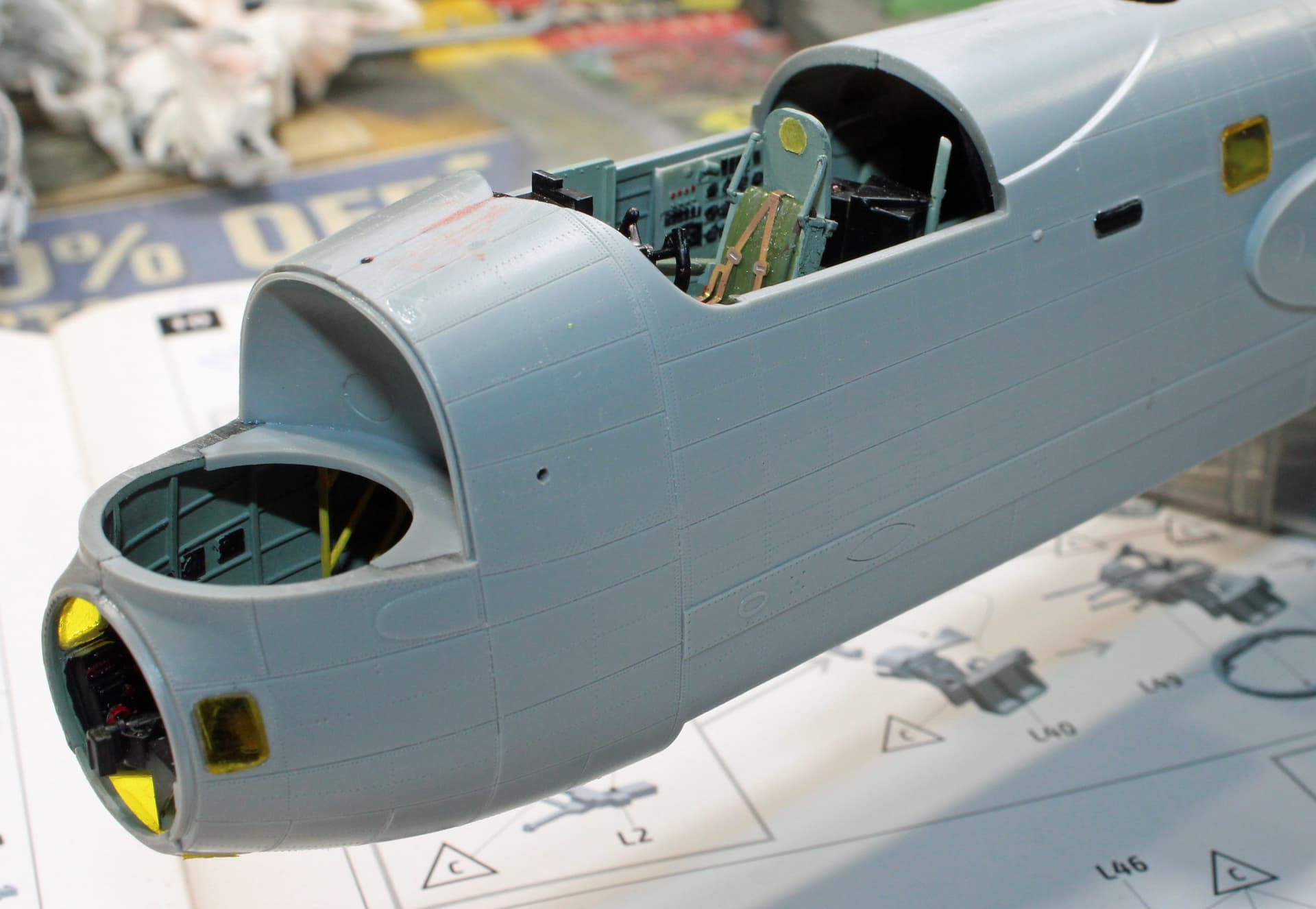 But with the Lancaster, there is a lot of glass - that big canopy plus 3 turrets plus the nose cone plus several inset windows. On my particular build, many of those inset windows were painted over, but there are a few that were not.