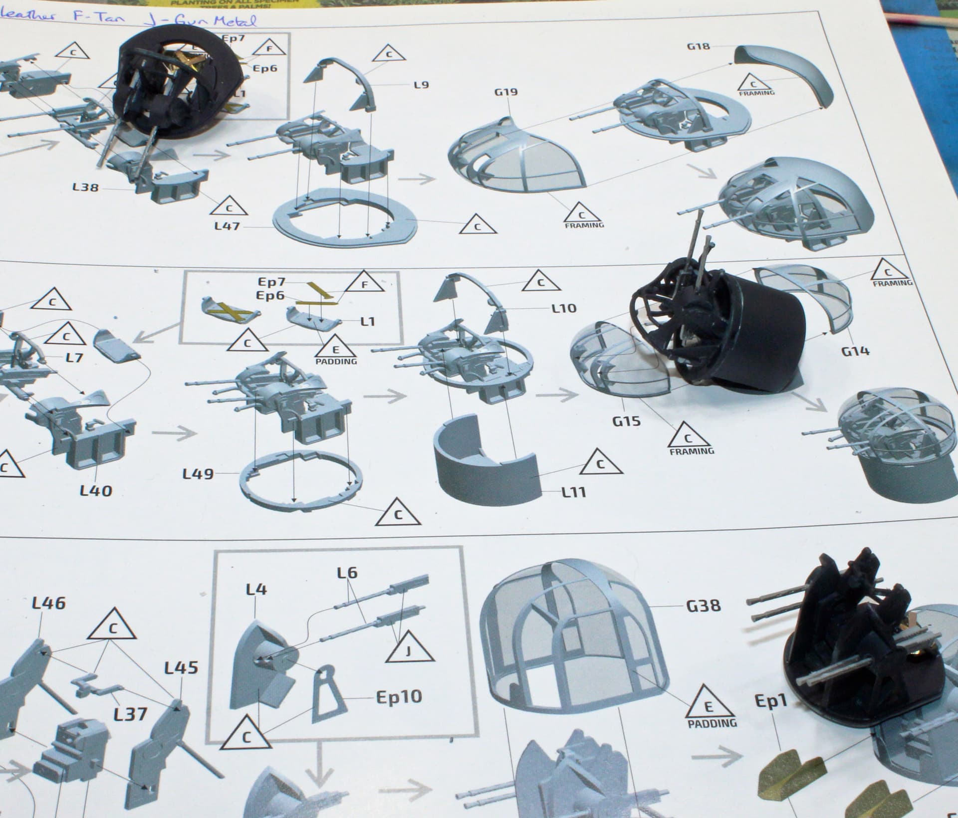 My crazy time with work-related travel is in my past, so today I had an hour at the bench. During which time I assembled the turret components (not the clear parts) that I had painted last weekend.