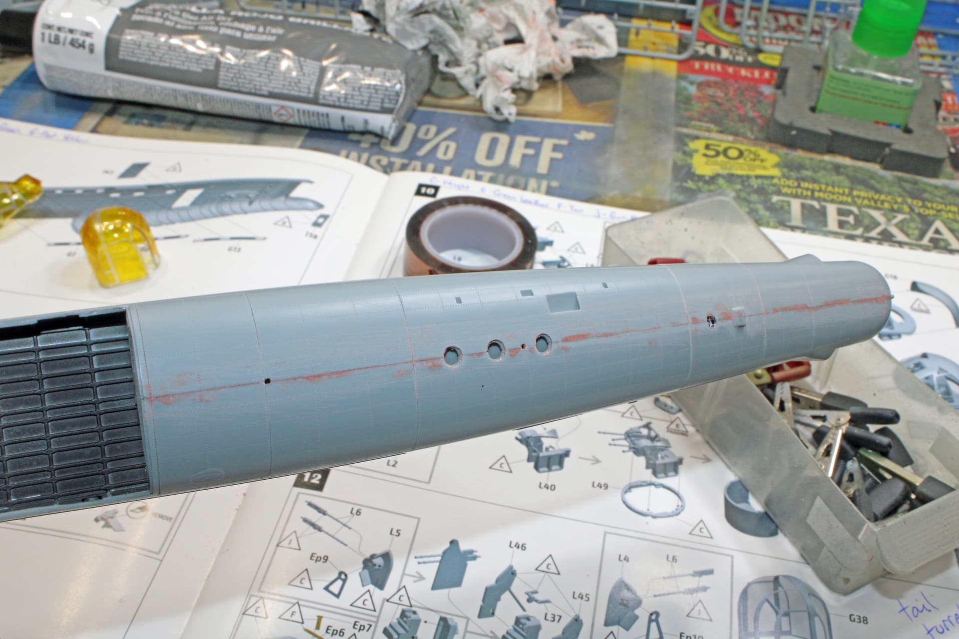 I have so far only two complaints about the HK kit - 1) the inset windows have not all fit real well, they don’t sit flush with the fuselage no matter what I do to get them into position; and 2) for such an expensive kit, I would have thought the fit would have been far better. There were some awful gaps in the fuselage seams. But I’ve started using red glazing putty on this build, which thus far has worked much better than even the Perfect Plastic Putty that I’d been using for a number of years.