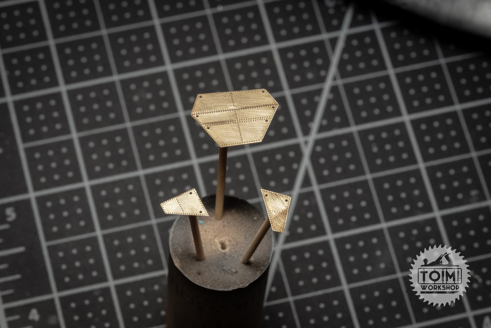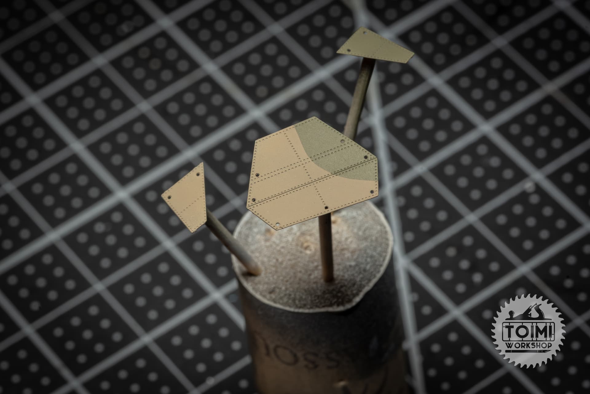 So I just filed all that stuff off. I’ll use a paint mask to represent the panels for both elements, and add a clear light at the end of the build. For the wire pass-through, I fit a bit of brass rod. Still not 100% accurate but much better, and should be easy to glue a “wire” into later.