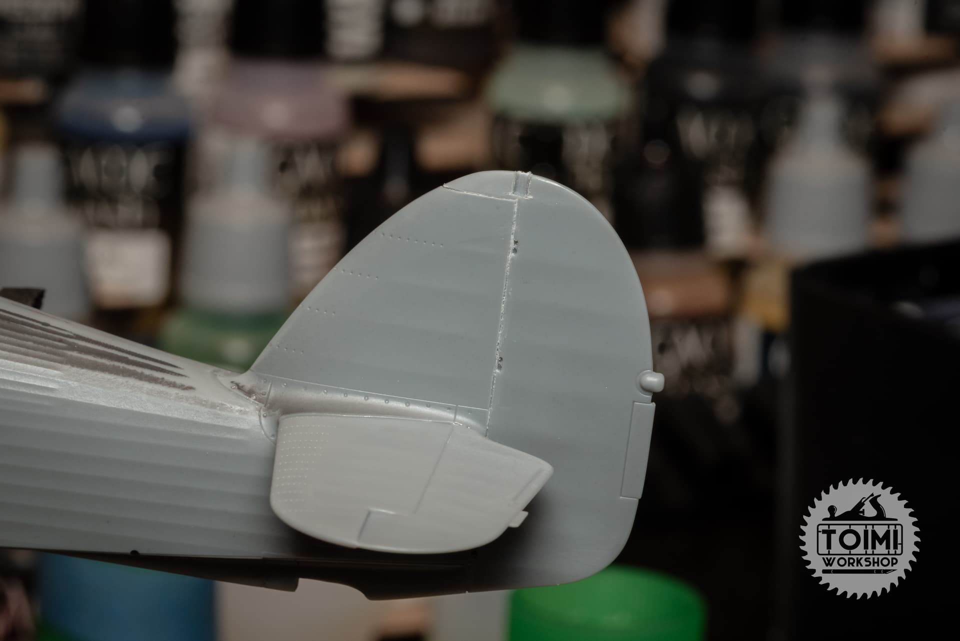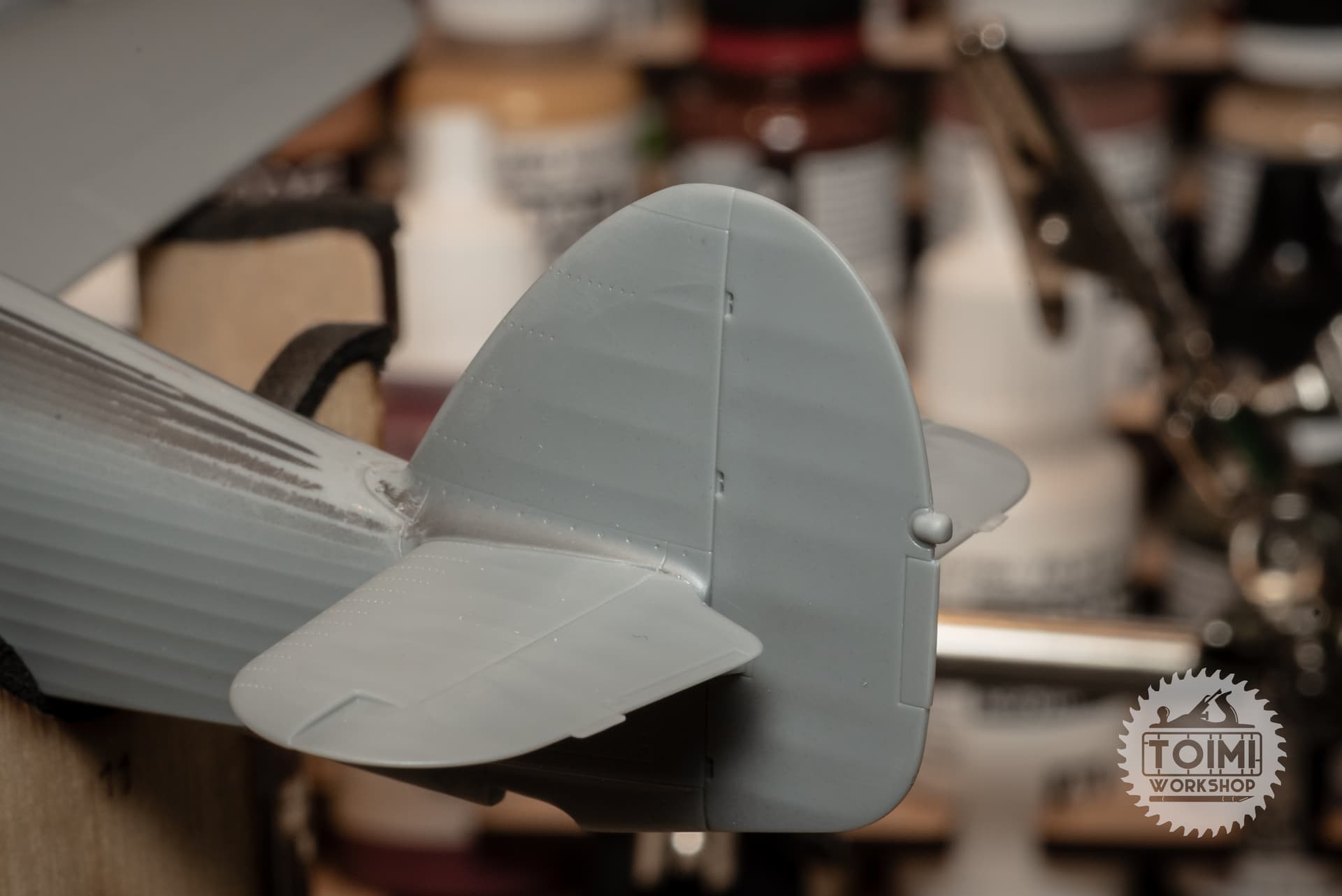 It’s at this point, after staring at reference images too long, that it started to bother me that the rudder and elevators are all molded together, perfectly straight and flat, in a rather unnatural way; I briefly considered busting out the razor saw.