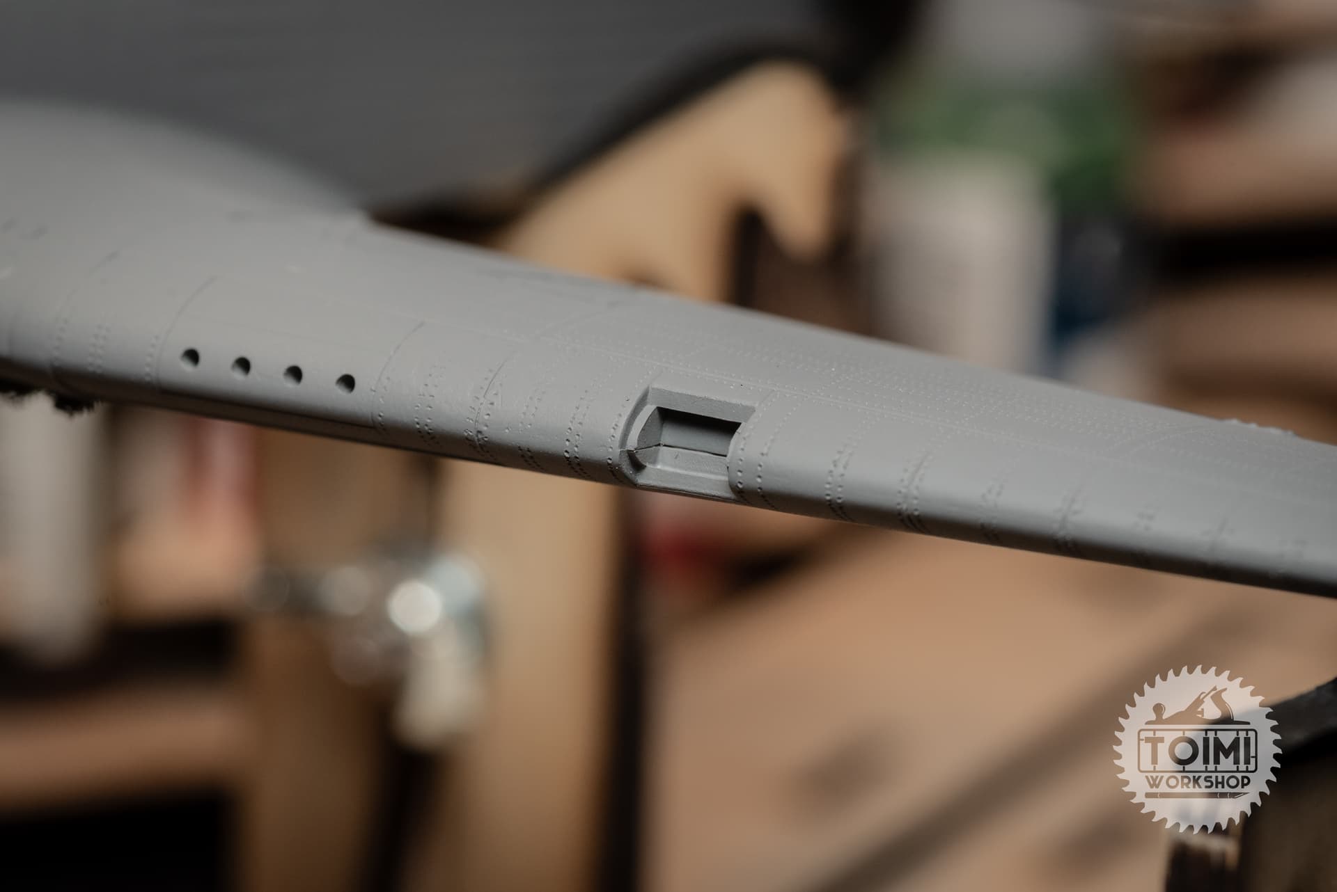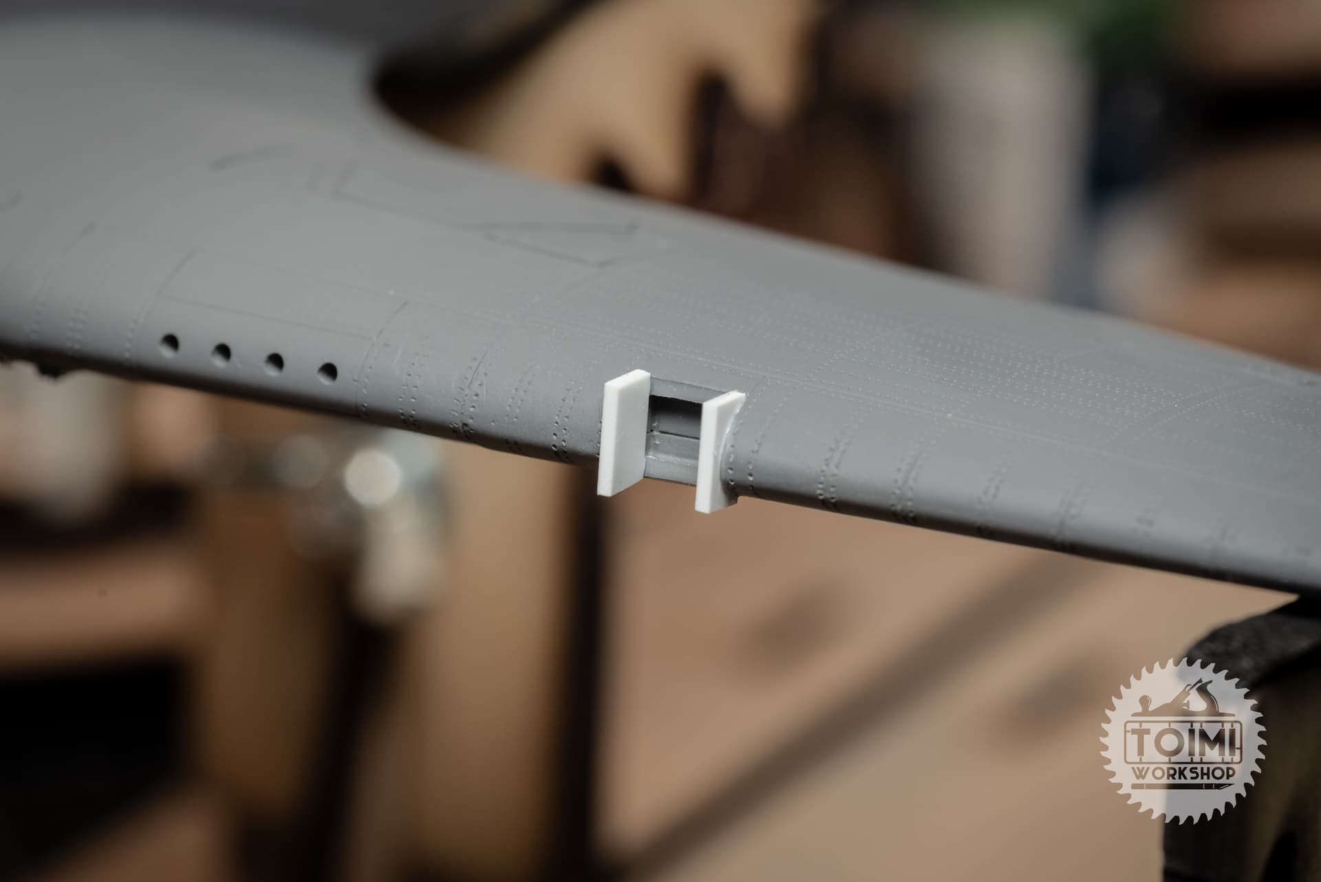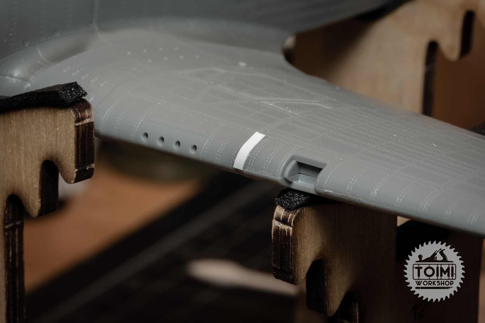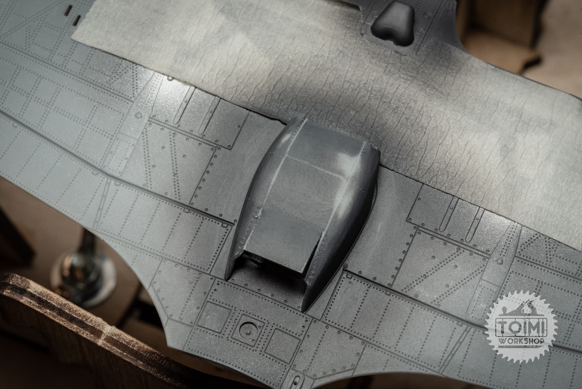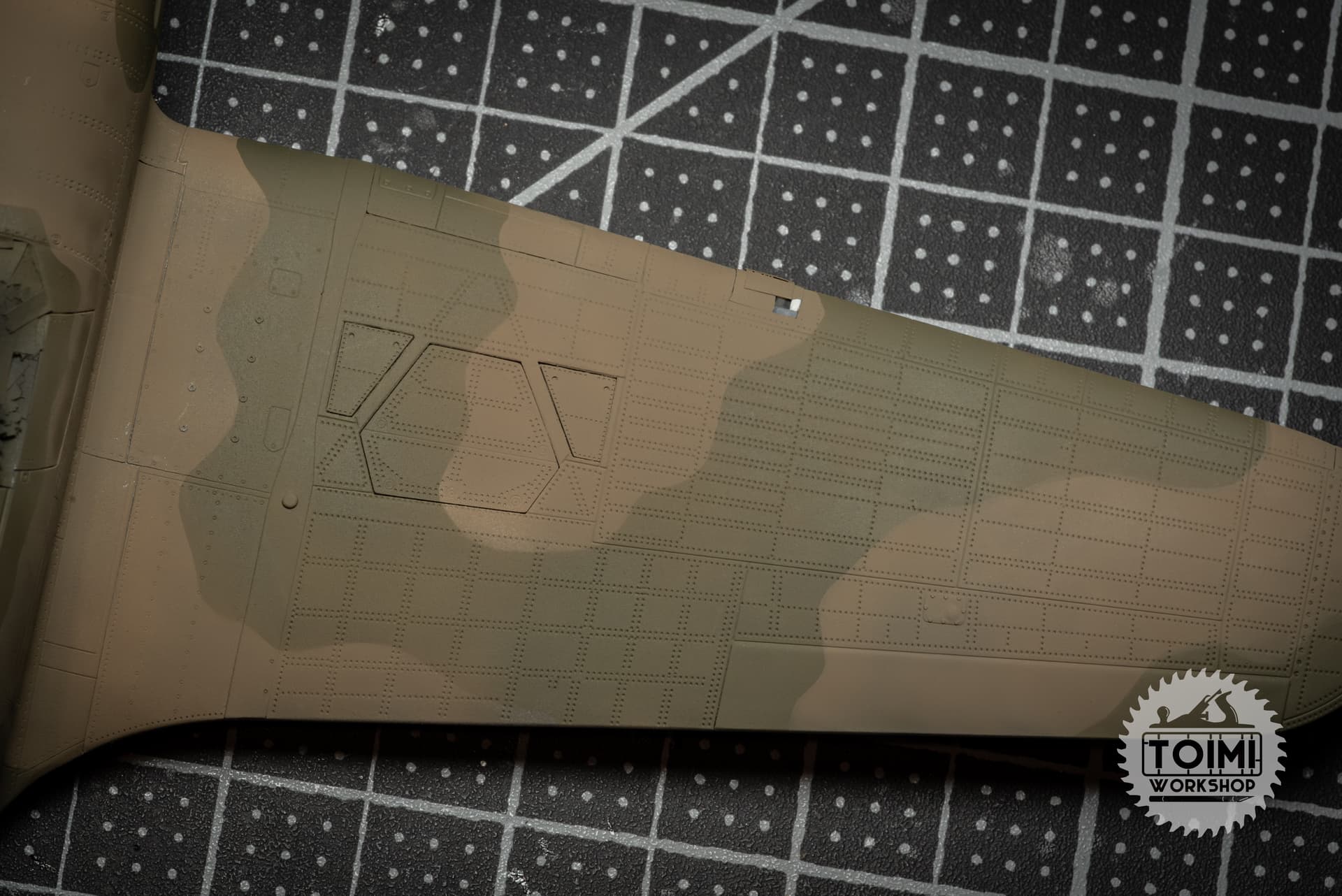 The chipping is pretty stark, and some of it got away from me a little – but I think it’ll tone down significantly during the oil paint weathering process. One thing that’s really bugging me is that the sunken “rivet” detail on the kit holds the paint, while it wears off the surrounding area. Naturally this is the opposite of the real deal, at least on the wing panels, where the rivets are proud of the surface – and lose their paint first. Gonna have to ponder this issue.