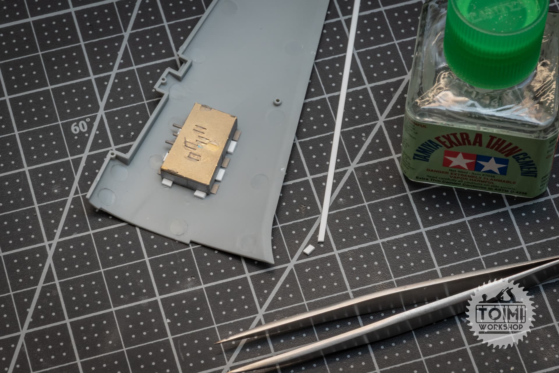 That extra bit of styrene inside the gun area (where the barrels would protrude) is just to add strength – I wasn’t able to put cement on any of the internal locator pins or contact points, so a little extra strength will make me feel better.