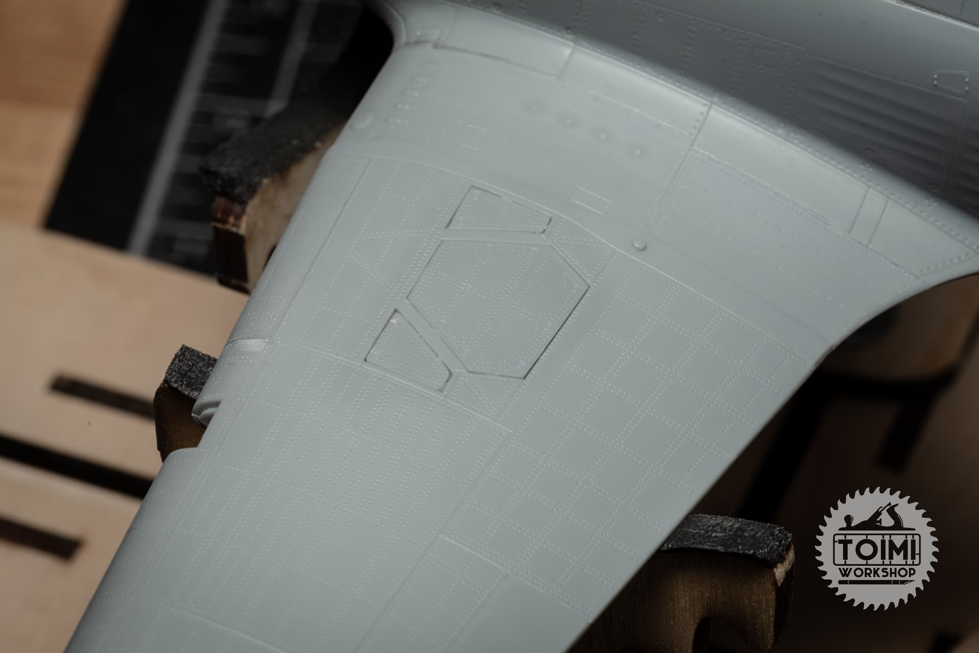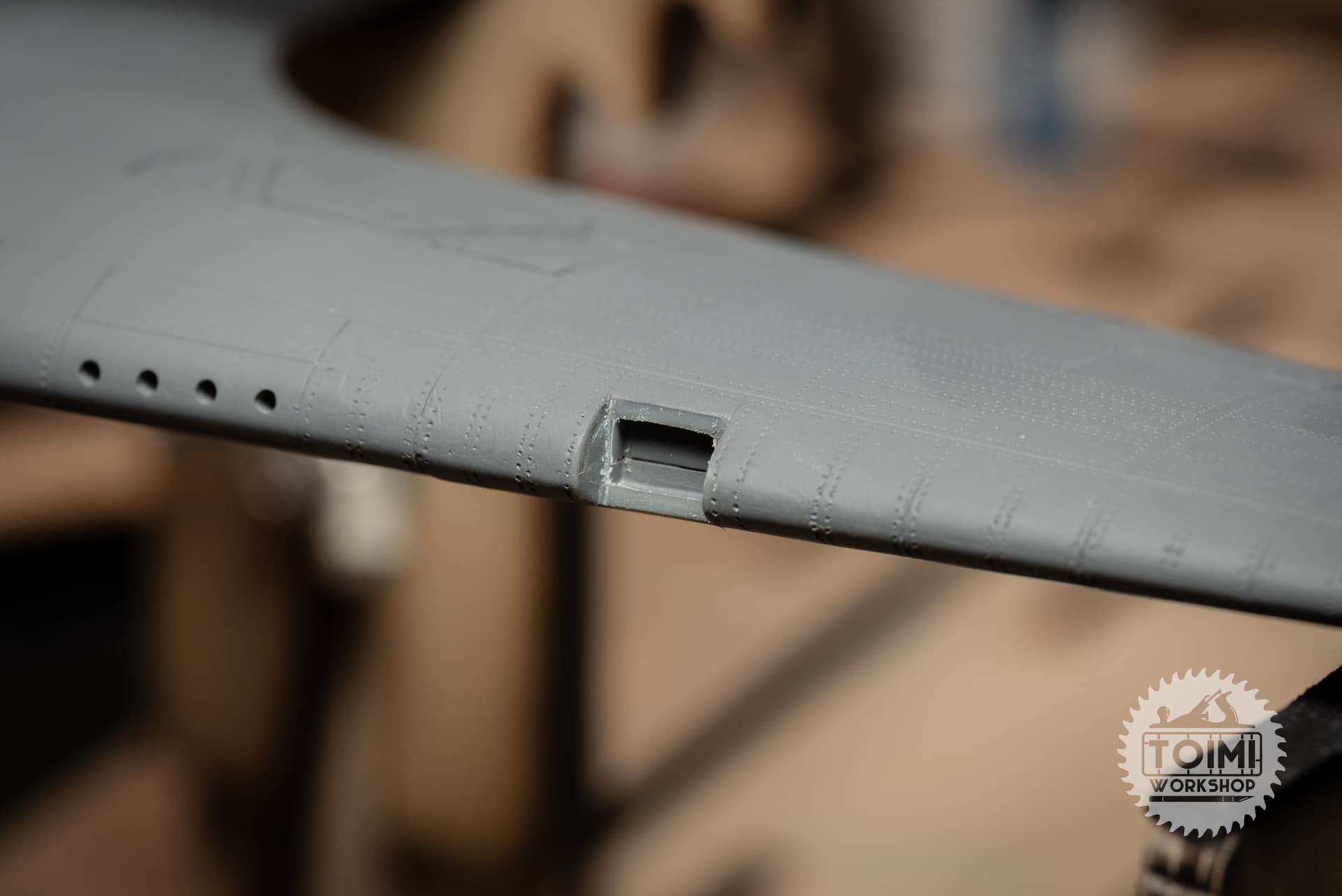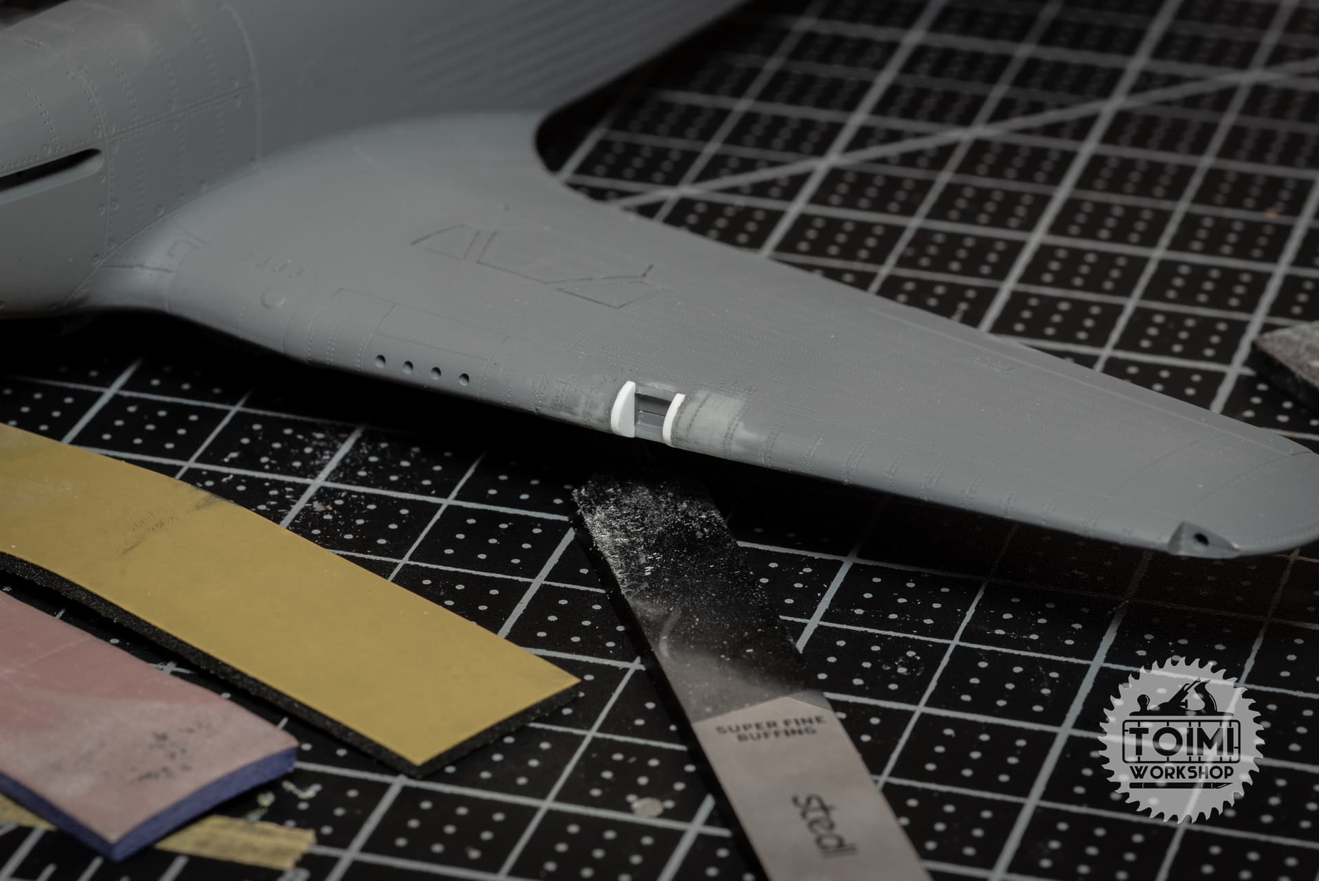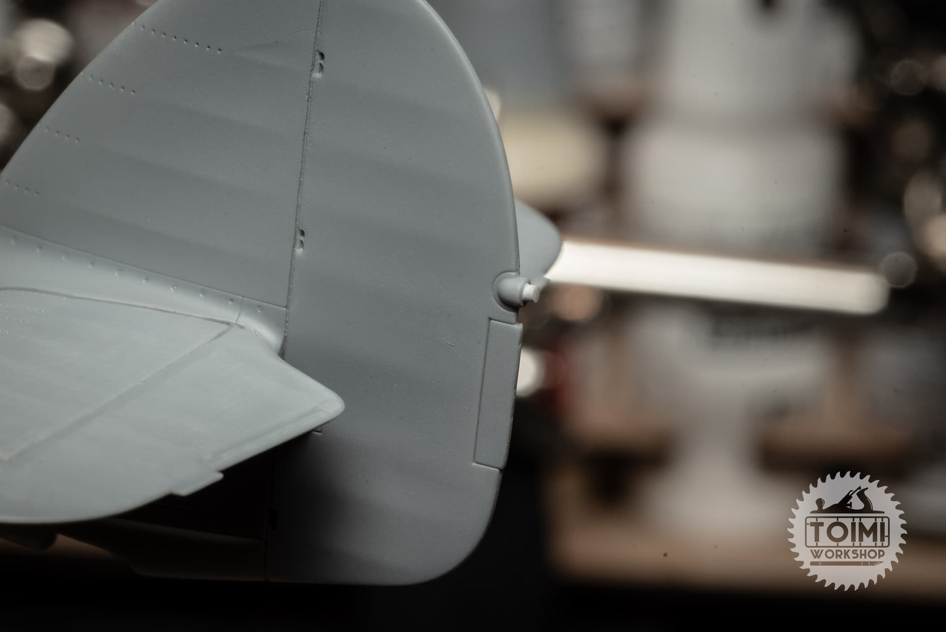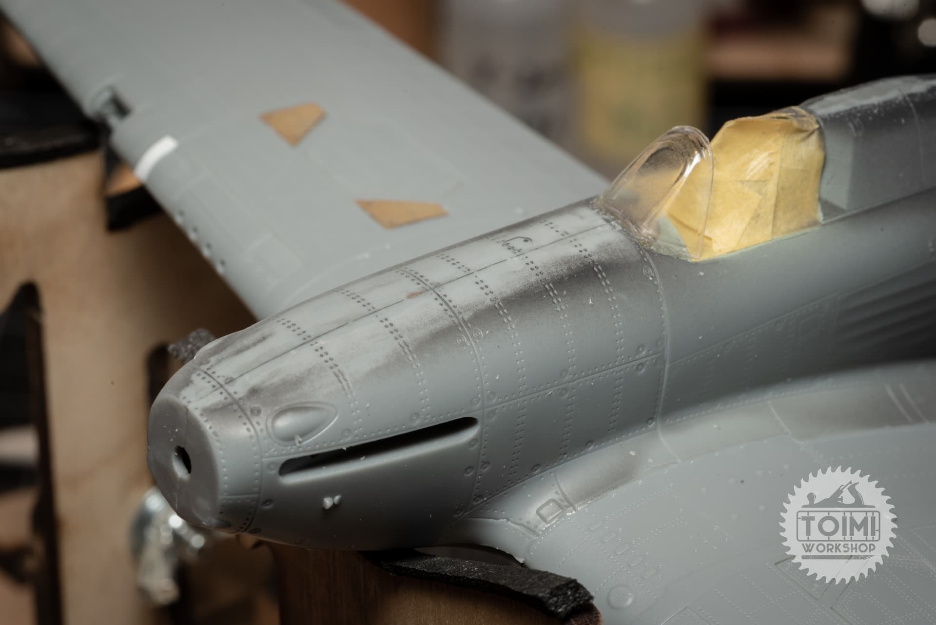 Been some slow tedious work on the Hurricane this week – filling and smoothing seams, scribing and riveting, and a small amount of detail correction.