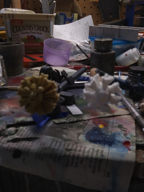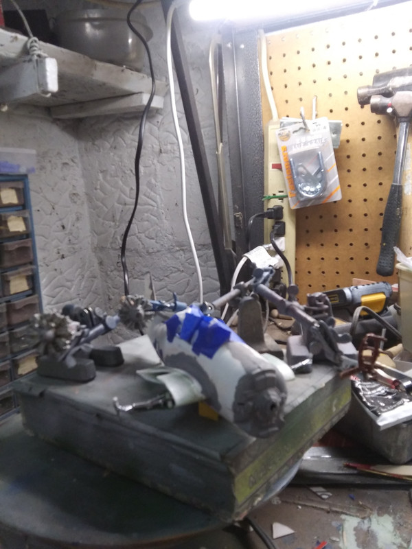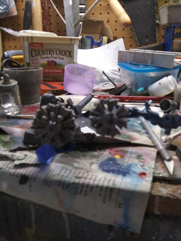 B ody work is done and I cut 2 pieces of copper at an angle to represent the exhaust pipes.After the rust color dries I will hit it with burnt metal metalizer