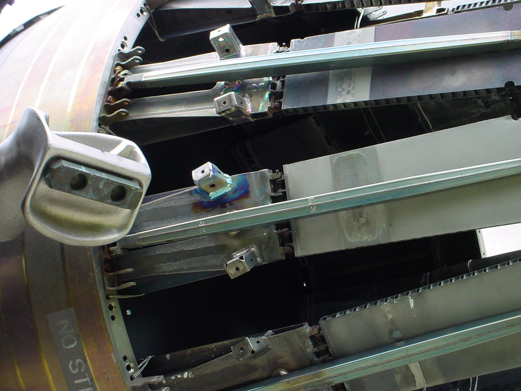 Heat does some strange things to the engine colors. Here is a photo I took last year of the right side exhaust on an F-15A . Note how the heat generated has given the parts all kinds of different colors.