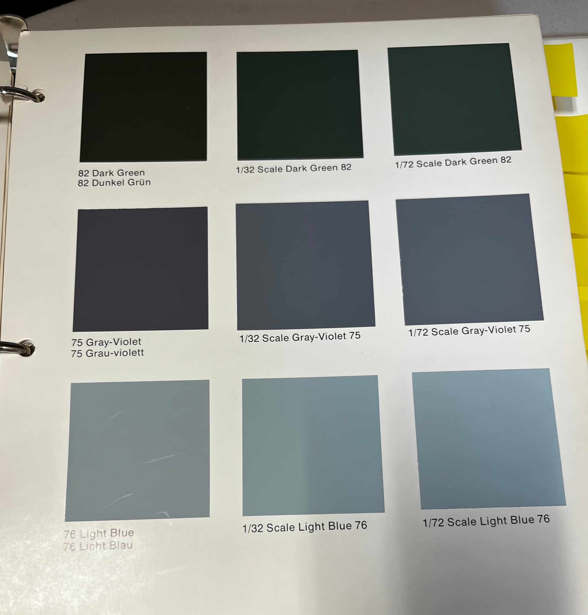 I’d never read any of this before today, and I thought it a worthy addition to the discussion. Also, here is a page from the book with color chips designed to show the difference from the original color to the colors adjusted for scale effect. Not the best photo, but you get the gist.