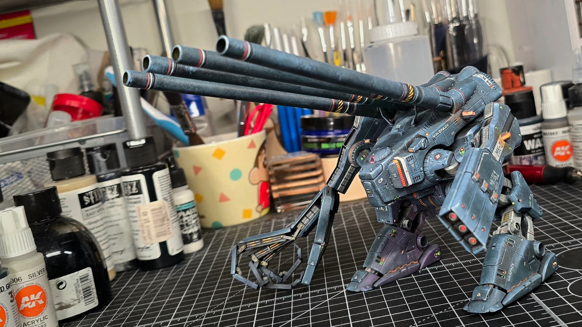 That is correcr, both arms are scratched from styrene sheets and all the joints are replaced to give some sort of articulation including the cannons